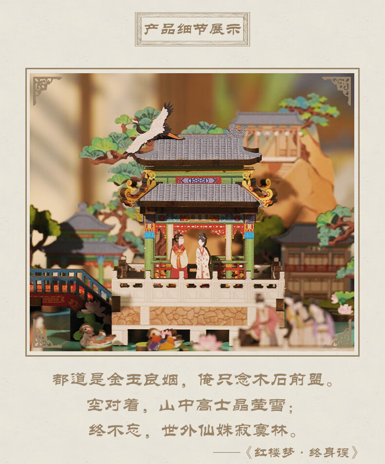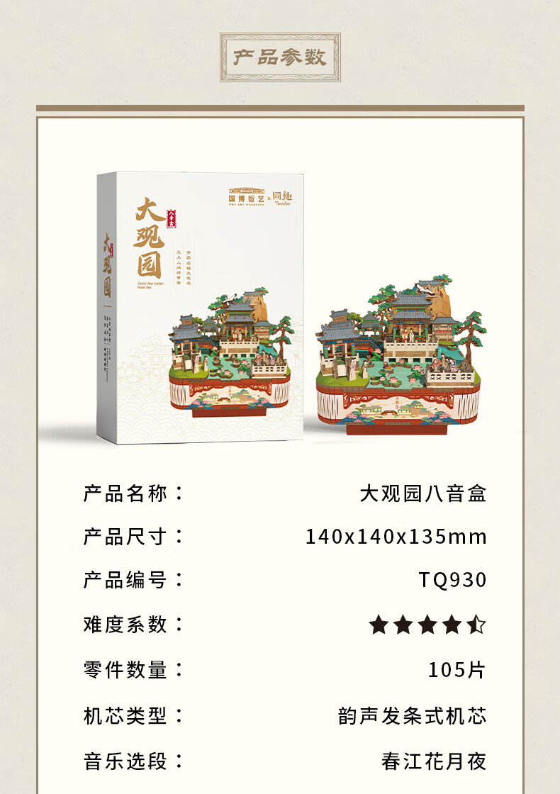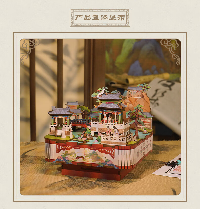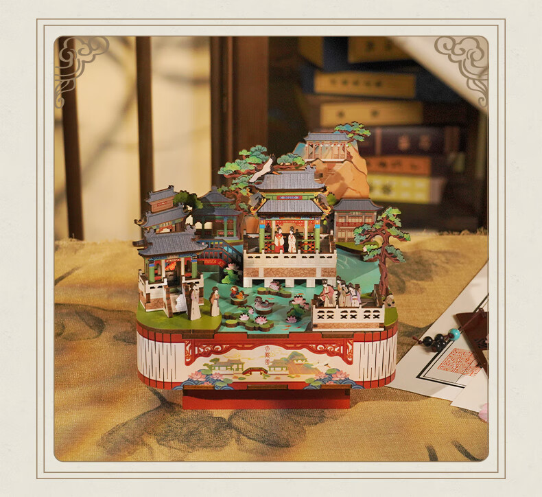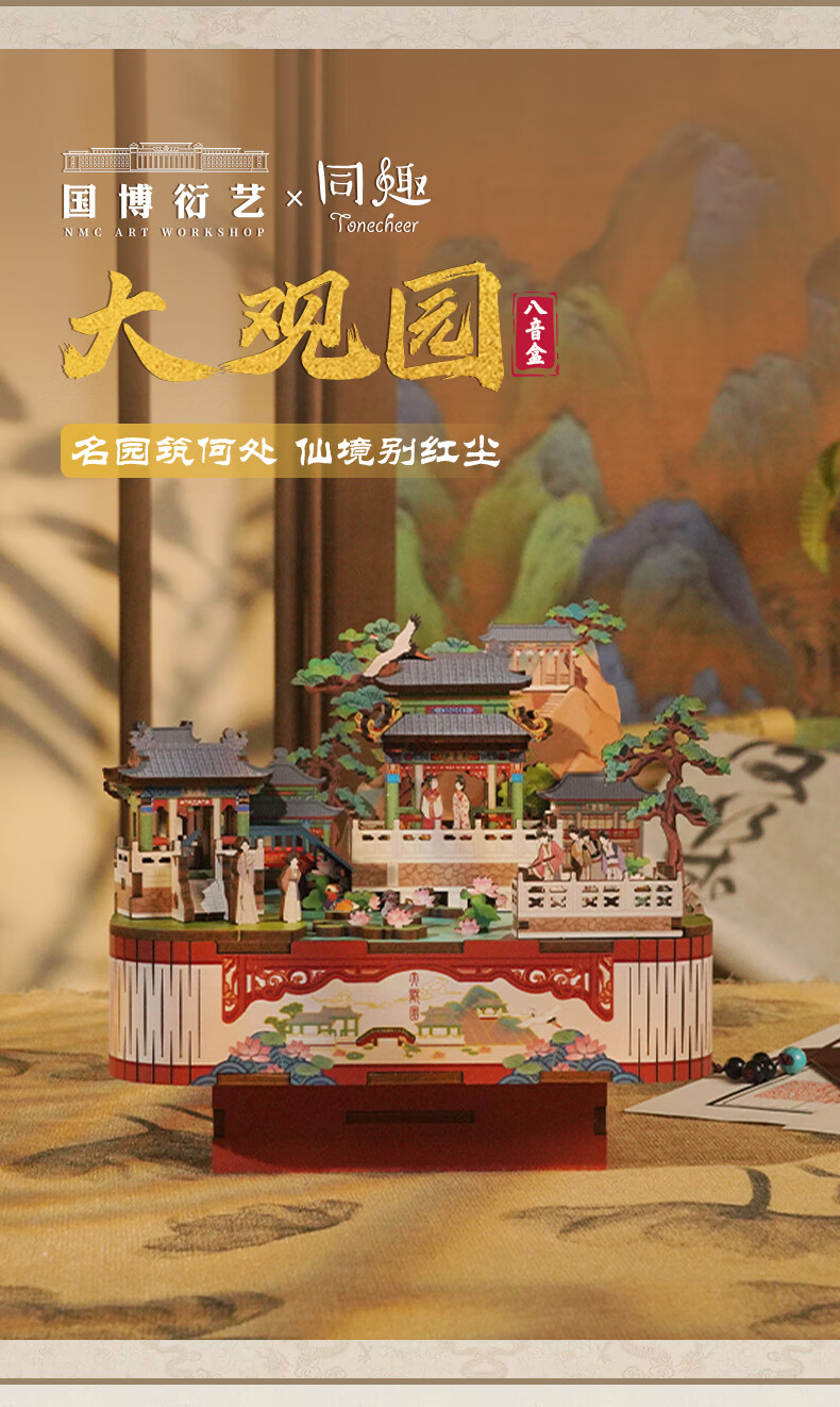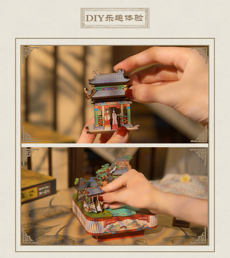 同趣大观园国博联名拼装八音盒玩具手工音乐积木摆件立体拼图生日礼物