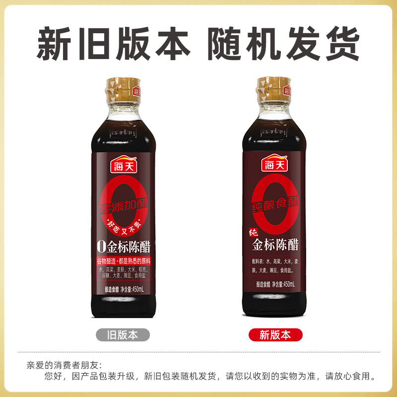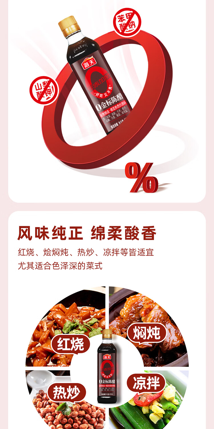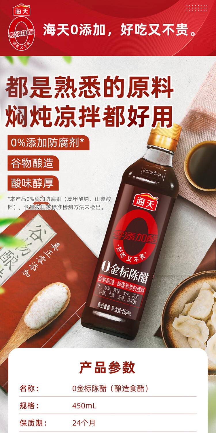 海天 陈醋 5度 450ml【0金标 0添加】谷物酿造 点蘸凉拌