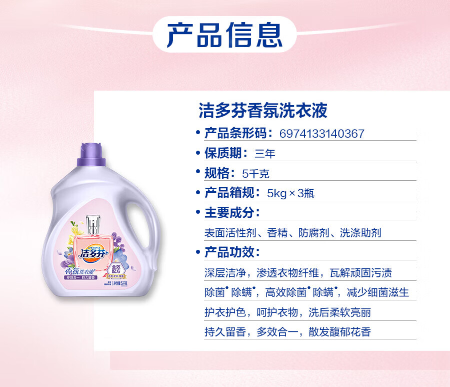 洁多芬香氛洗衣液除菌洁净持久留香除螨多效合一护衣不伤手囤货装 【囤货20斤】除菌除螨洗衣液 3kg*2瓶 +2kg*2袋