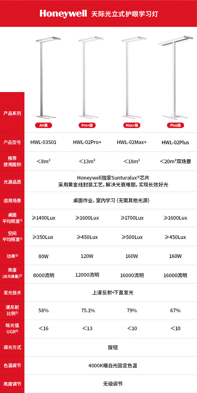 霍尼韦尔(Honeywell)立式护眼灯学习灯台灯全光谱落地灯大路灯儿童学生阅读台灯02Pro+