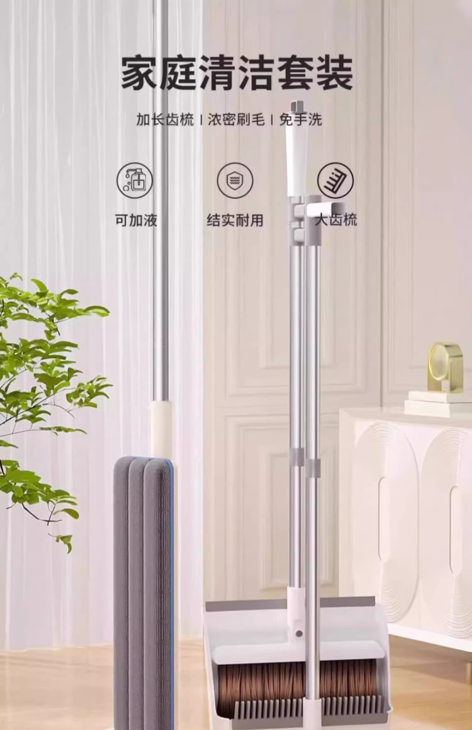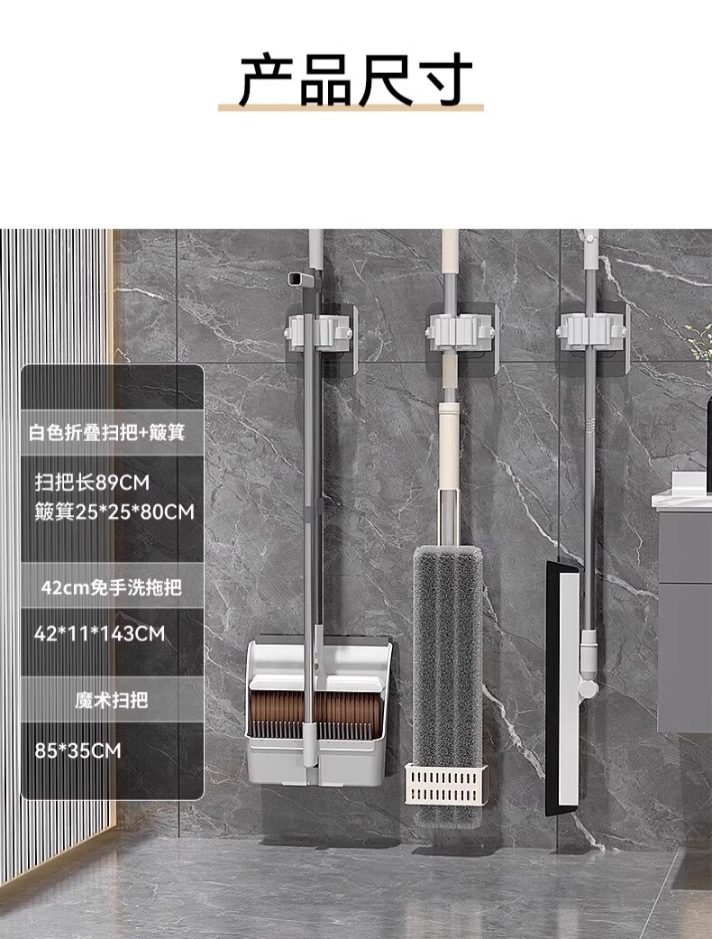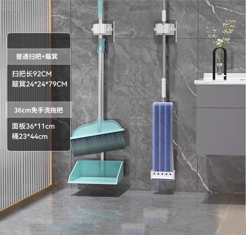 汉世刘家扫把拖把三件套家用组合套装2025新款扫帚簸箕刮水神器笤帚免手洗 灰色-三件套+巨省力+20只垃圾袋
