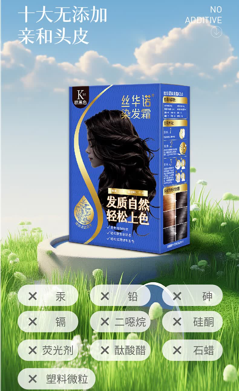 丝华诺染发膏植物养护染发剂男女自己在家染发霜遮盖白头发敏感过敏可用 【长发2盒装】K3.0棕黑色