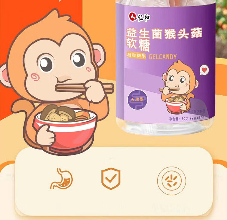 仁和益生菌猴头菇软糖肠胃山楂鸡内金儿童大人 30粒*3瓶 【实惠装】