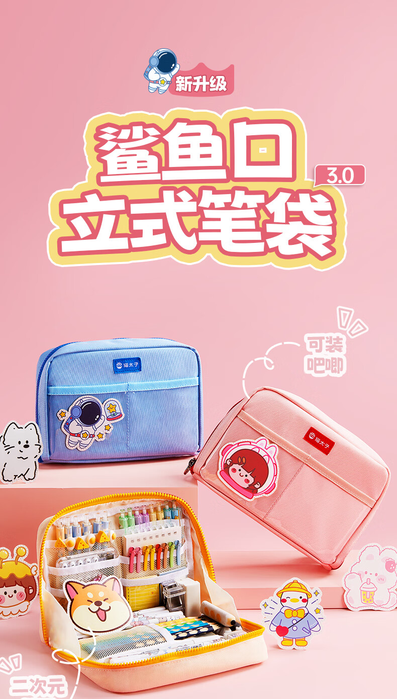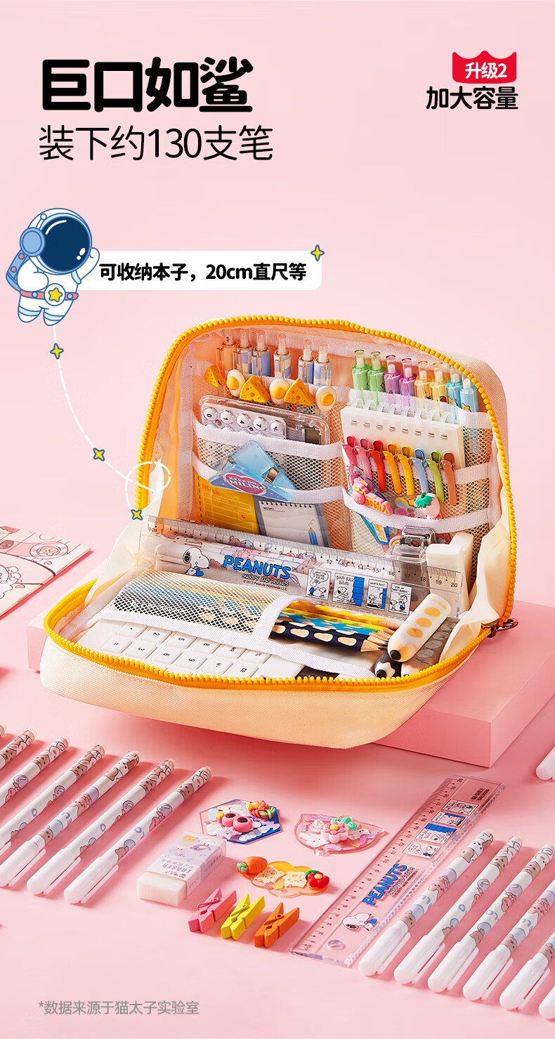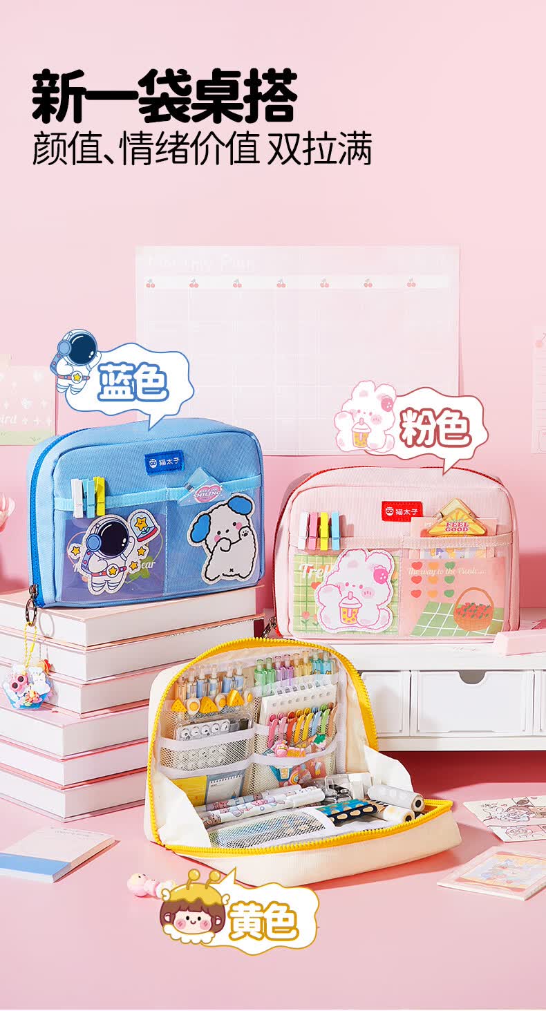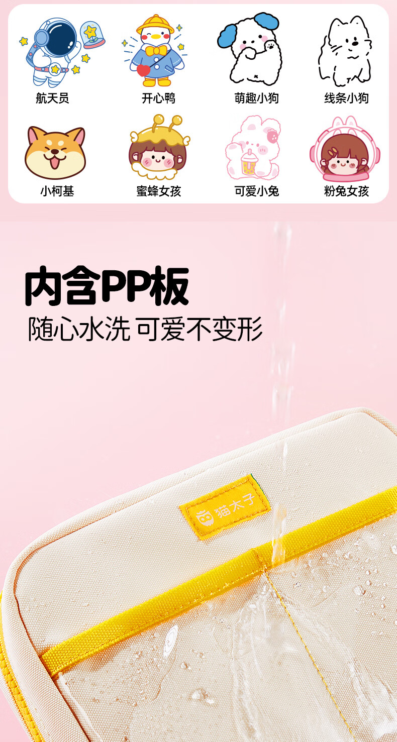 猫太子高颜值竖版笔筒式笔袋小学生儿童女铅笔盒学习文具盒简约时尚抗压耐摔轻盈笔袋 桃夭粉