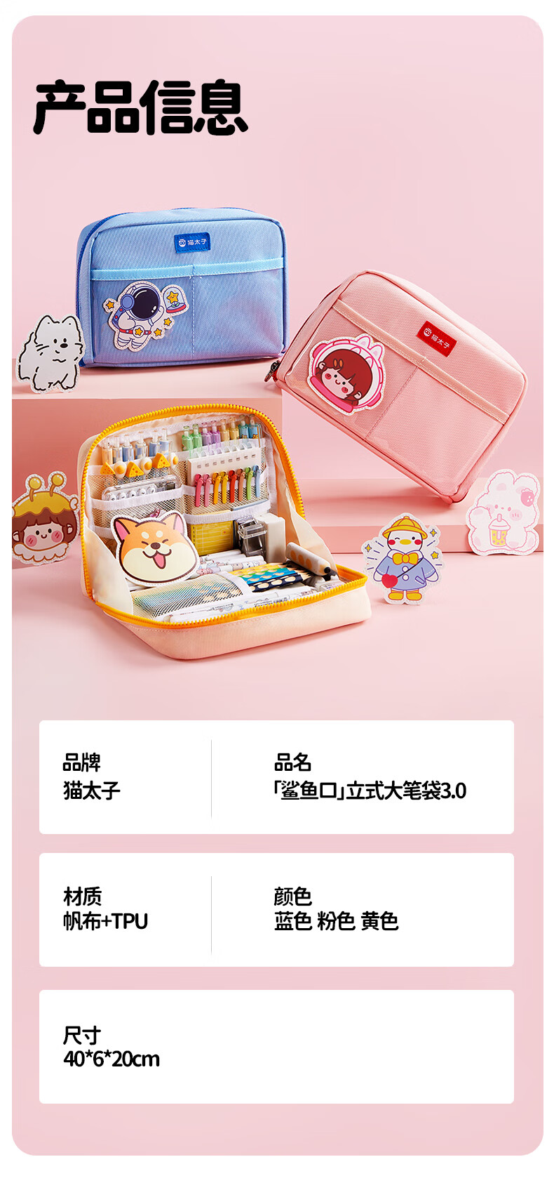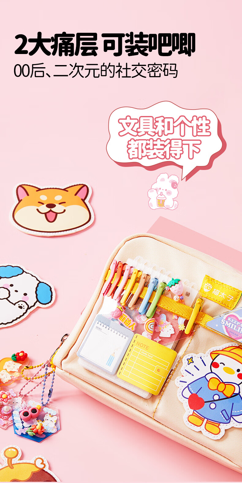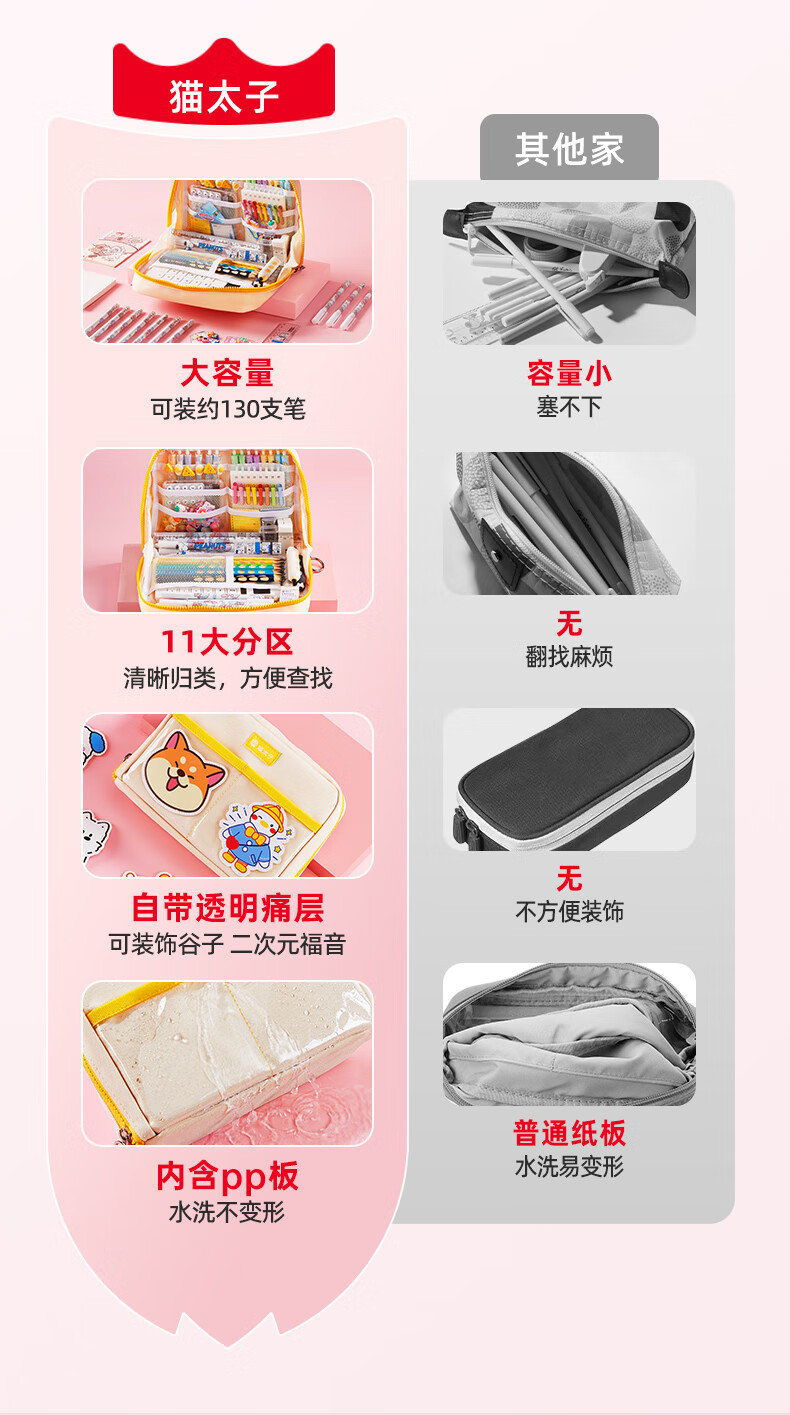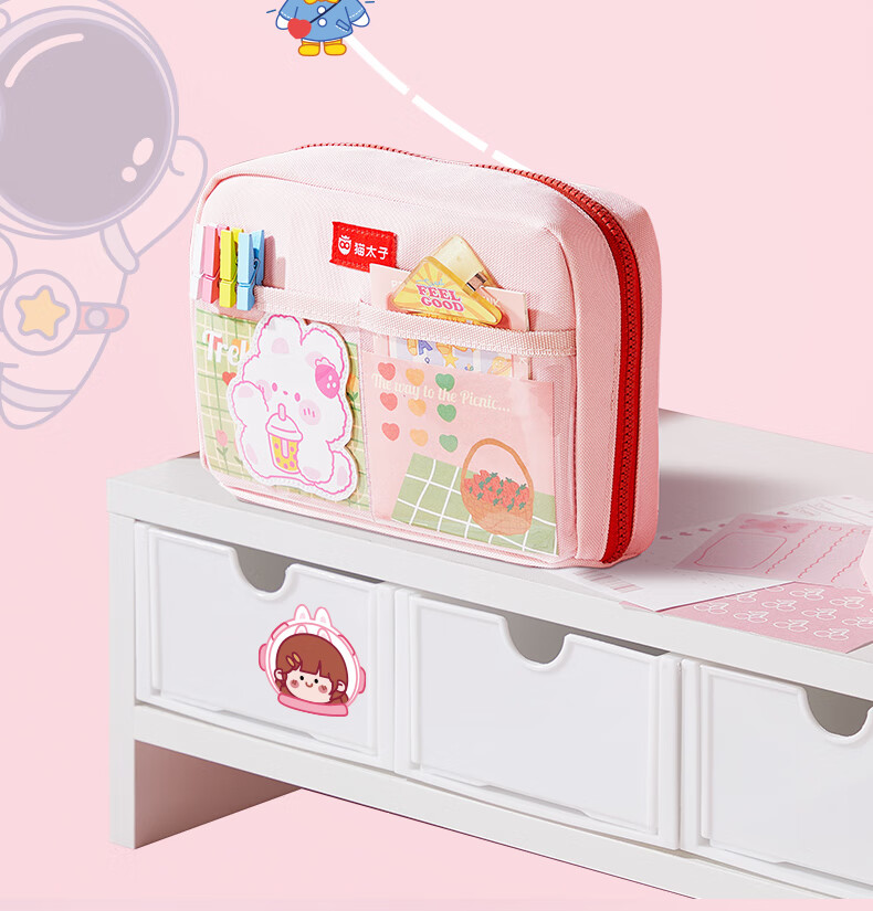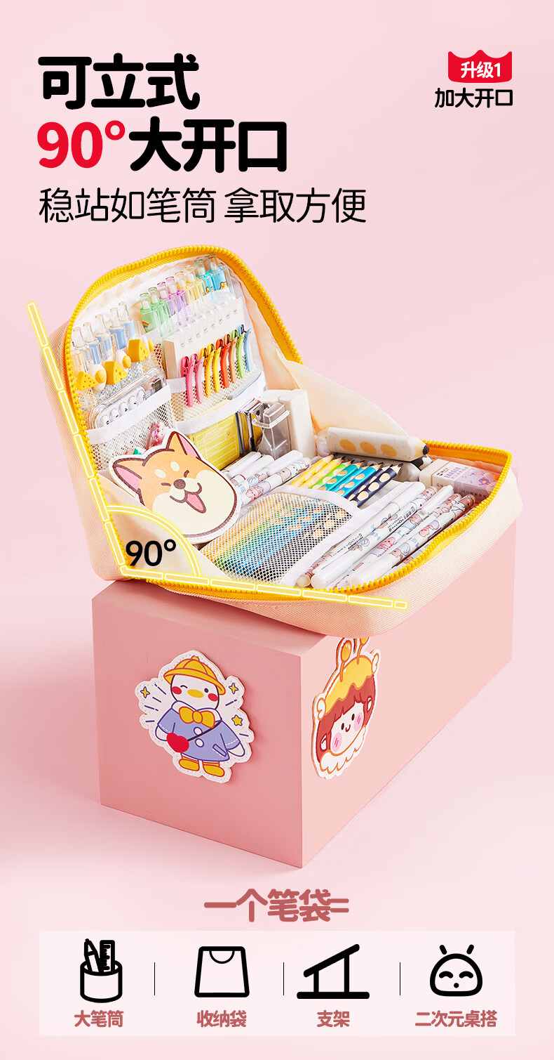 猫太子高颜值竖版笔筒式笔袋小学生儿童女铅笔盒学习文具盒简约时尚抗压耐摔轻盈笔袋 桃夭粉