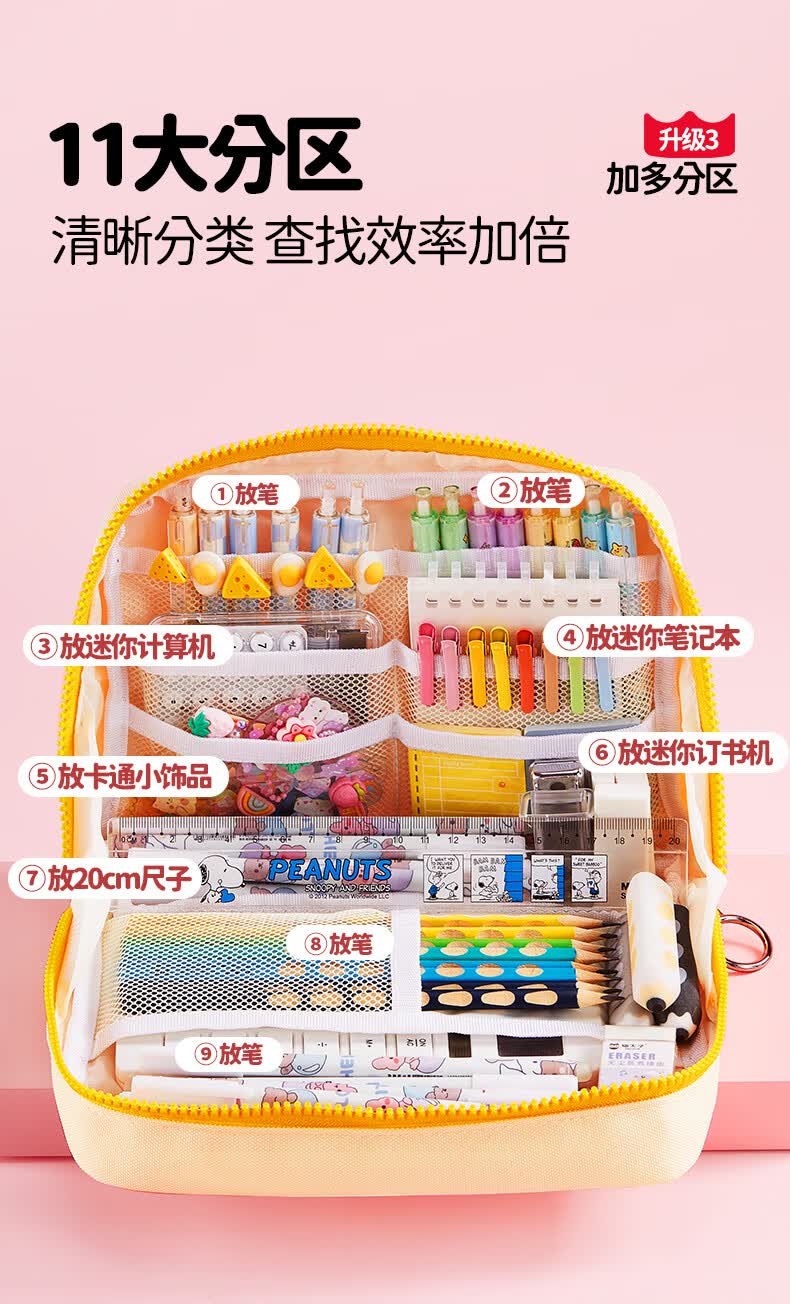 猫太子2025新款超火风琴笔袋小学生初中生高颜值简约ins风儿童文具盒男孩女孩款大容量铅笔袋 立式透明大容量笔袋 黄色