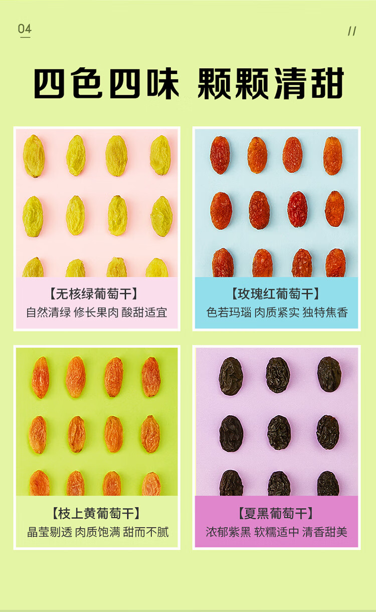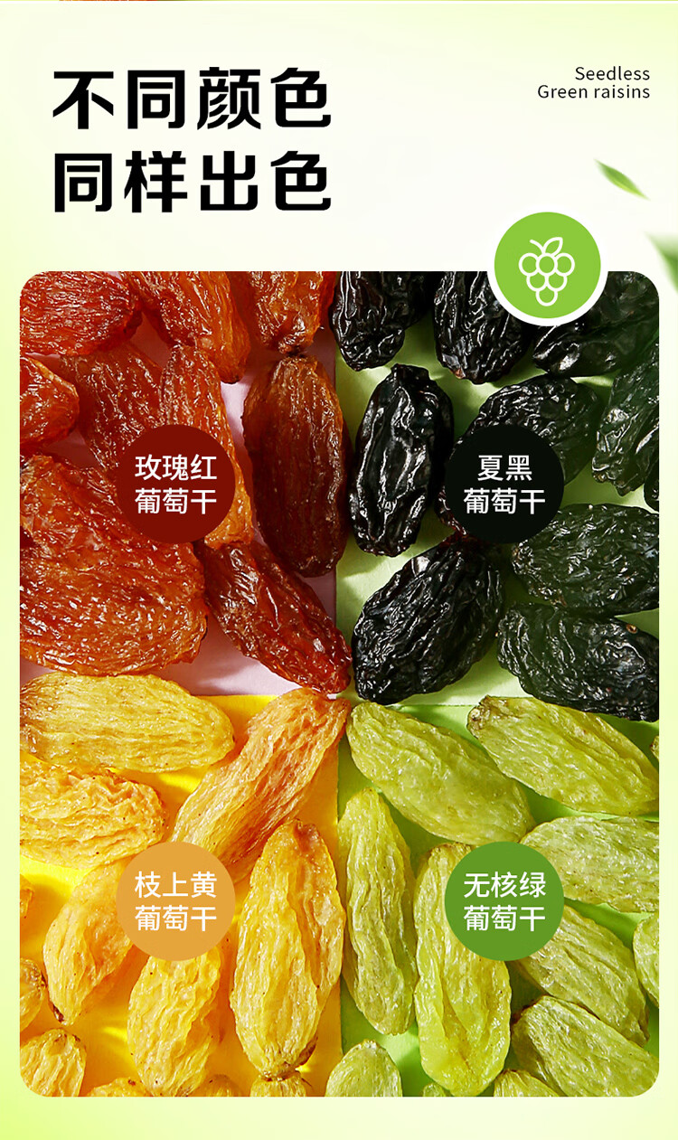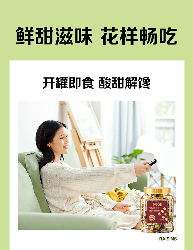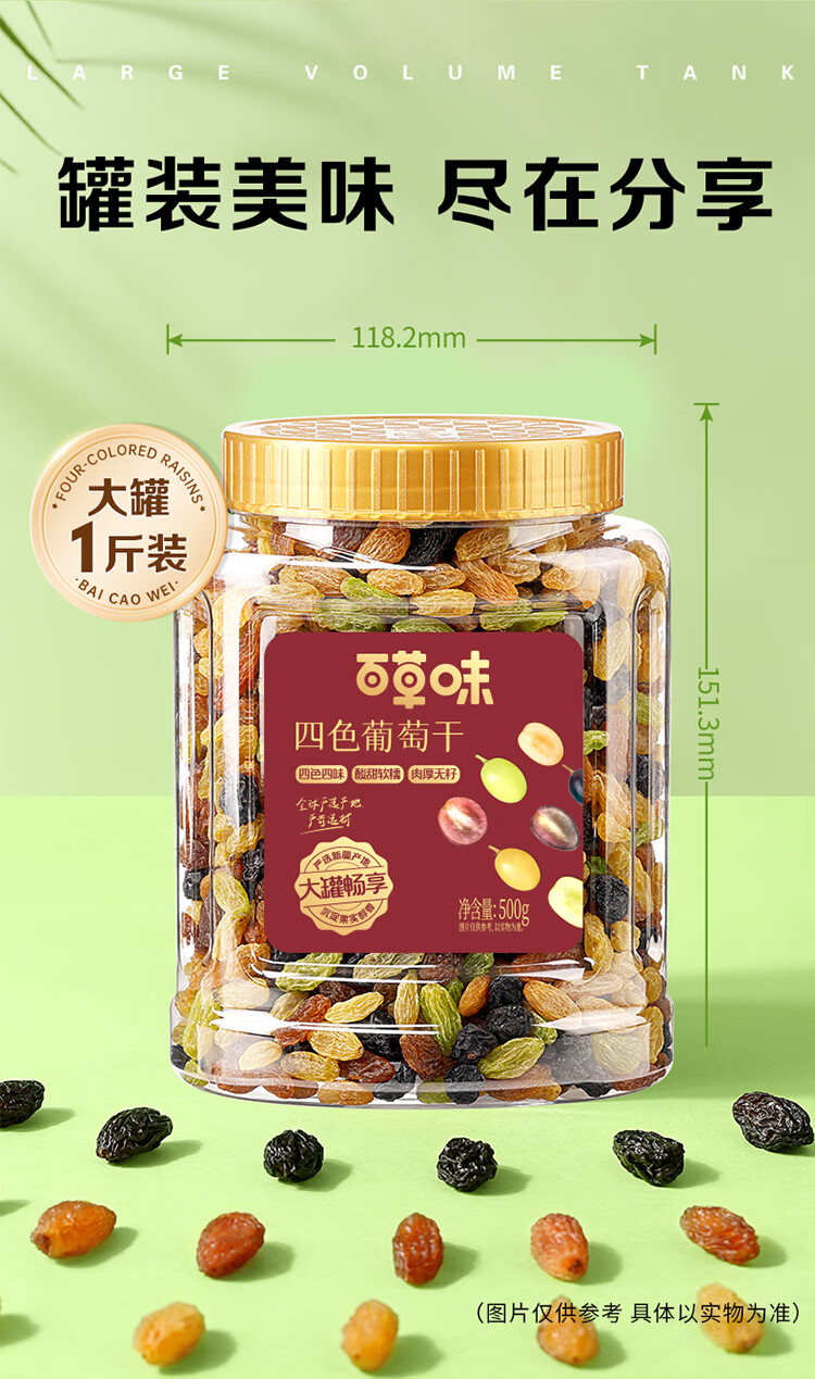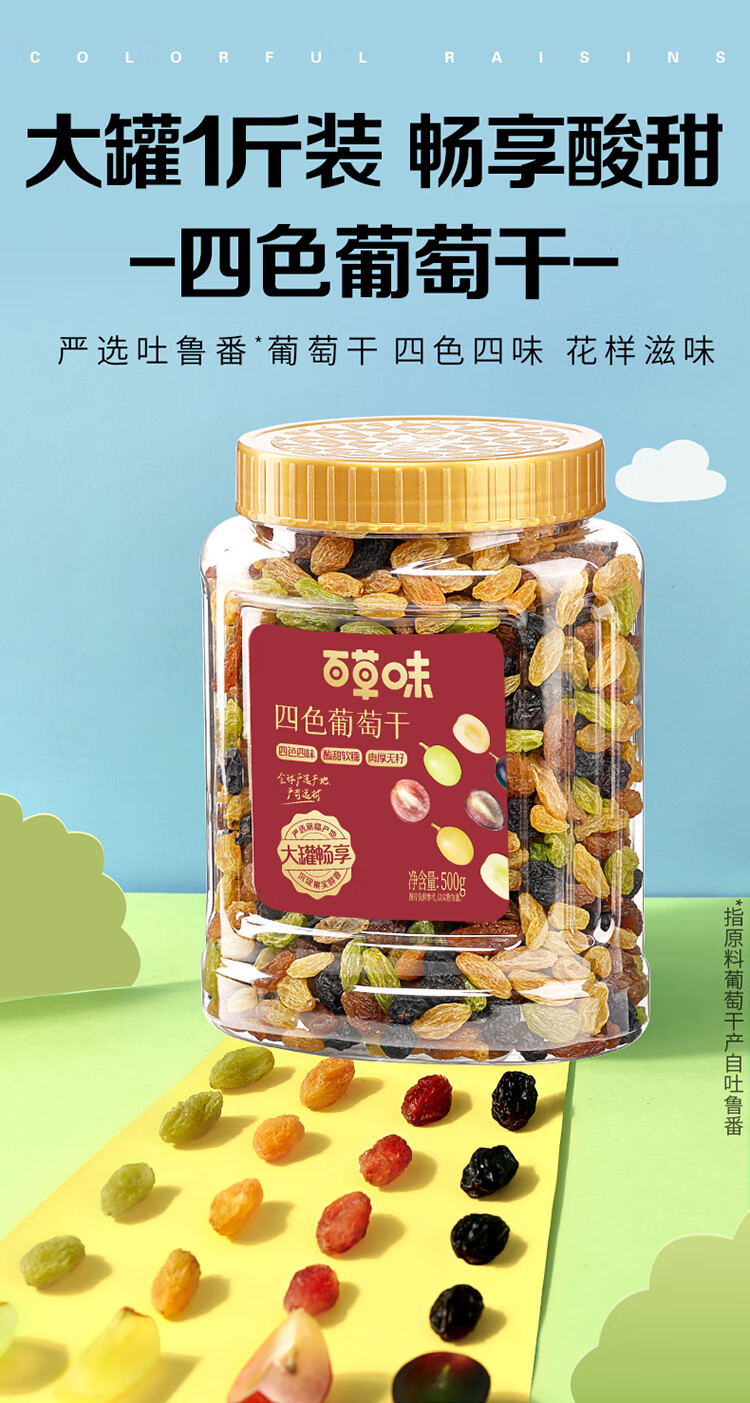 百草味四色葡萄干500g罐装新疆吐鲁番特产原料免洗大果干蜜饯零食