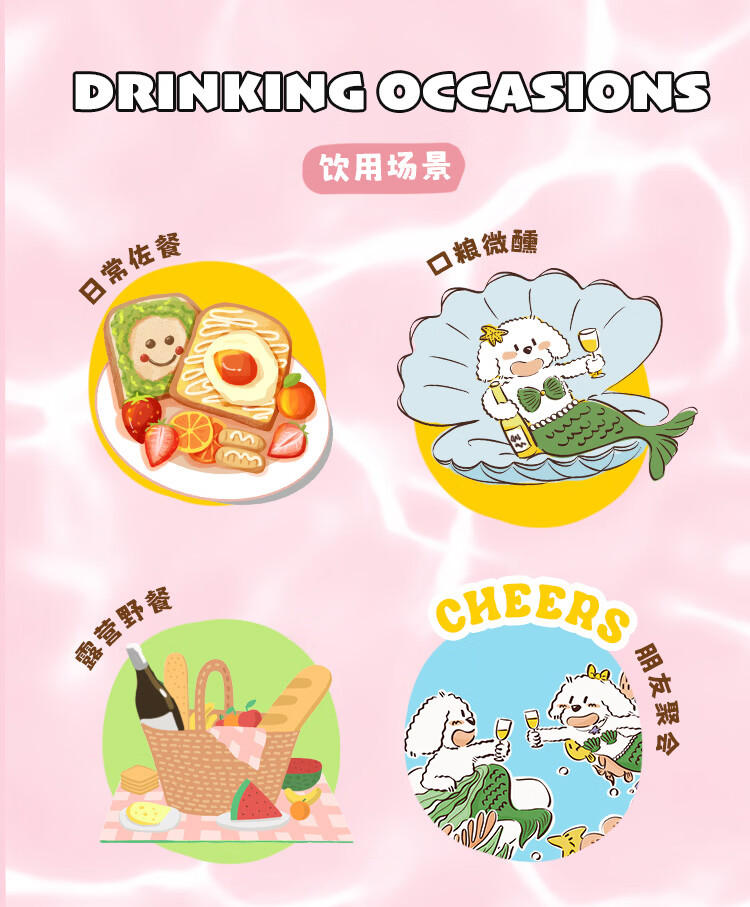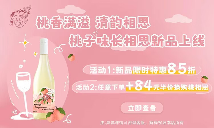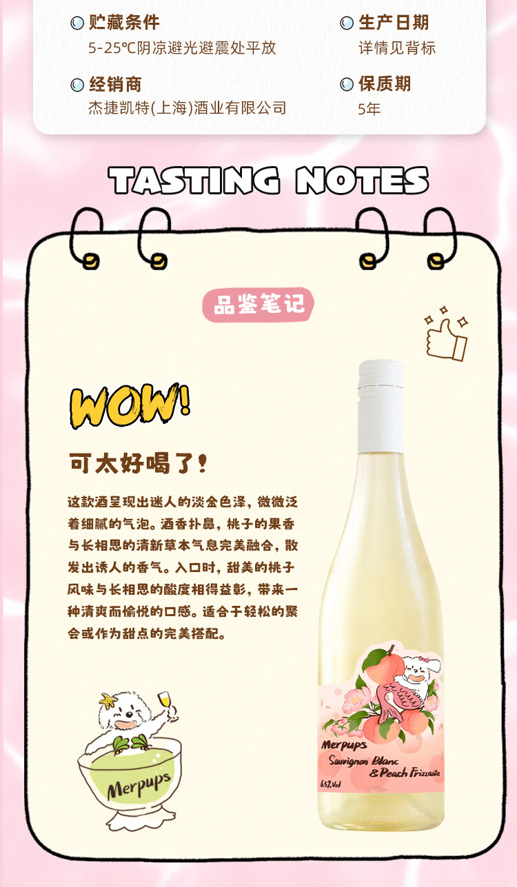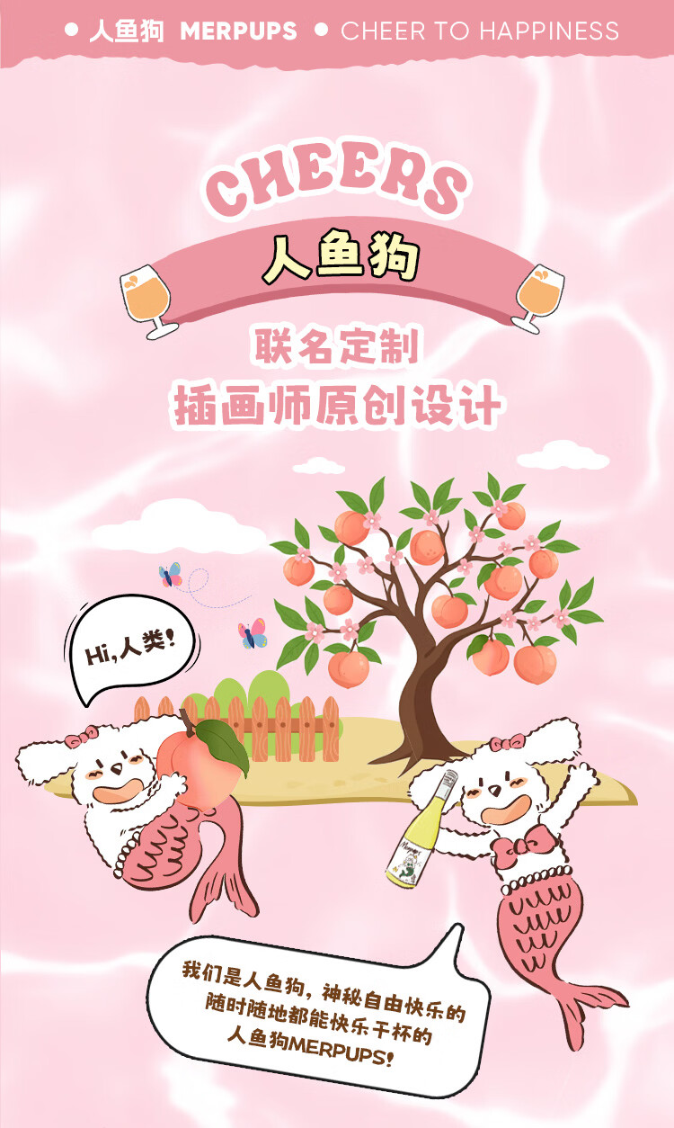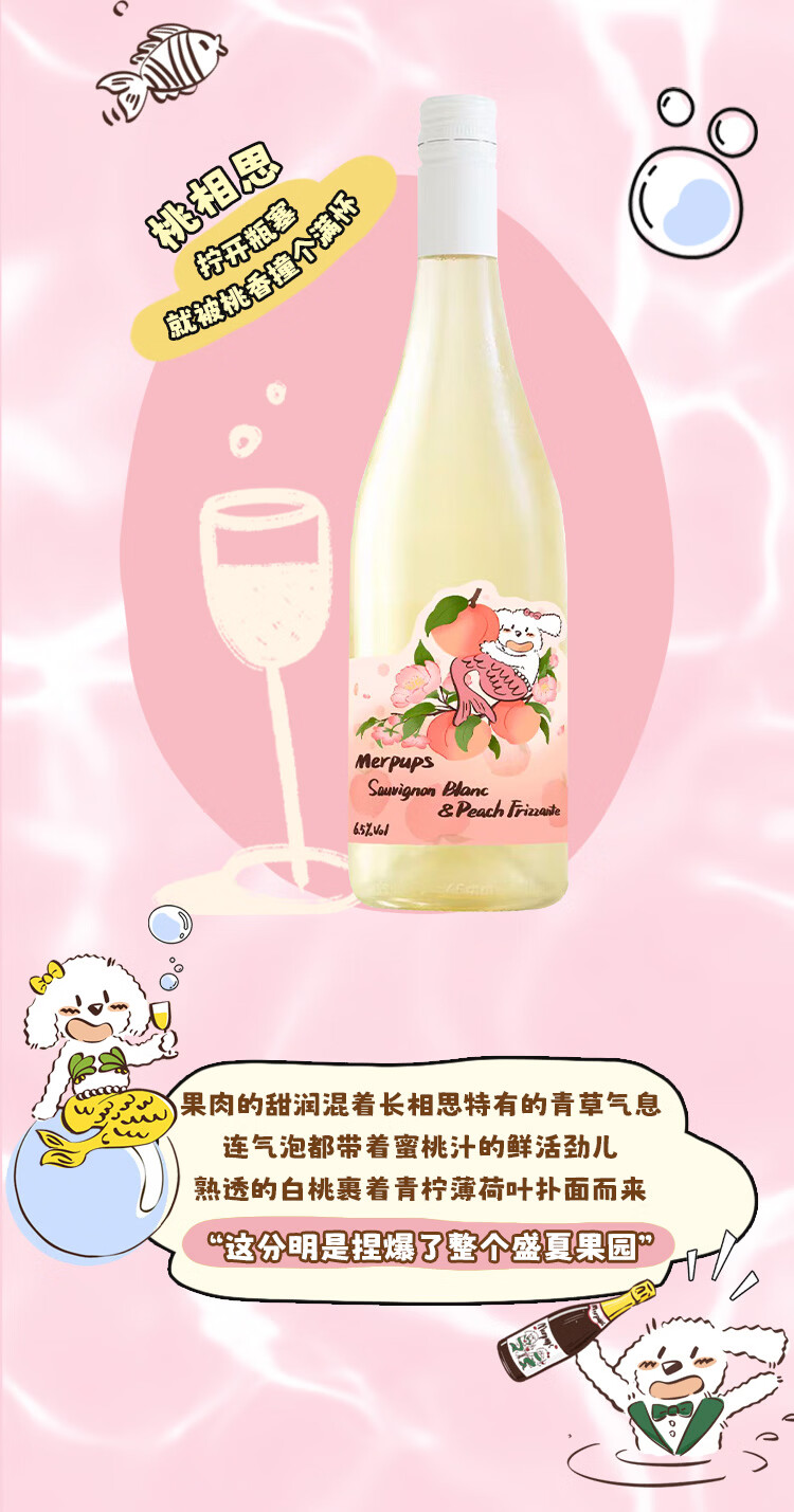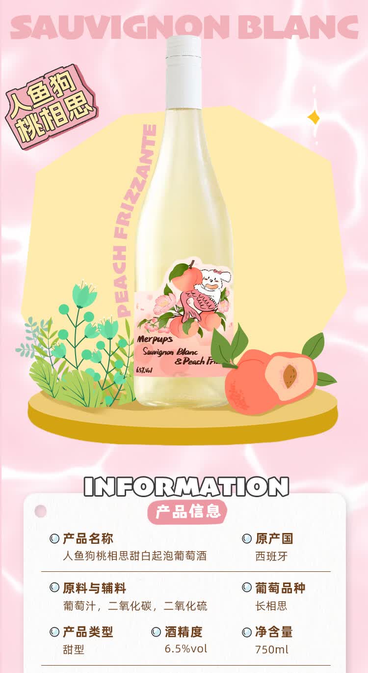 人鱼狗 桃相思甜白起泡葡萄酒 西班牙原瓶进口长相思750ml 桃相思2瓶装(新品限时特惠价)