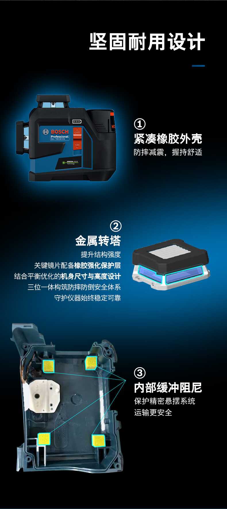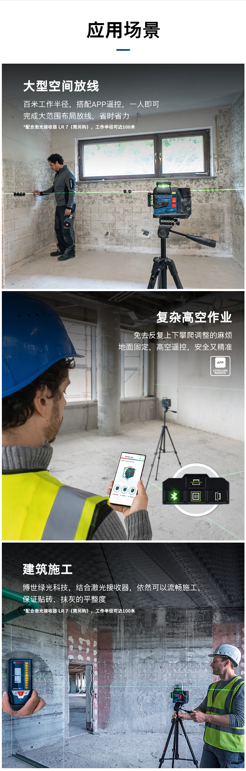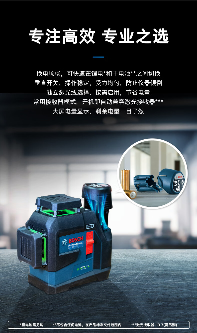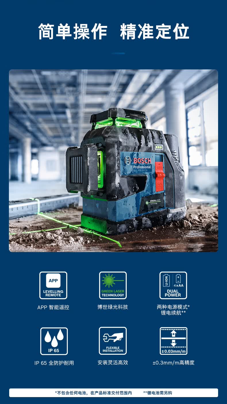 博世(BOSCH)GLL 100-33 CG专业级水平仪十二线锂电绿光防尘遥控激光标线仪 十二线水平仪(送支架、夹具)