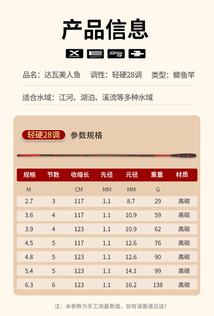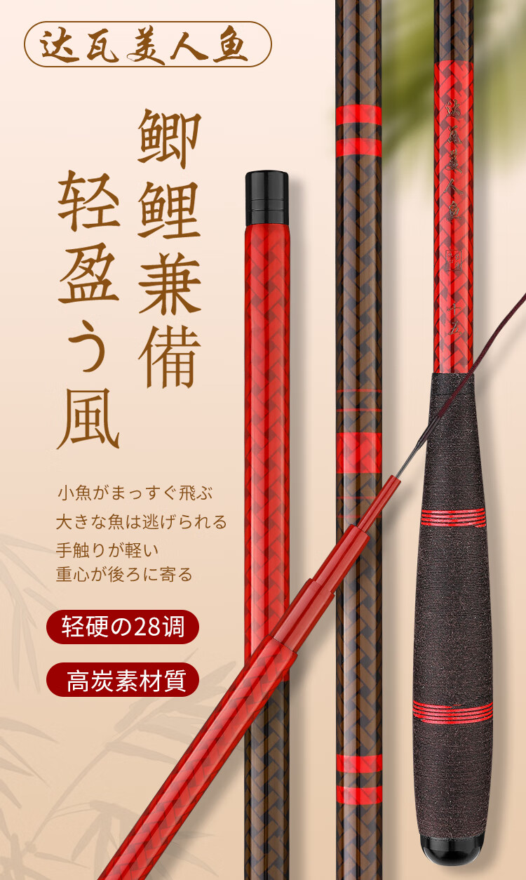 达瓦美人鱼鲫鱼竿鲤鱼竿碳素超轻超细超硬超轻鱼竿台钓竿钓鱼竿28调野钓综合 6.3m 可鲫可鲤28调+竿稍+礼包