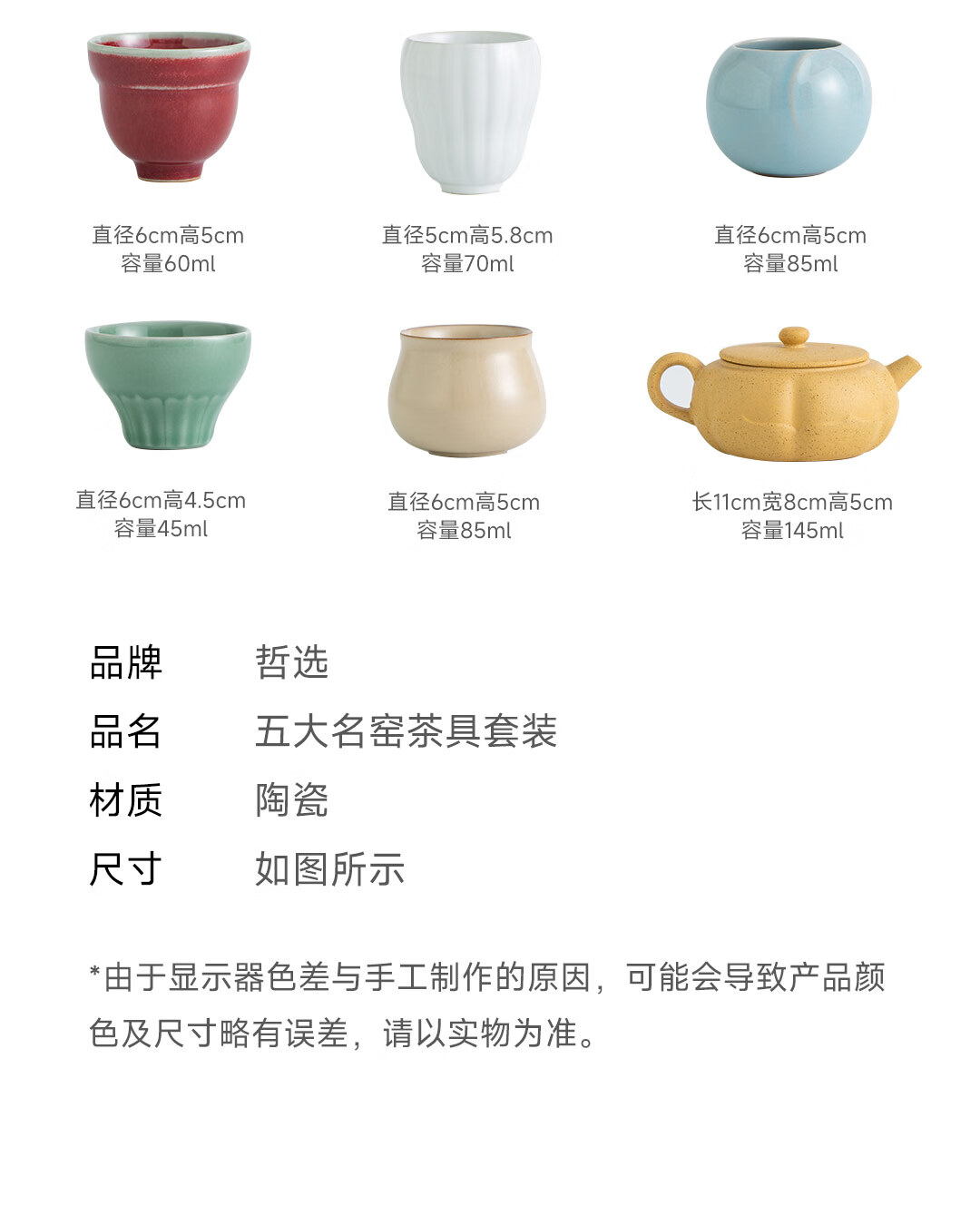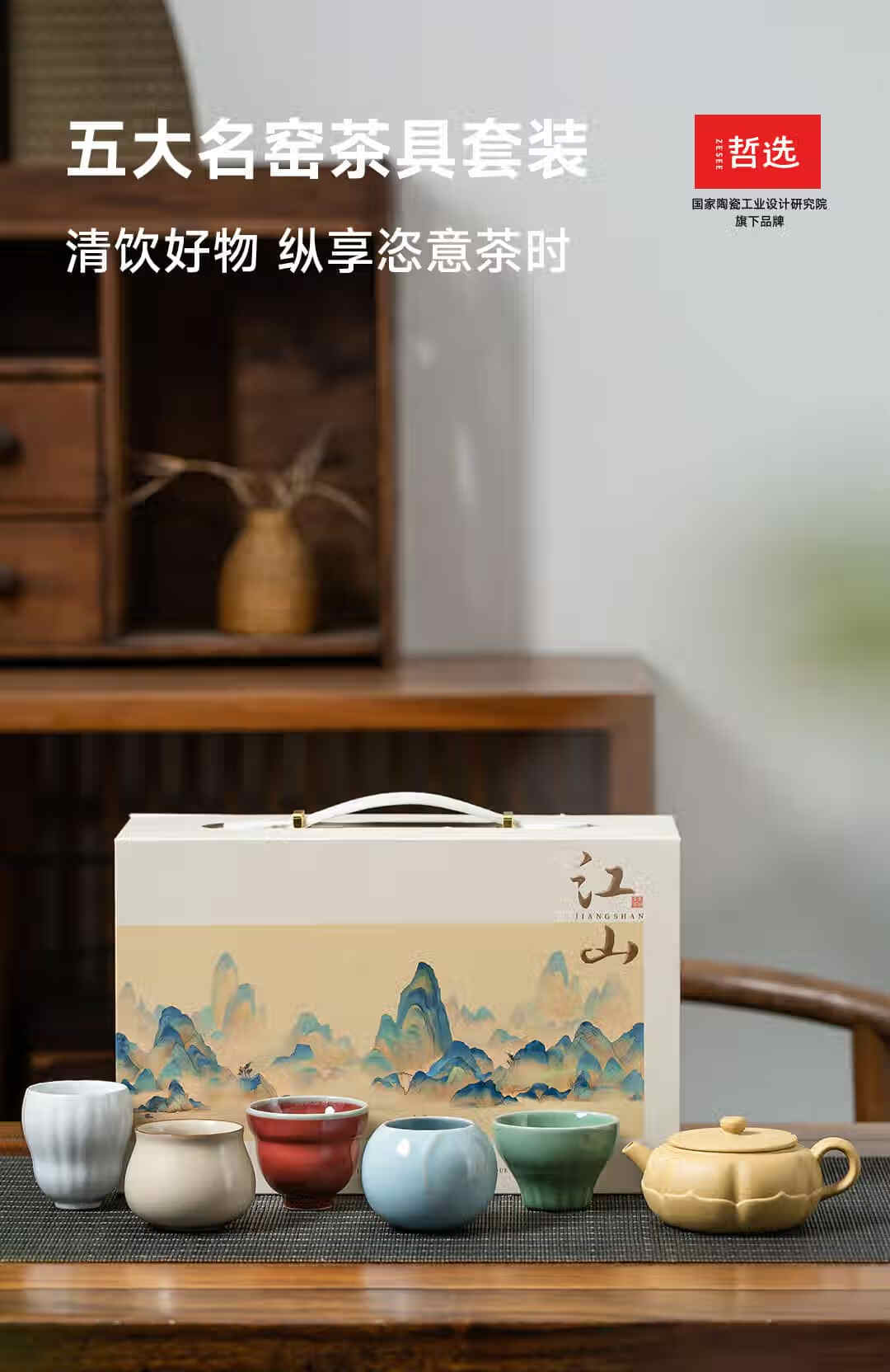 哲选 五大名窑紫砂壶汝窑茶具 泡茶套装茶具整套功夫茶具乔迁伴手礼 五大名窑-锦绣山河