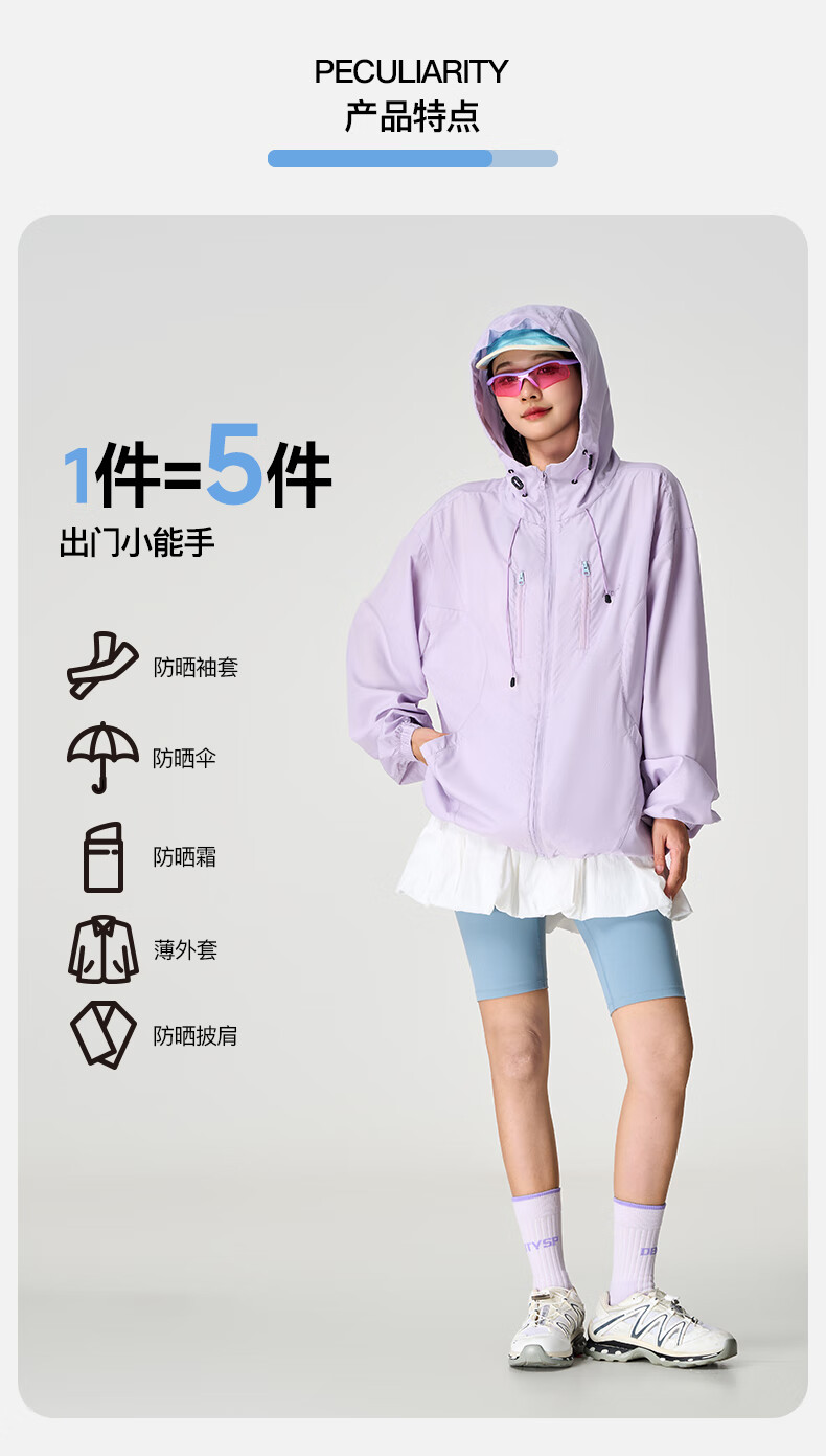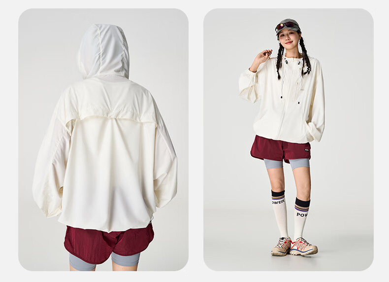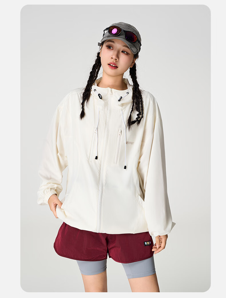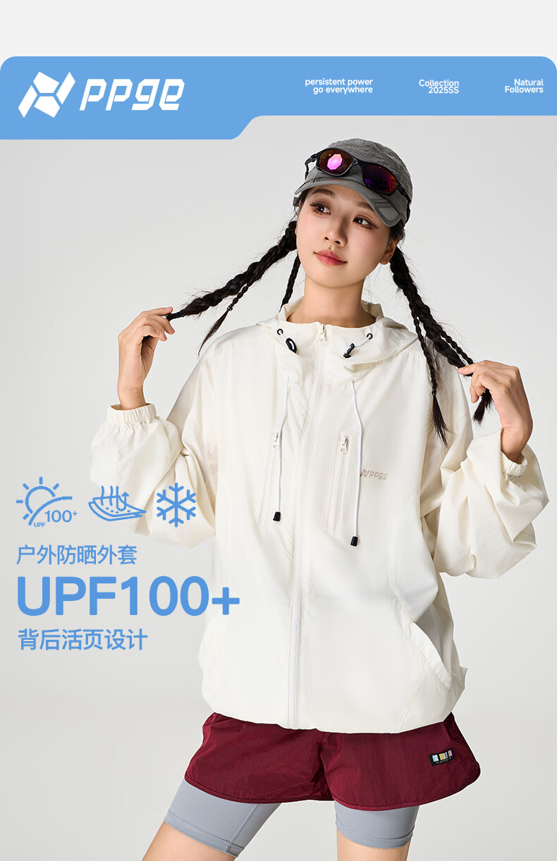 PPGE防晒衣UPF100+防紫外线透气凉感轻薄连帽衣服男女同款防晒外套 流云白 S