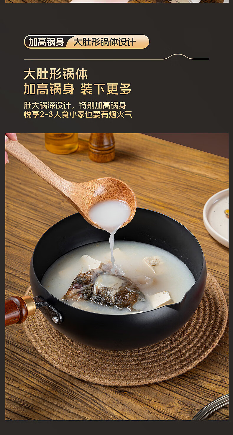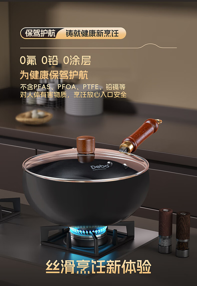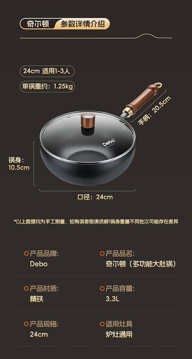 Debo德铂大肚锅铁锅导流口家用0涂层不粘锅平底炒菜炖汤锅加厚炒锅 新导流口大肚锅-99%用户选择 24cm