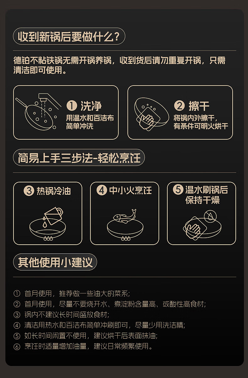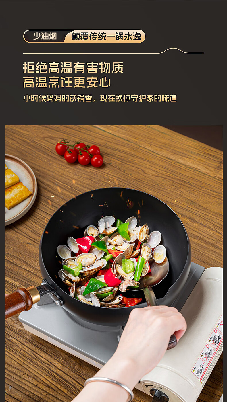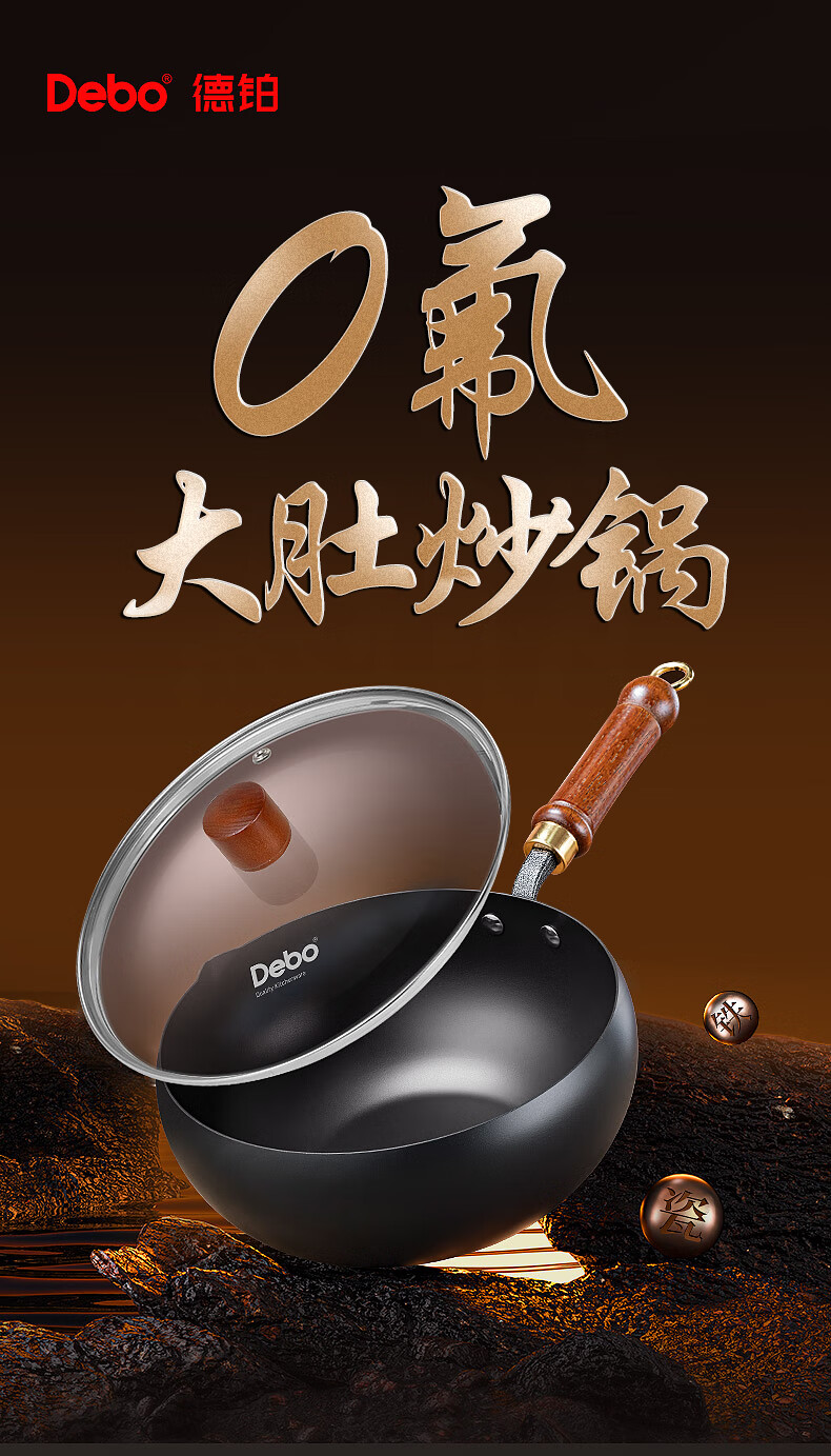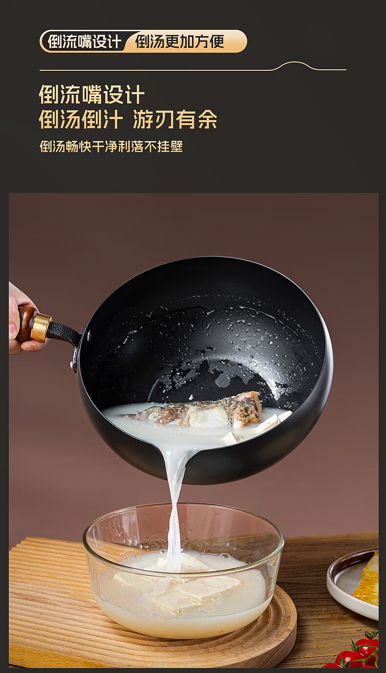 Debo德铂大肚锅铁锅导流口家用0涂层不粘锅平底炒菜炖汤锅加厚炒锅 新导流口大肚锅-99%用户选择 24cm