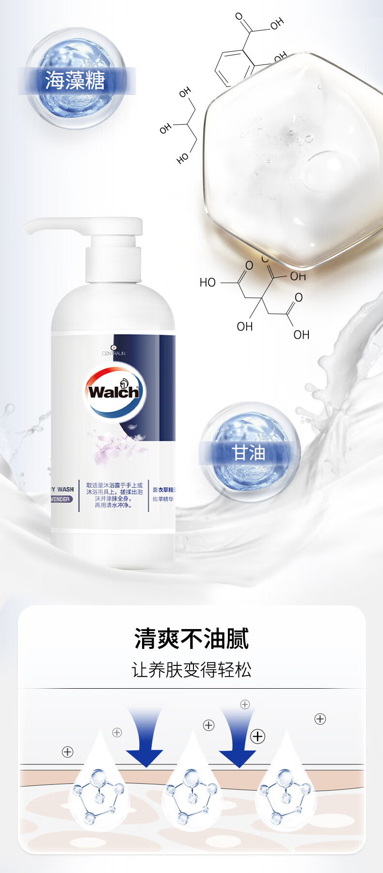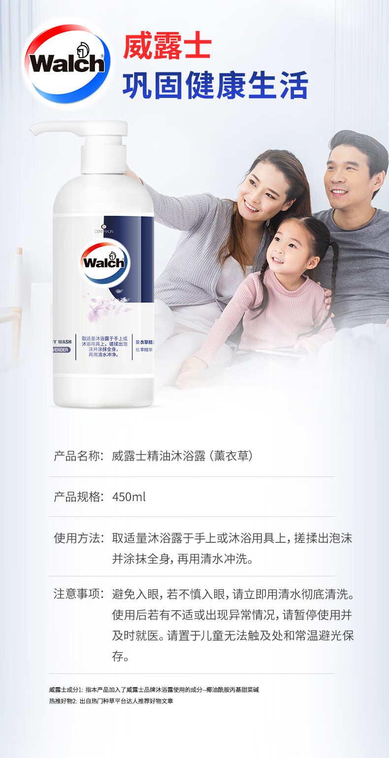 威露士(Walch)精油植萃沐浴露 滋润保湿三重保护肌肤健康 男女通用沐浴液 【有效期至2027年11月】薰衣草450ml