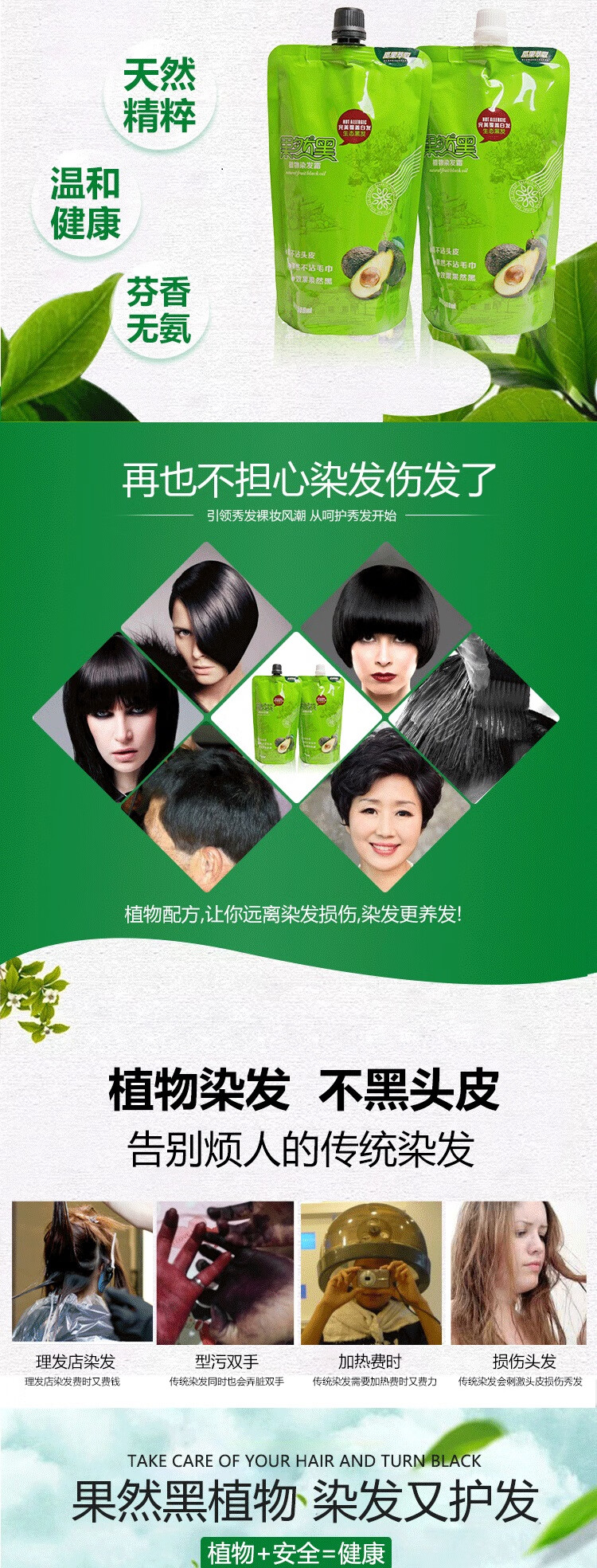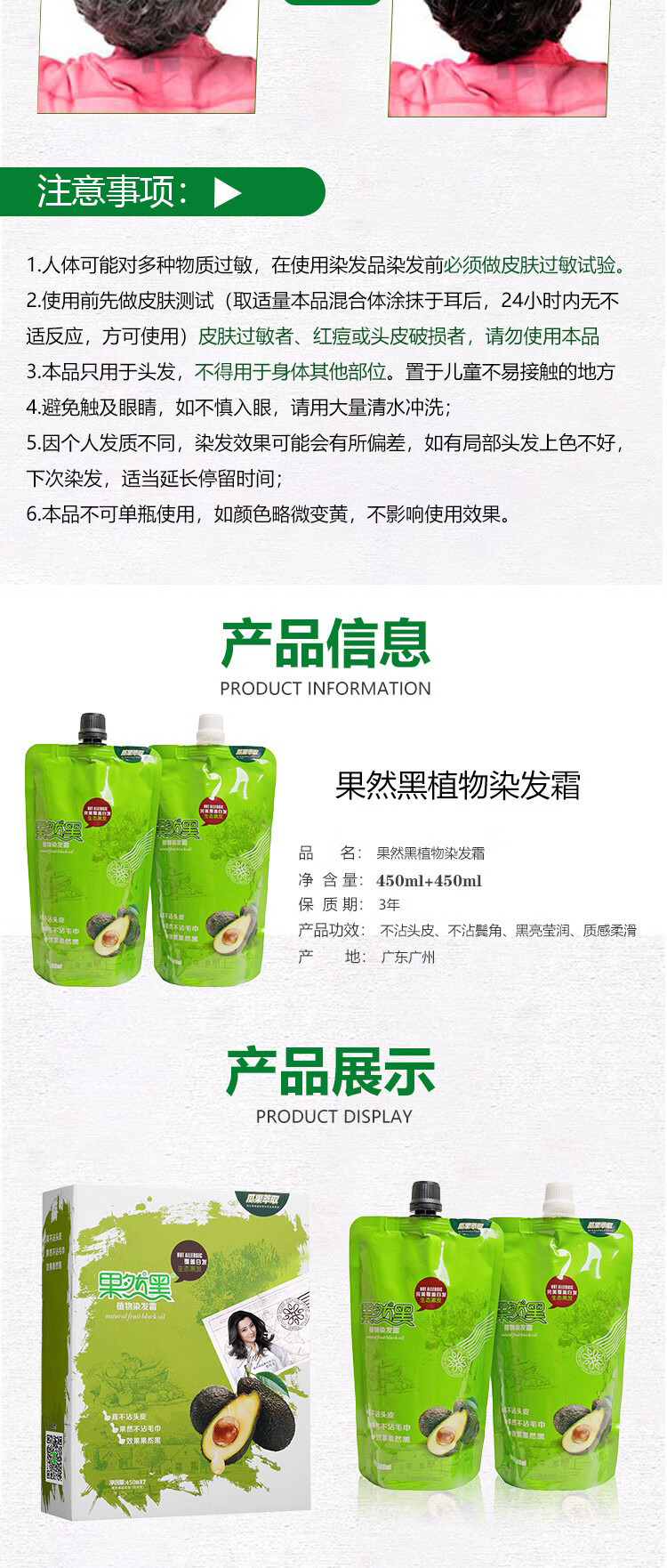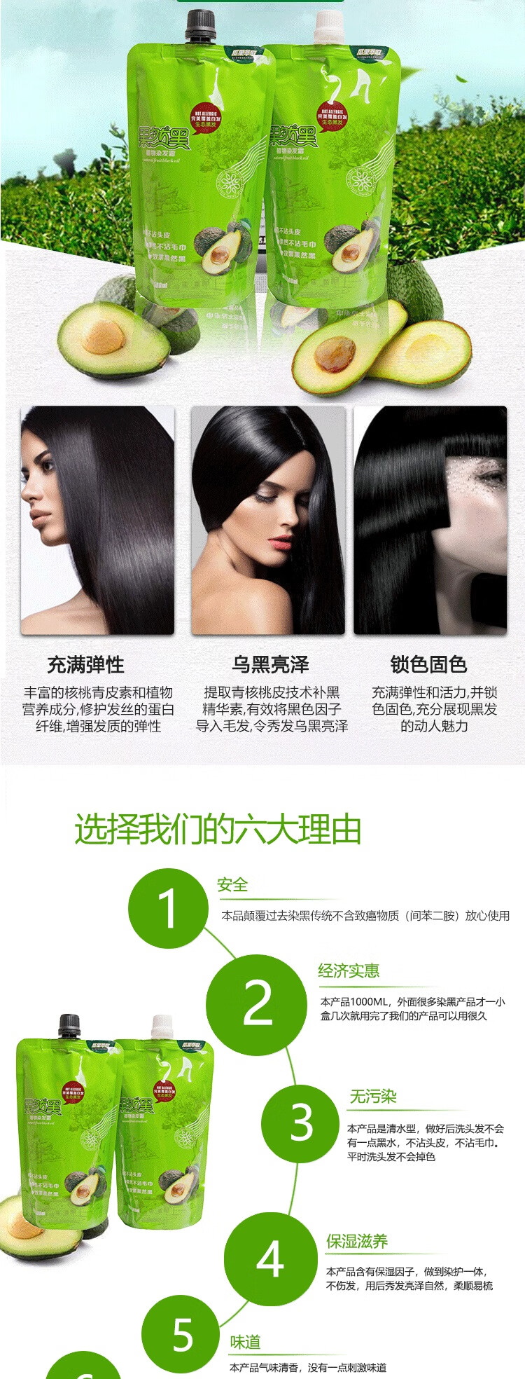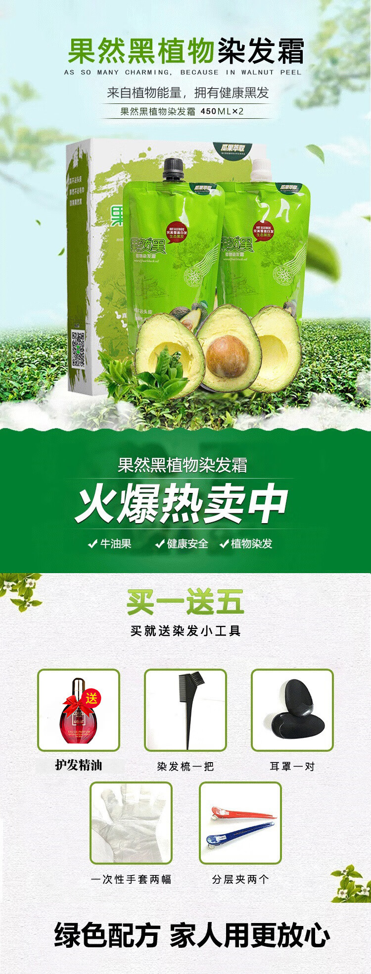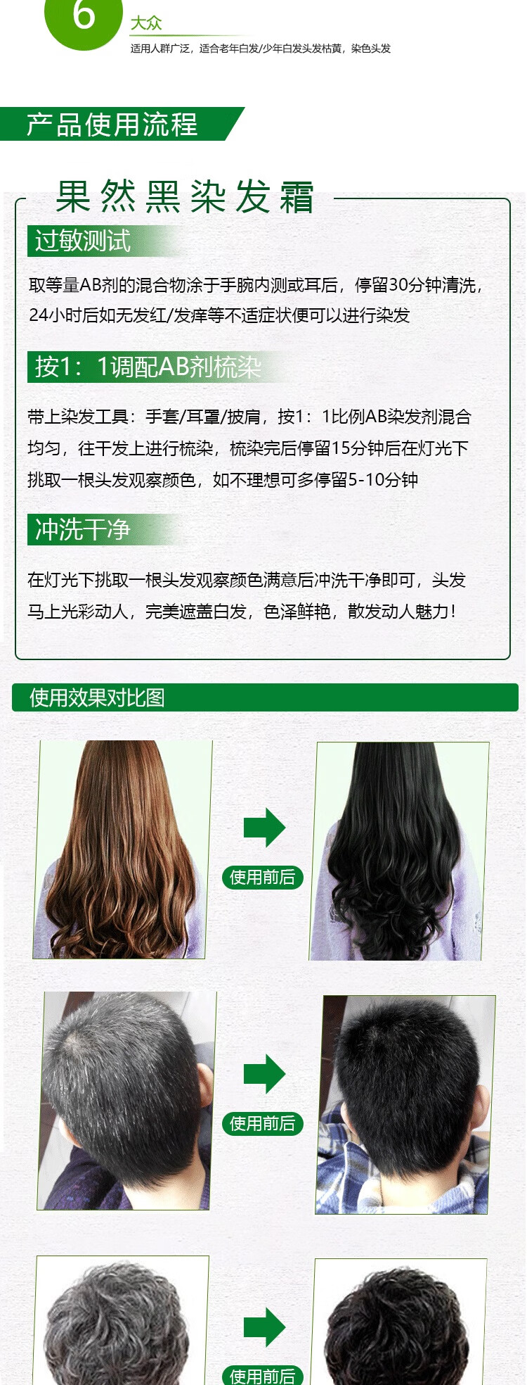 果然黑染发霜纯植物染发剂膏不沾头皮清水黑油不过敏盖白发不伤发在家染 大盒450ml*2送精油送工具