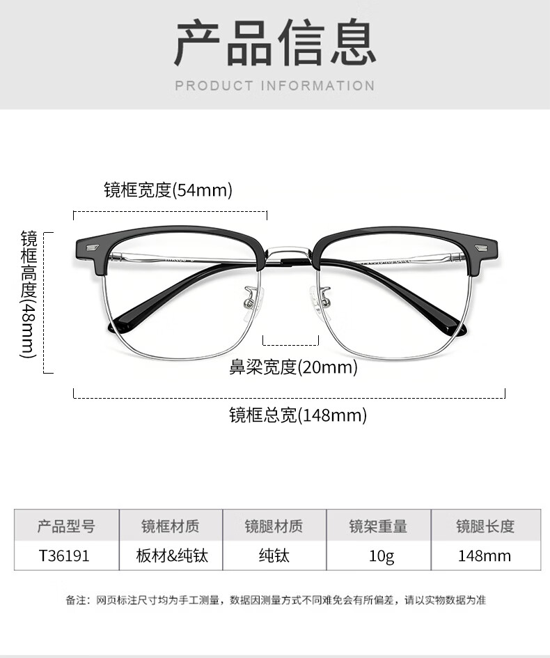特瞳话纯钛眉线近视眼镜框男超轻纯钛大框眼镜架配防蓝光眼镜店配镜近视 纯钛镜框-黑银色 【明月 PMC 超亮】1.56PMC纯净超亮镜片