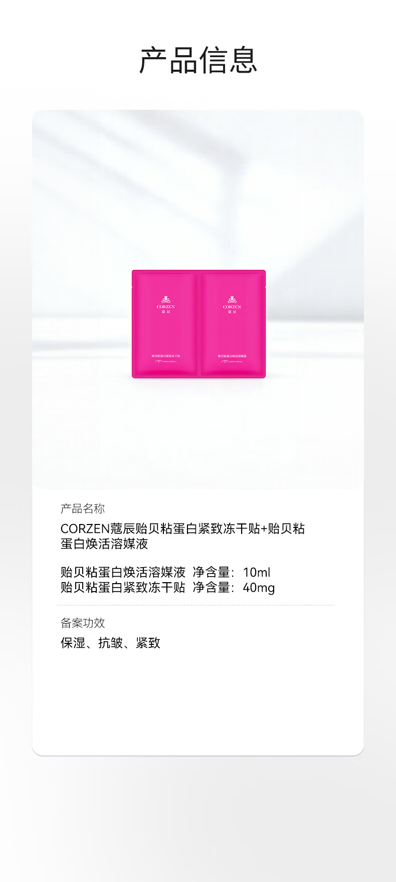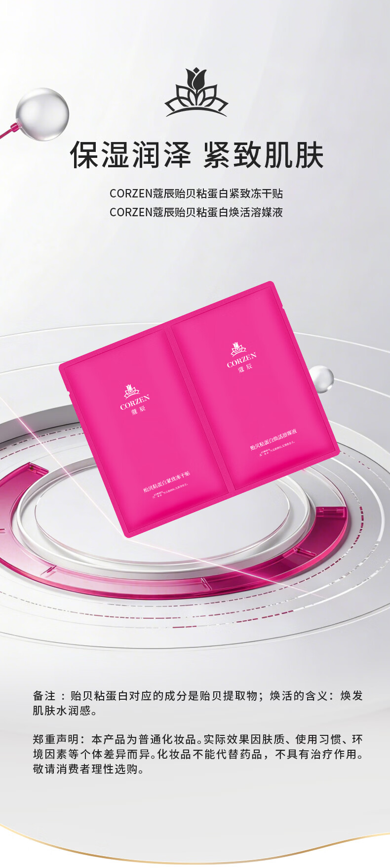 蔻辰(CORZEN)【徐楠楠】蔻辰贻贝粘蛋白保湿嫩肤冻干面膜精华1+1组合套装 冻干贴40mg*2片+溶媒液10ml*2袋