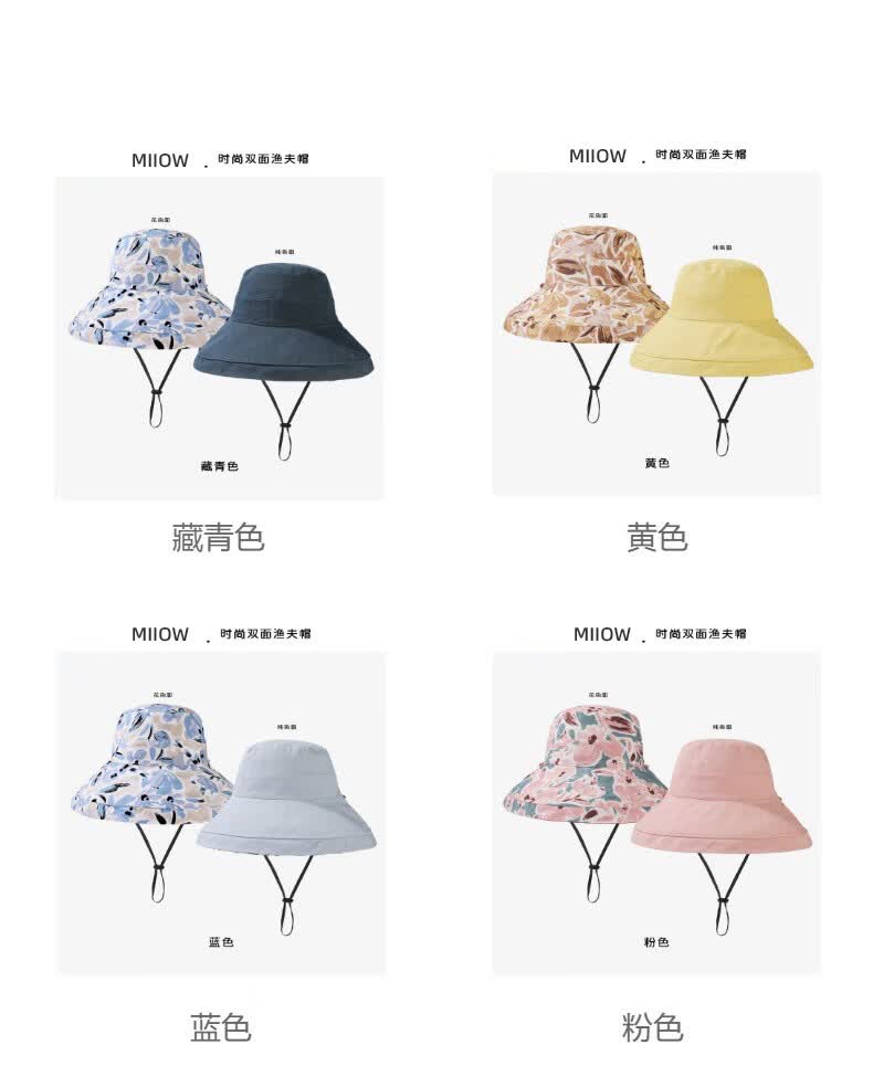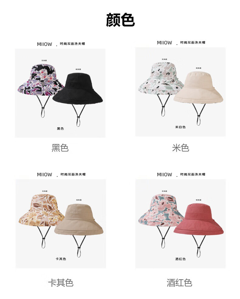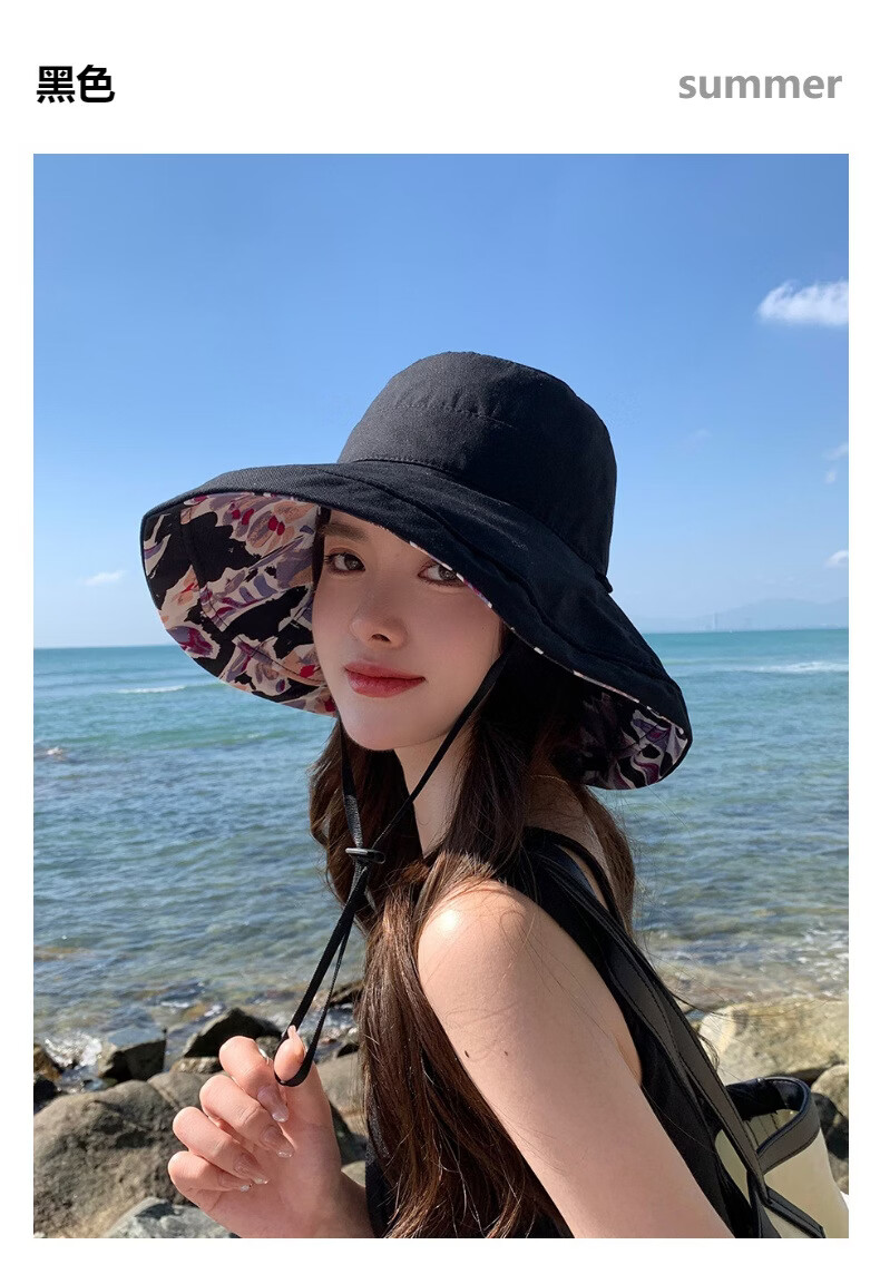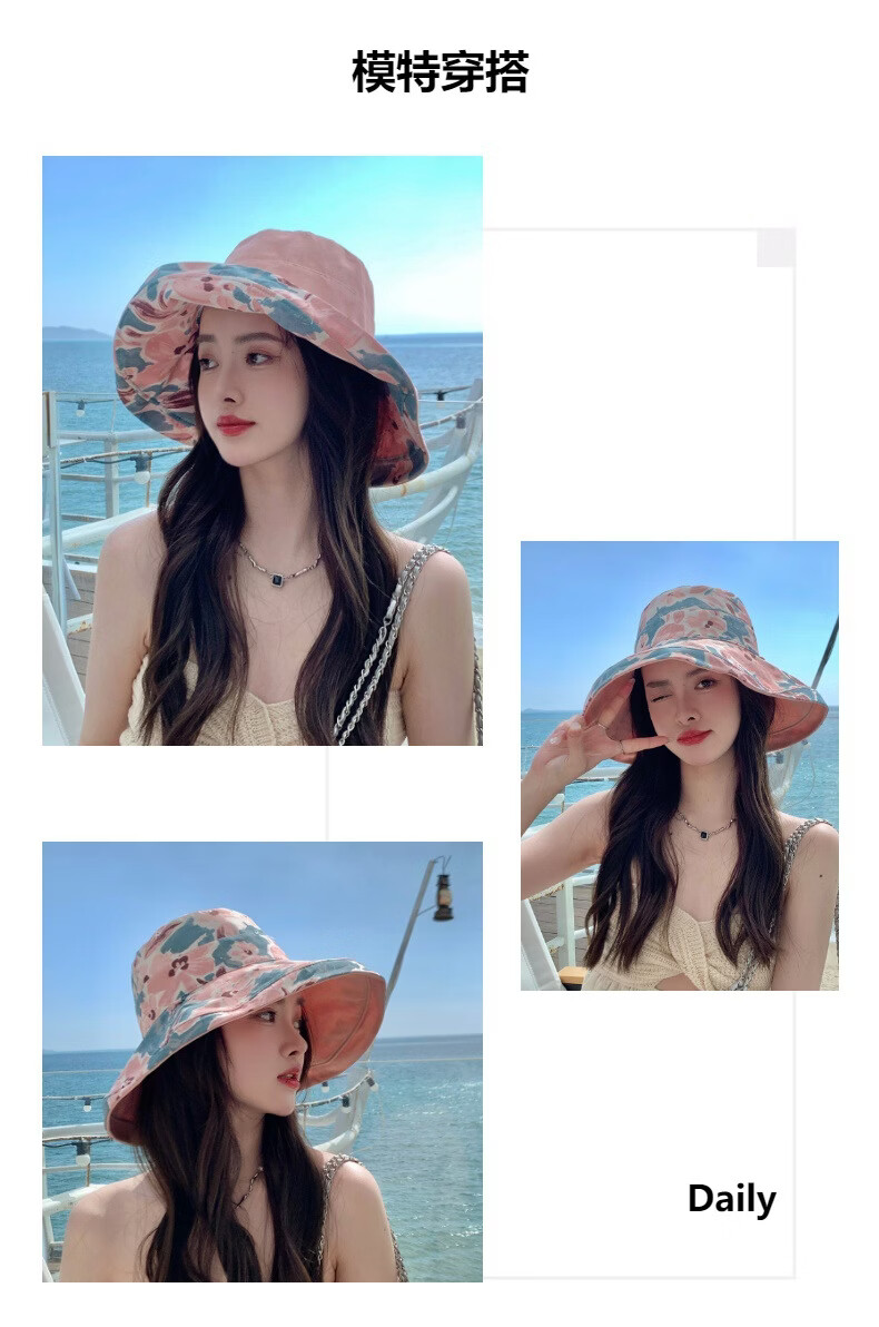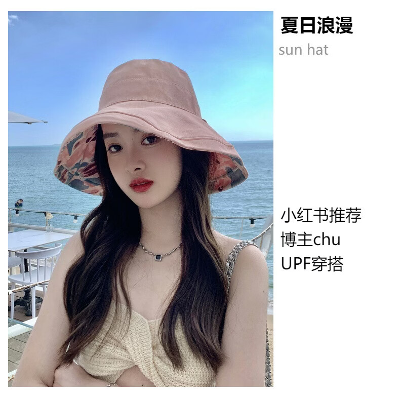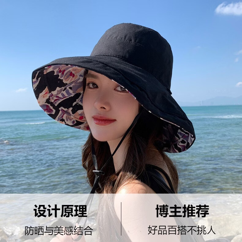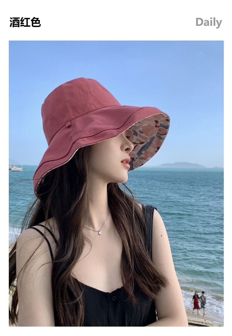 猫人棉双面遮阳渔夫帽女防晒春秋夏季户外出游遮脸大沿太阳帽子可折叠 米色 均码(56-58cm)