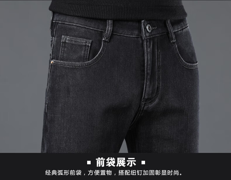 真维斯(Jeanswest)牛仔裤男秋冬季棉弹高端直筒裤新款宽松加厚商务休闲爸爸男装 蓝色 28
