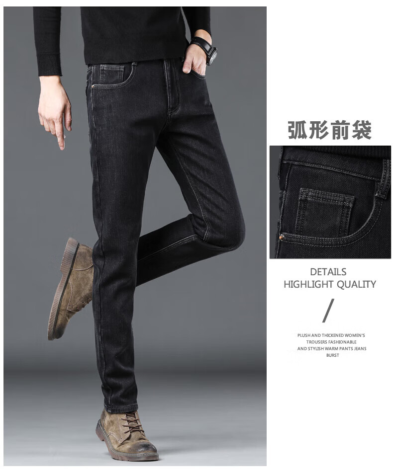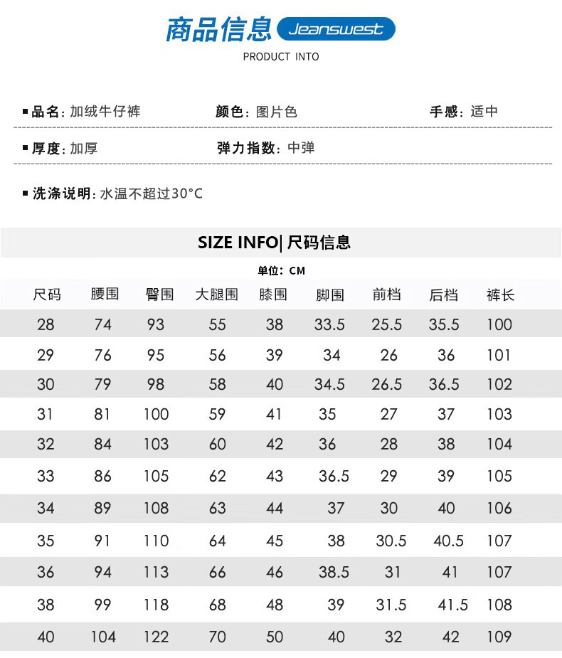 真维斯(Jeanswest)冬季牛仔裤男士2026新款修身直筒秋冬款加绒加厚保暖长裤子 蓝灰加绒 28