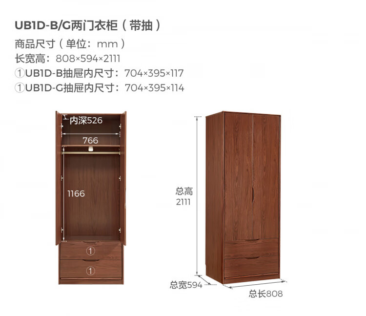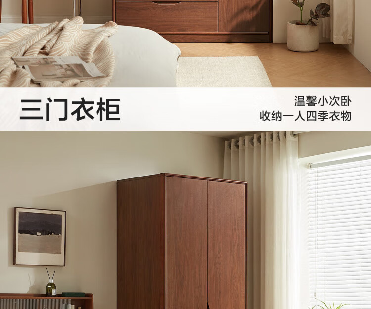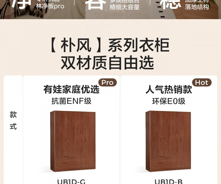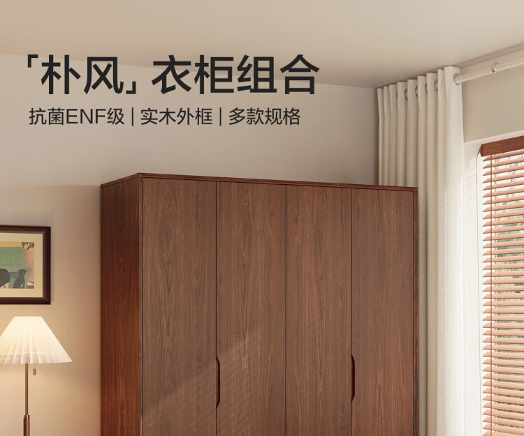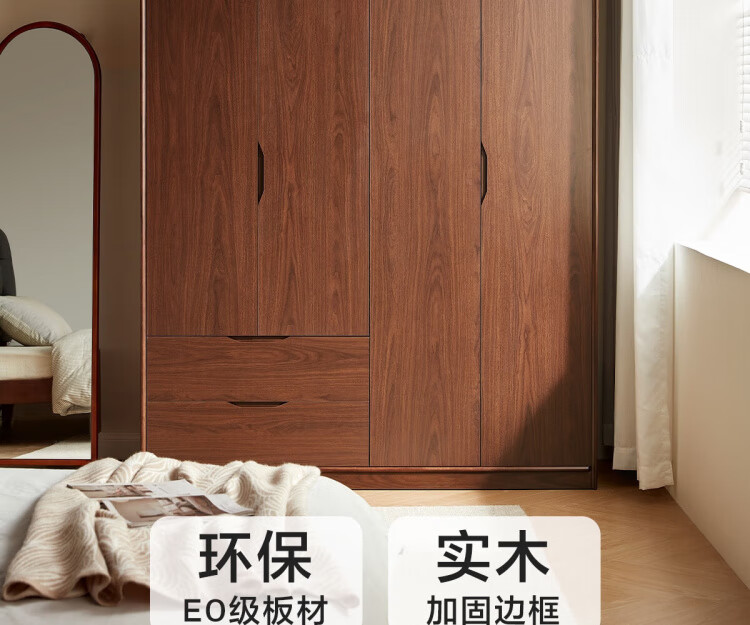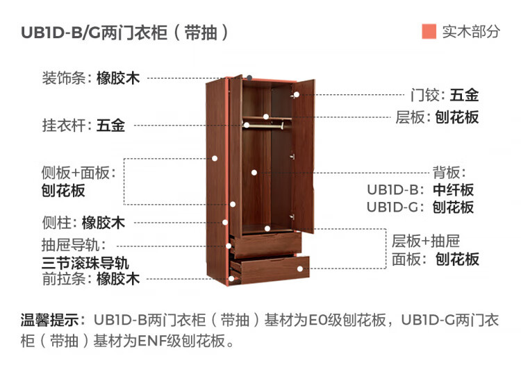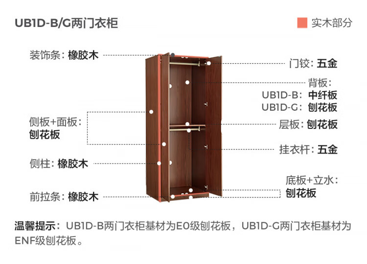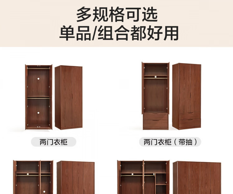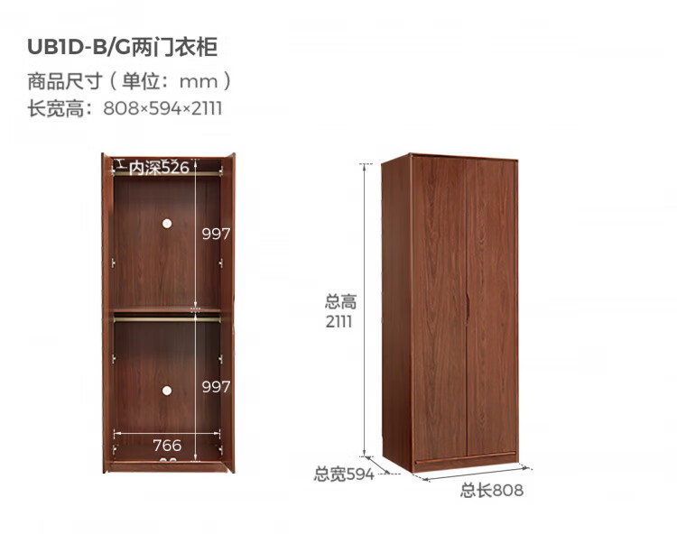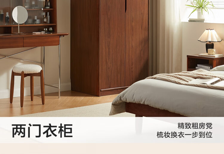 林氏家居中古风胡桃色衣柜卧室家用ENF可选储物柜成品收纳柜林沐系列UB1D 【ENF级】双门0.80米|高2.11米|无抽