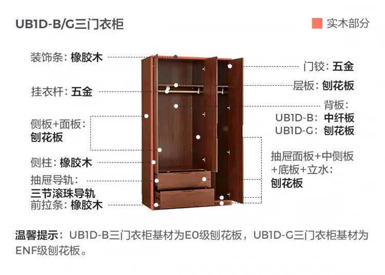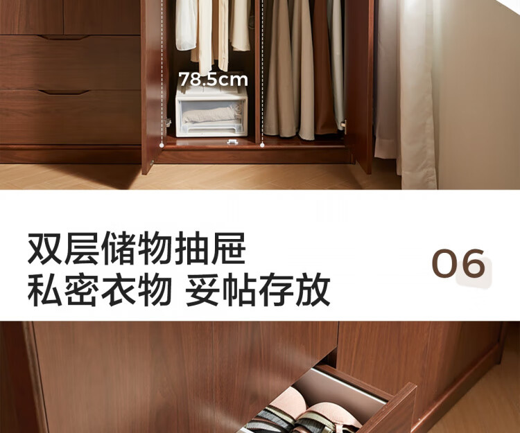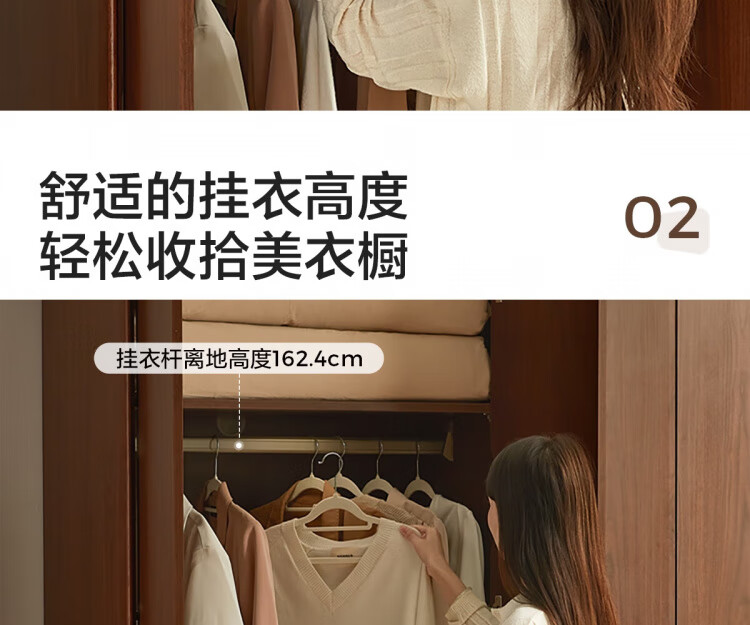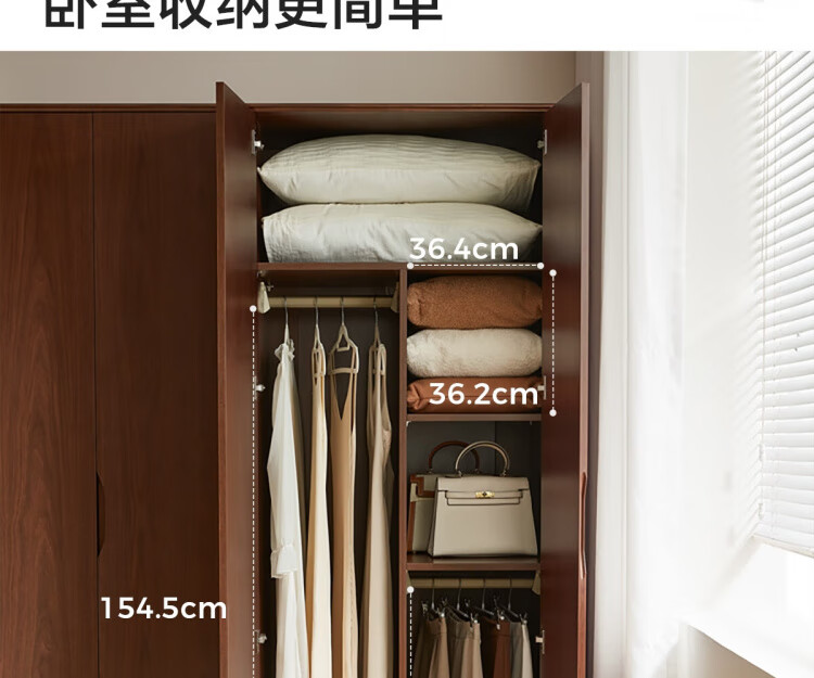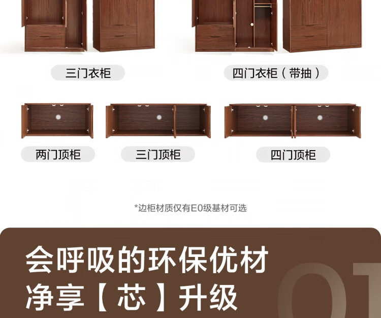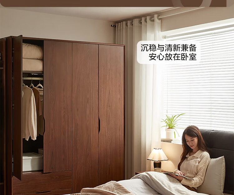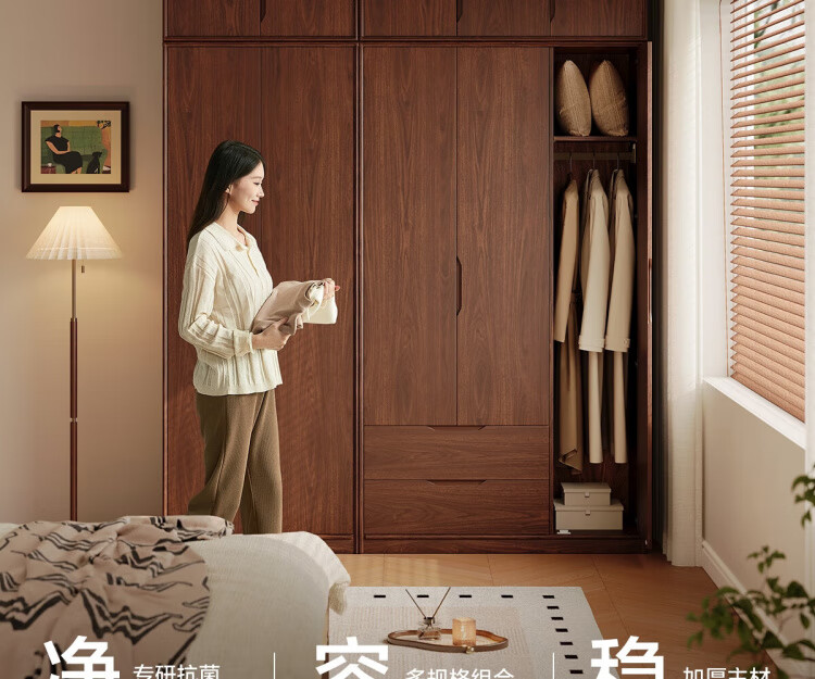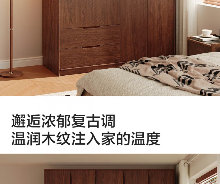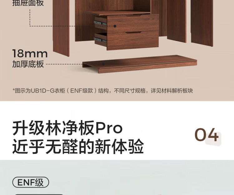 林氏家居中古风胡桃色衣柜卧室家用ENF可选储物柜成品收纳柜林沐系列UB1D 【ENF级】双门0.80米|高2.11米|无抽