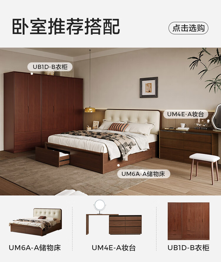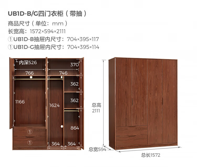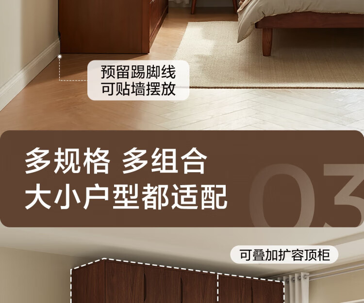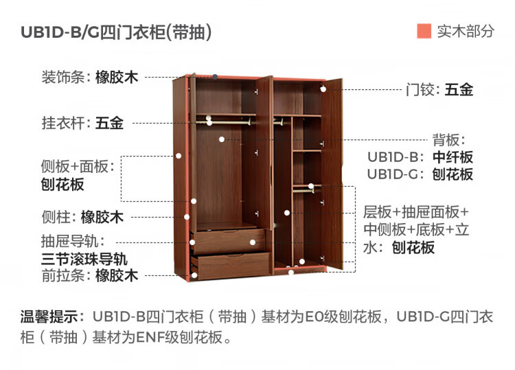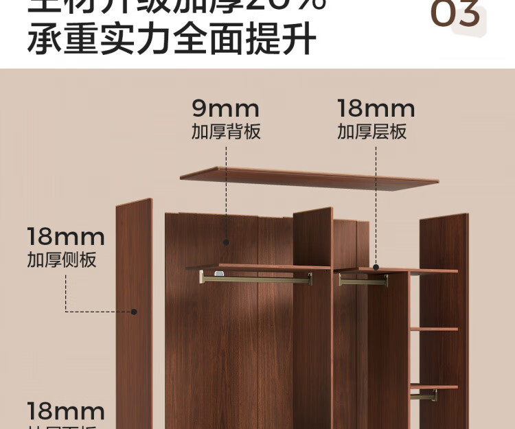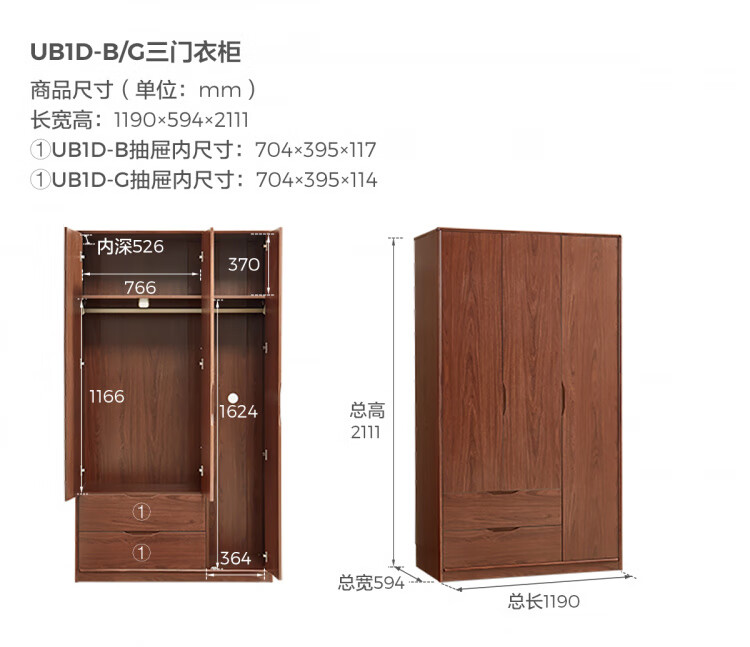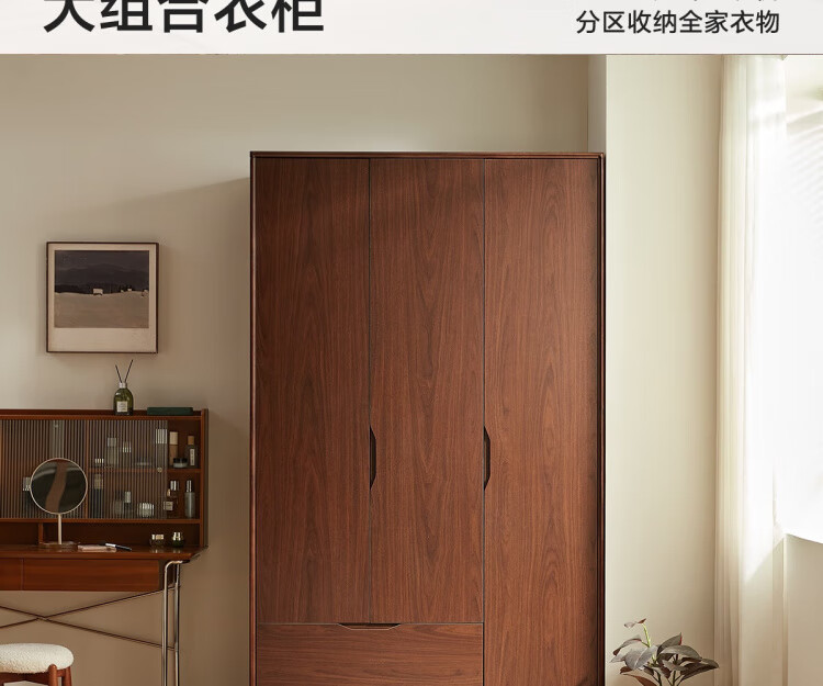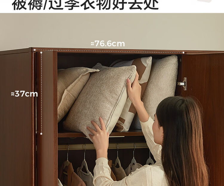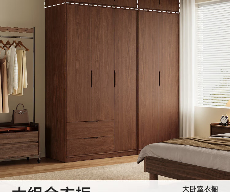 林氏家居中古风胡桃色衣柜卧室家用ENF可选储物柜成品收纳柜林沐系列UB1D 【ENF级】双门0.80米|高2.11米|无抽