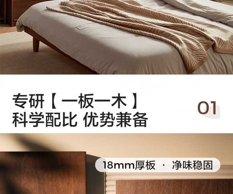 全友家居 北欧原木风北美红橡木实木床家用主卧室高脚双人大床1.8x2米