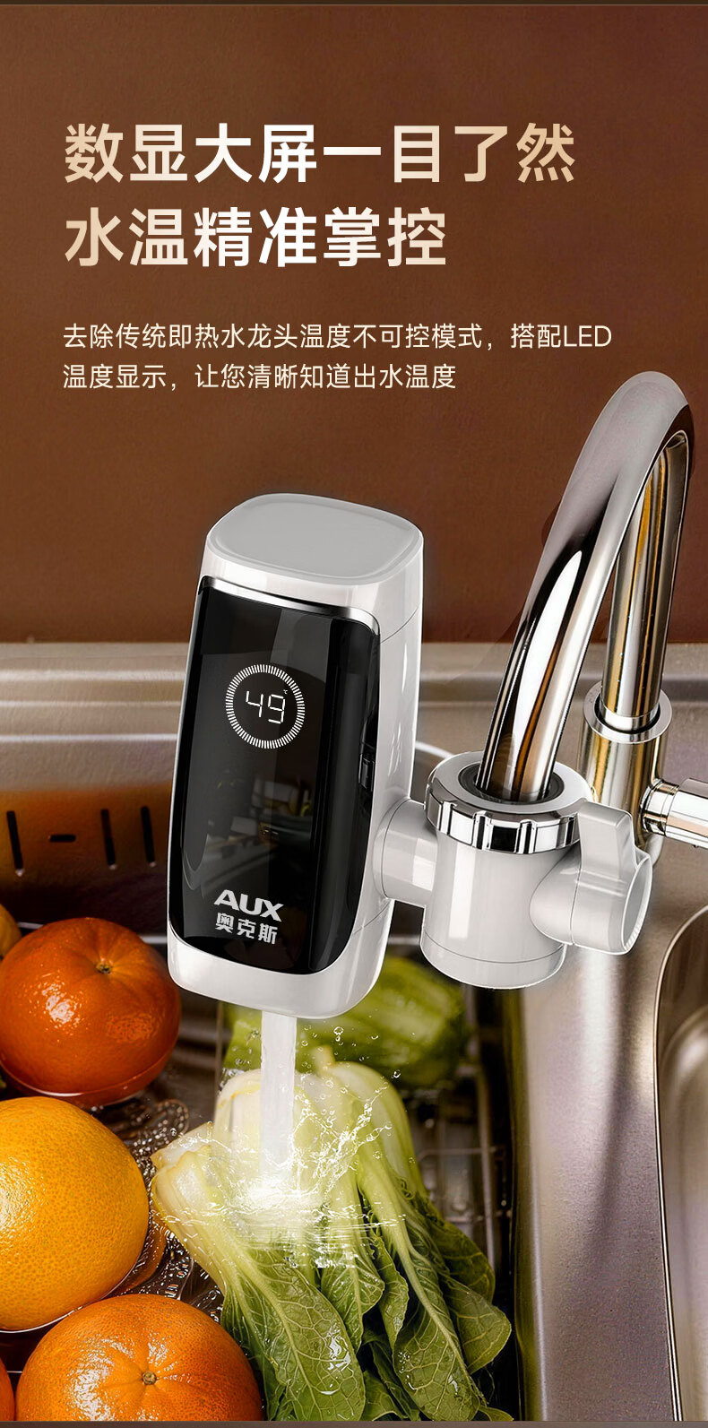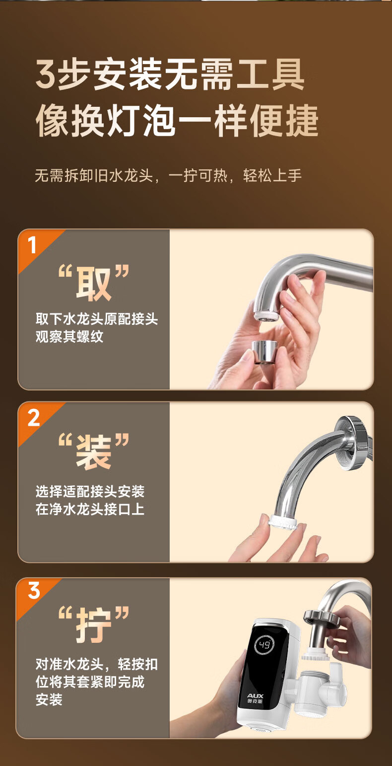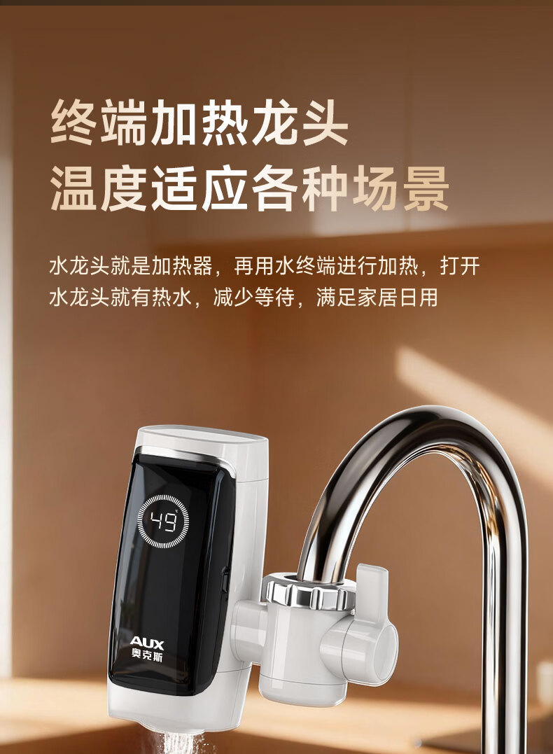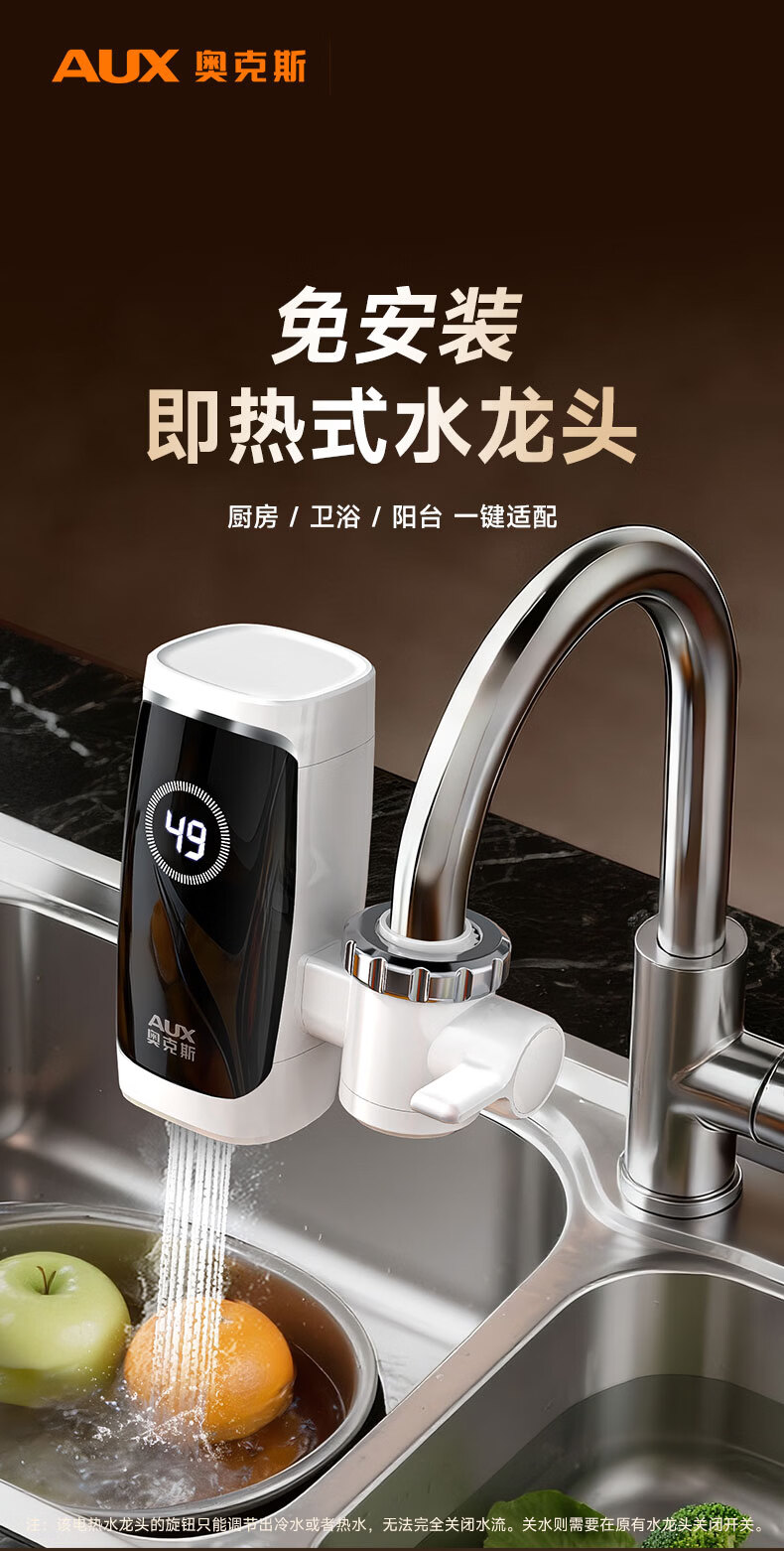 奥克斯电热水龙头免安装快速加热厨房冷热厨房宝即热式电热水器X-SJX3接驳式加漏保
