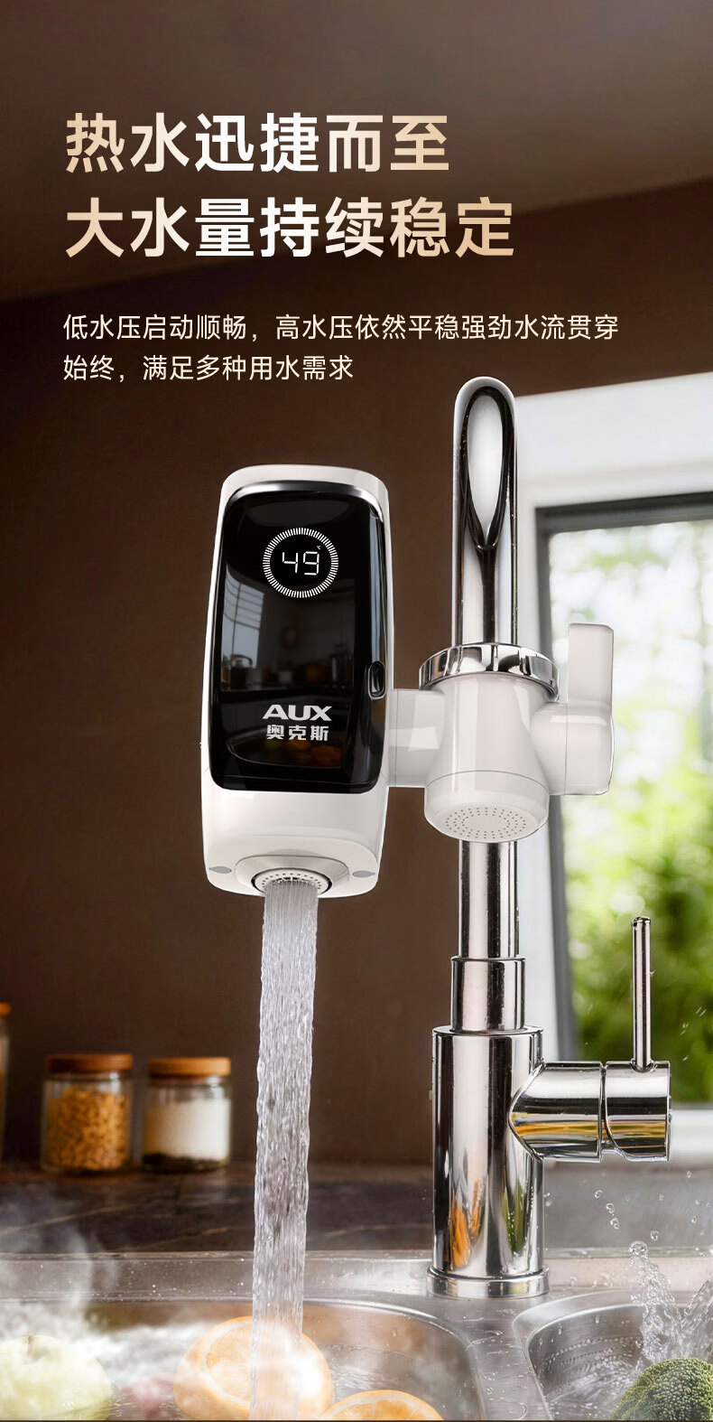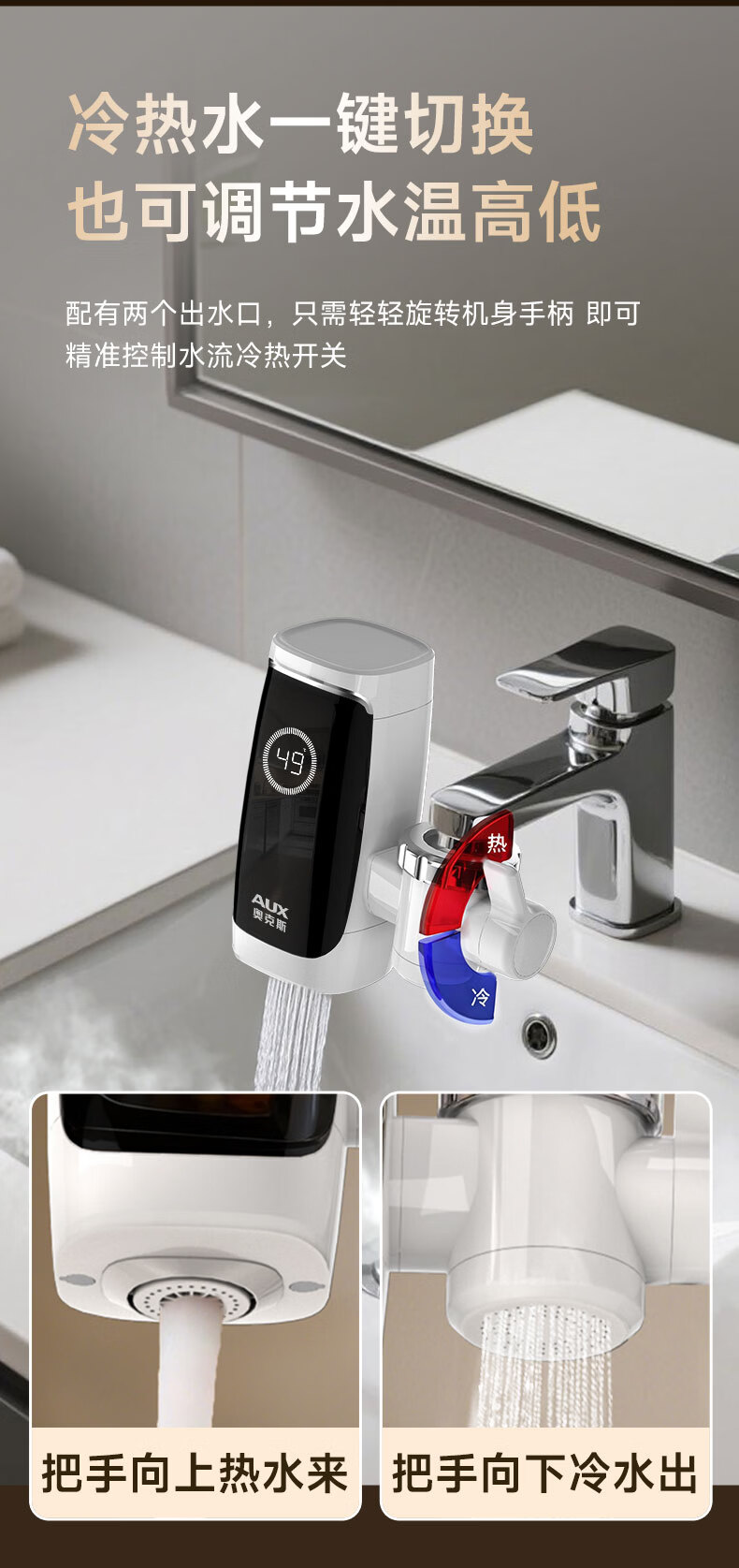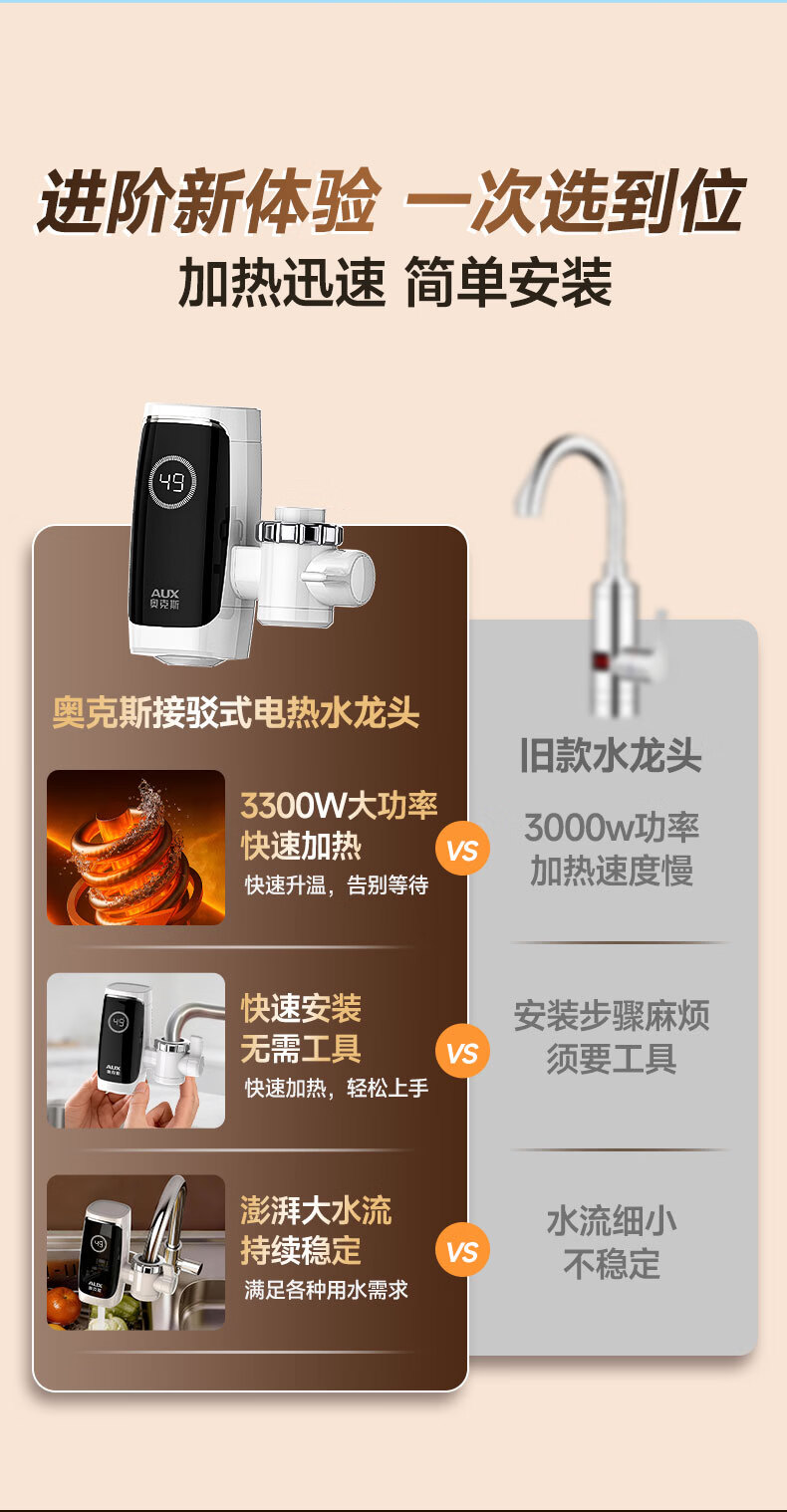 奥克斯电热水龙头免安装快速加热厨房冷热厨房宝即热式电热水器X-SJX3接驳式加漏保