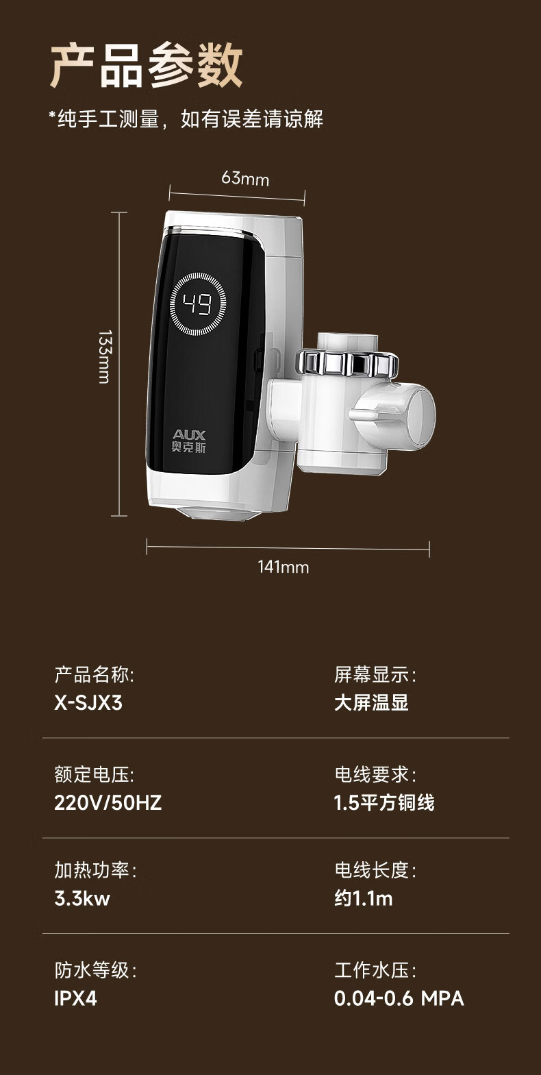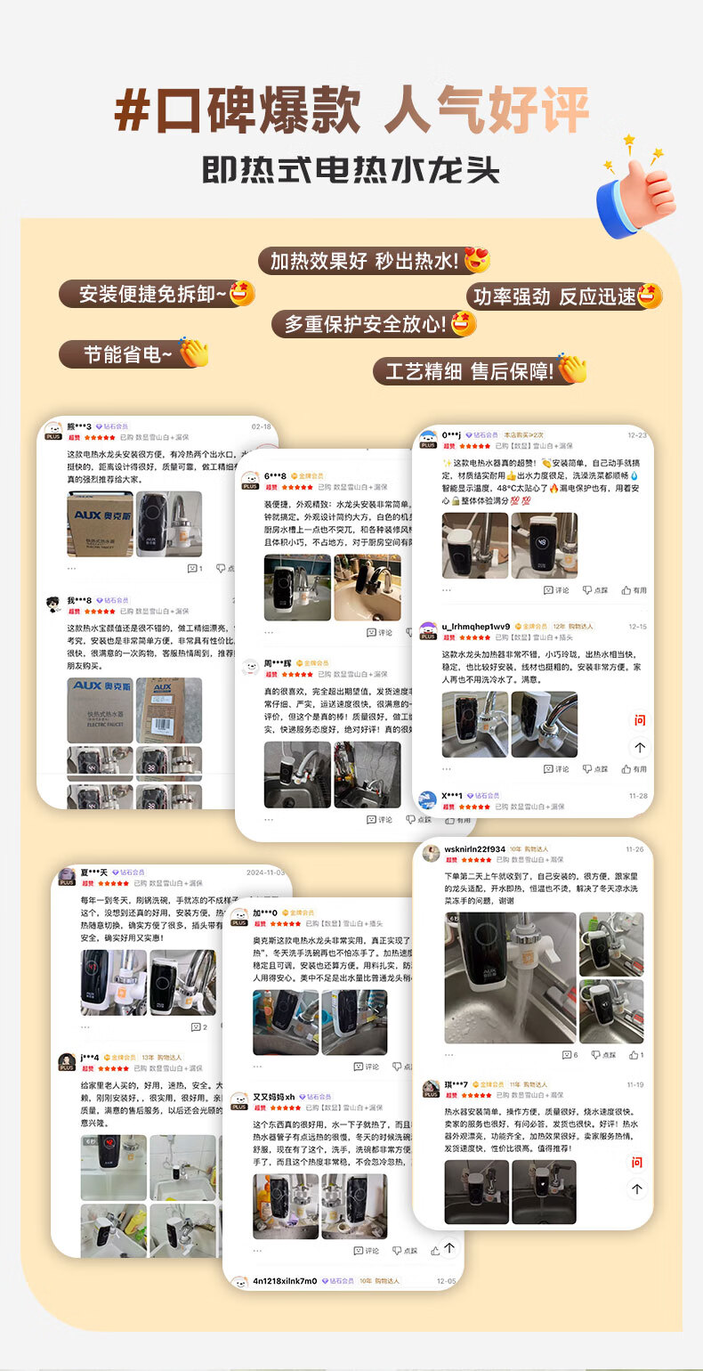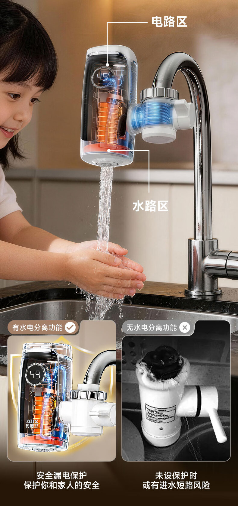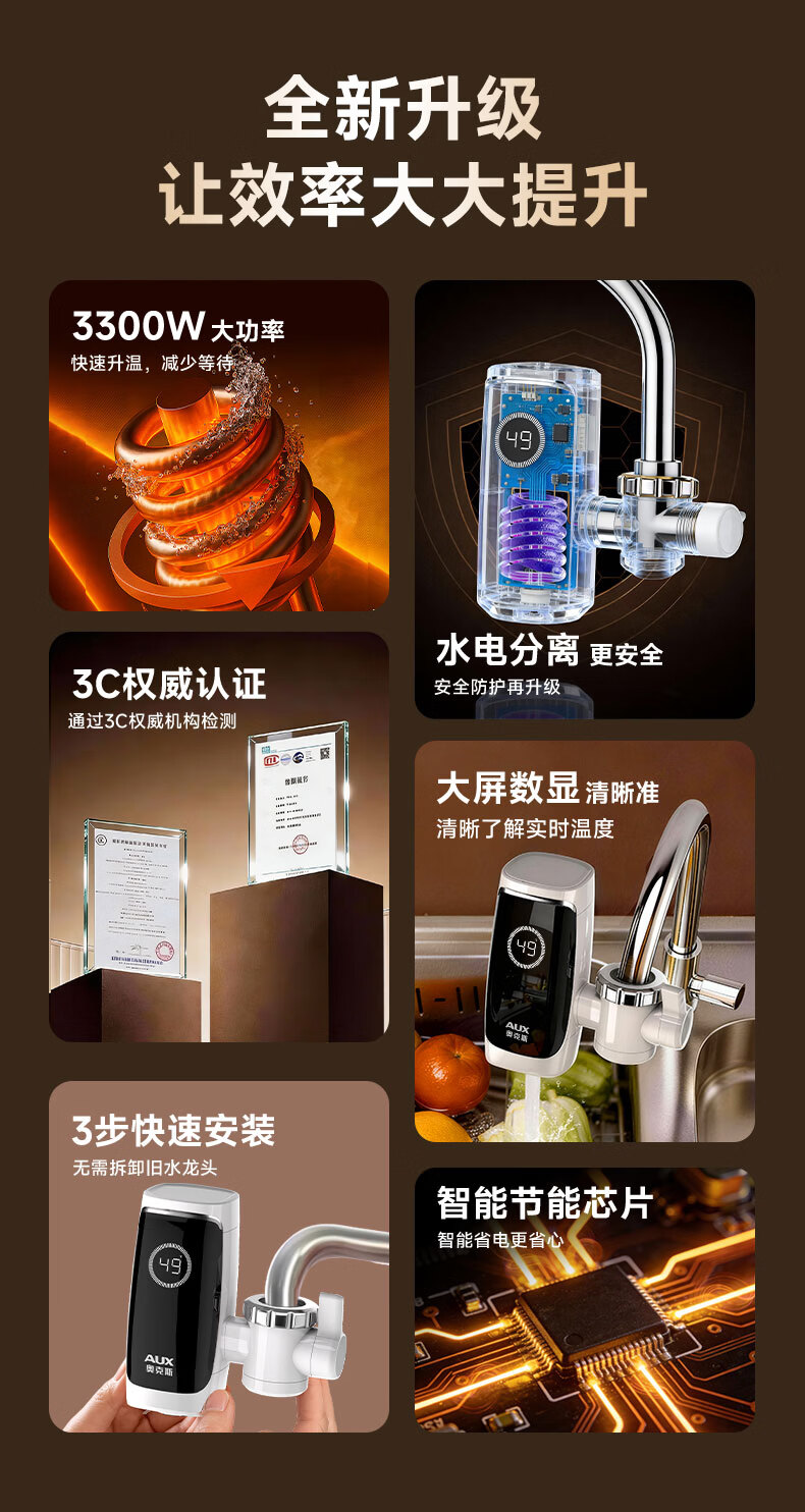 奥克斯电热水龙头免安装快速加热厨房冷热厨房宝即热式电热水器X-SJX3接驳式加漏保