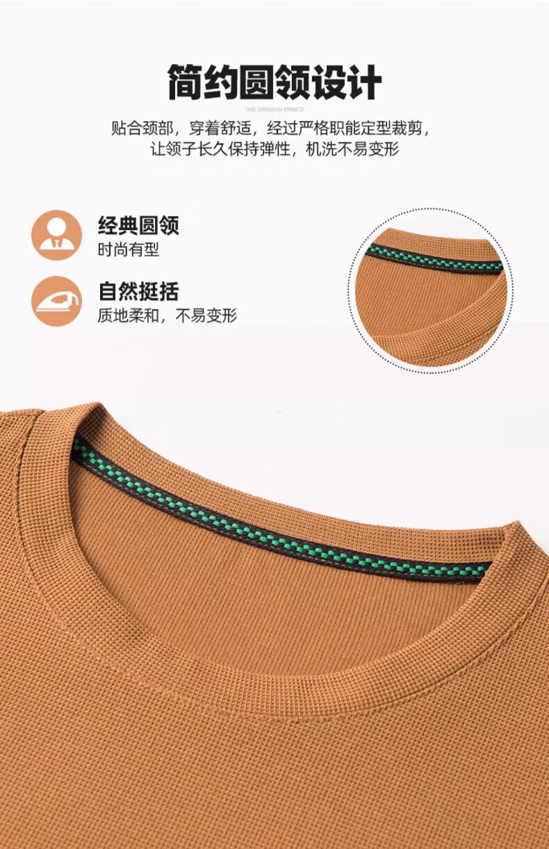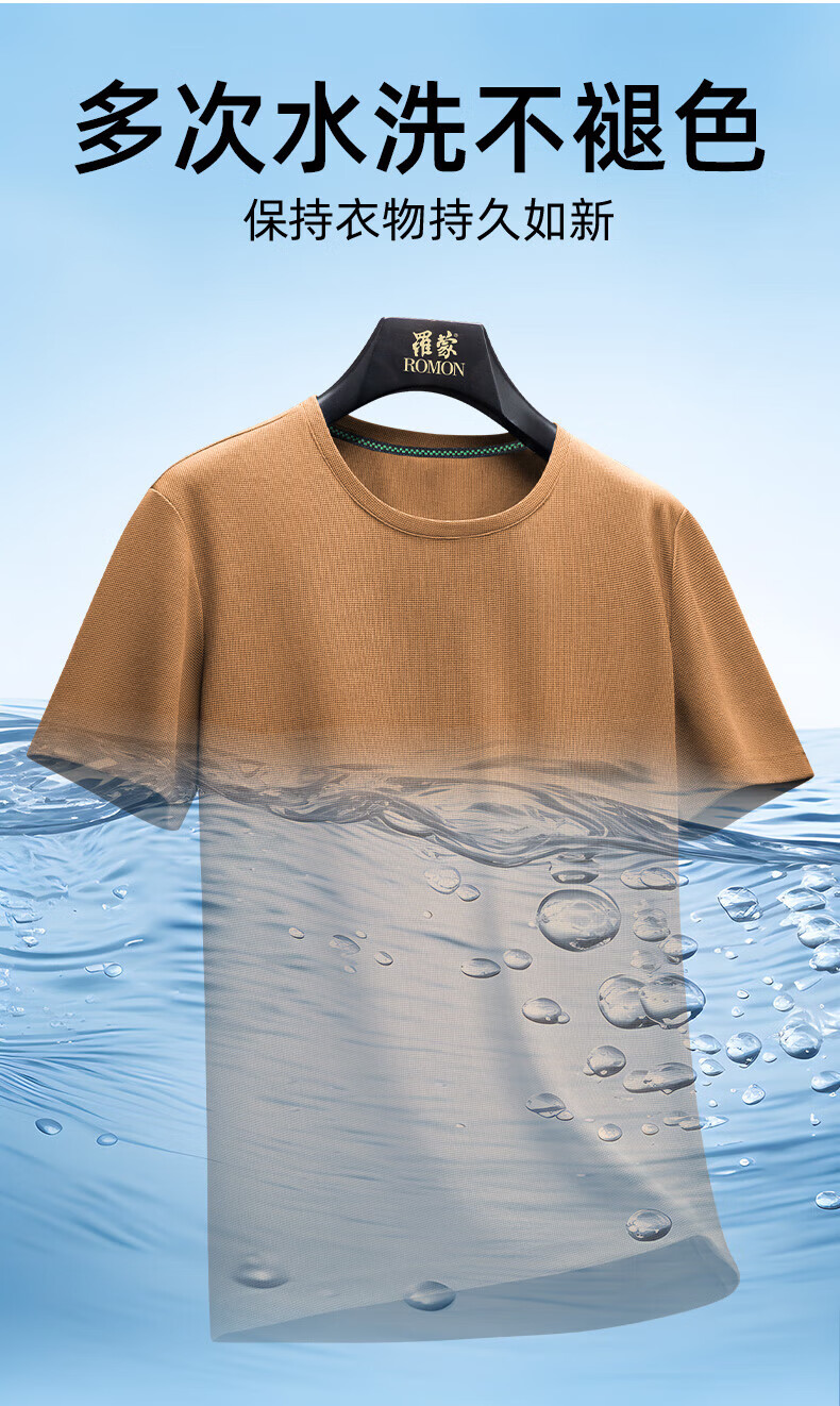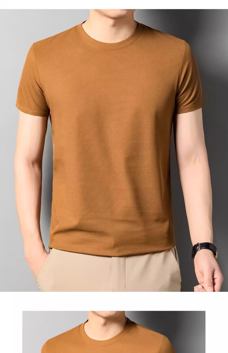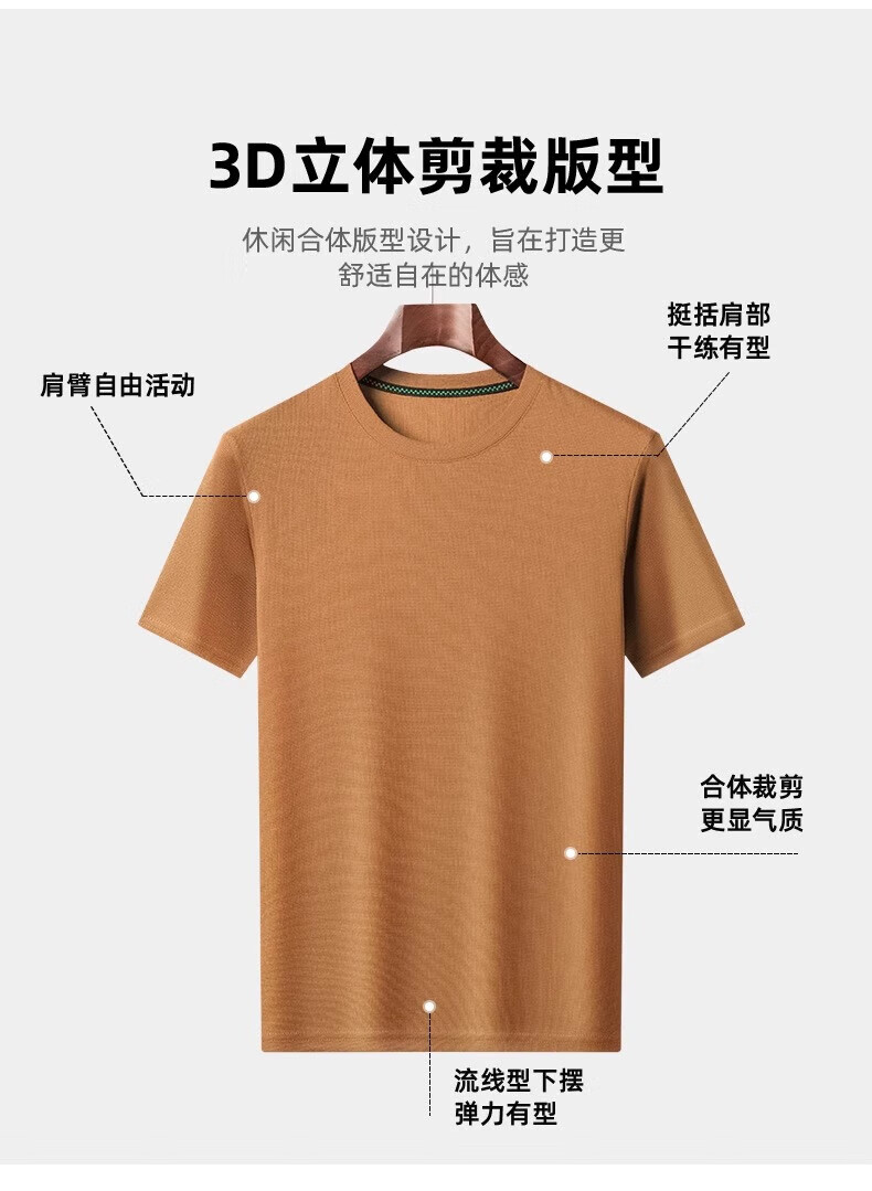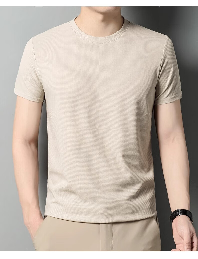 罗蒙华夫格凉感短袖t恤男士圆领新款中青年时尚休闲T恤衫 米驼 3XL 185(建议160-180斤)