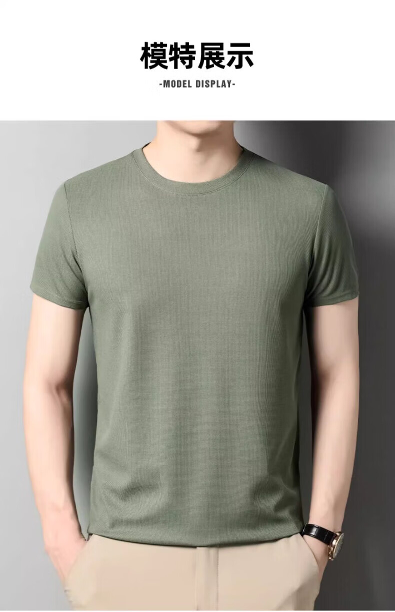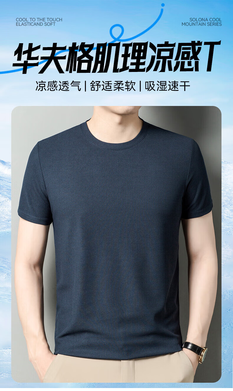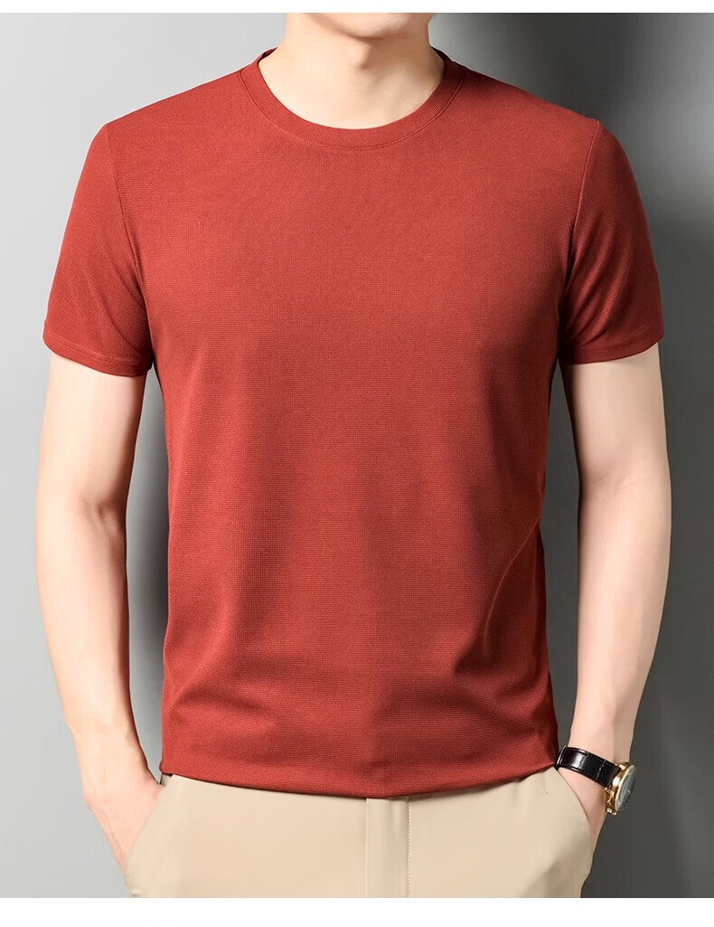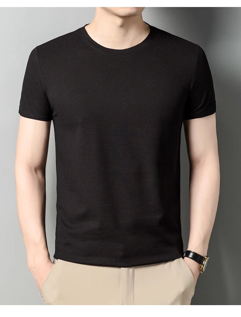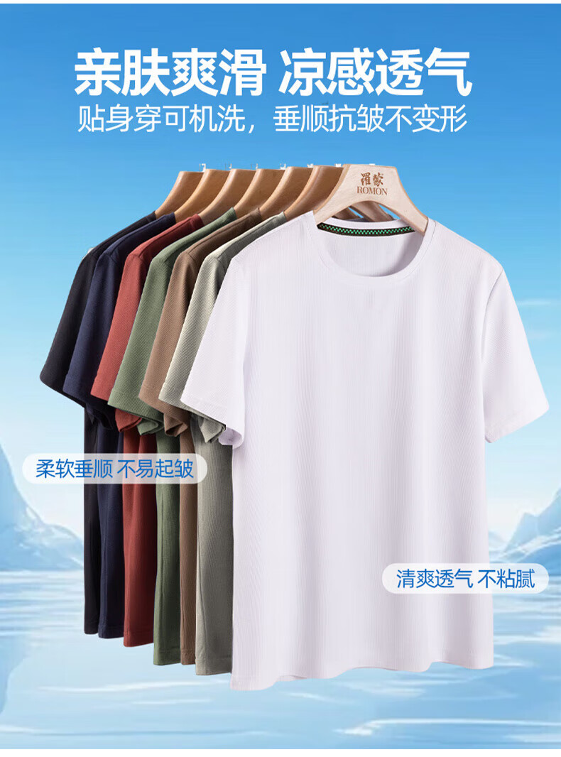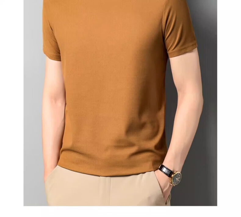 罗蒙华夫格凉感短袖t恤男士圆领新款中青年时尚休闲T恤衫 米驼 3XL 185(建议160-180斤)