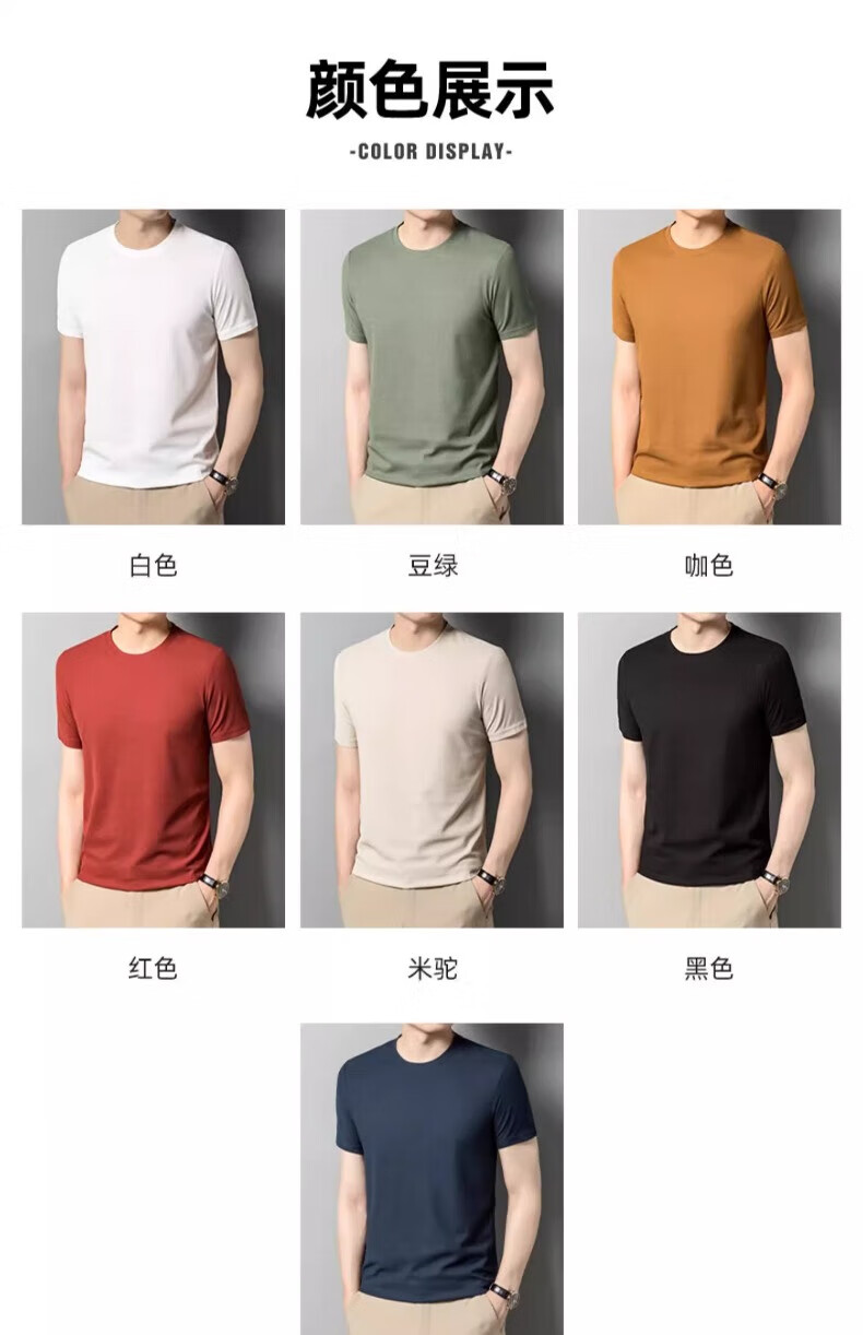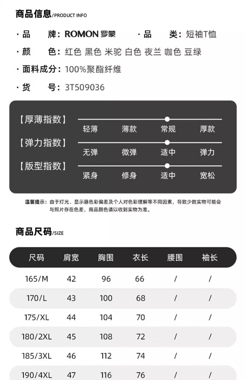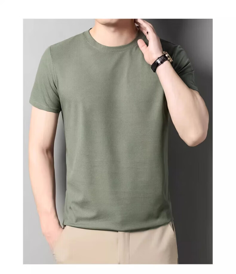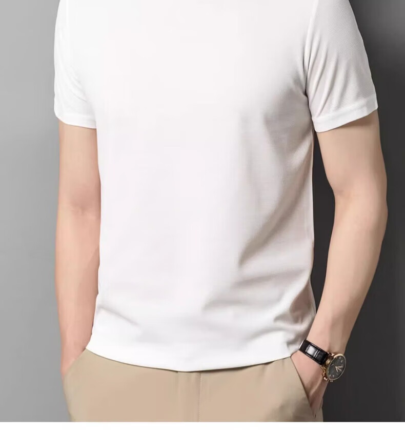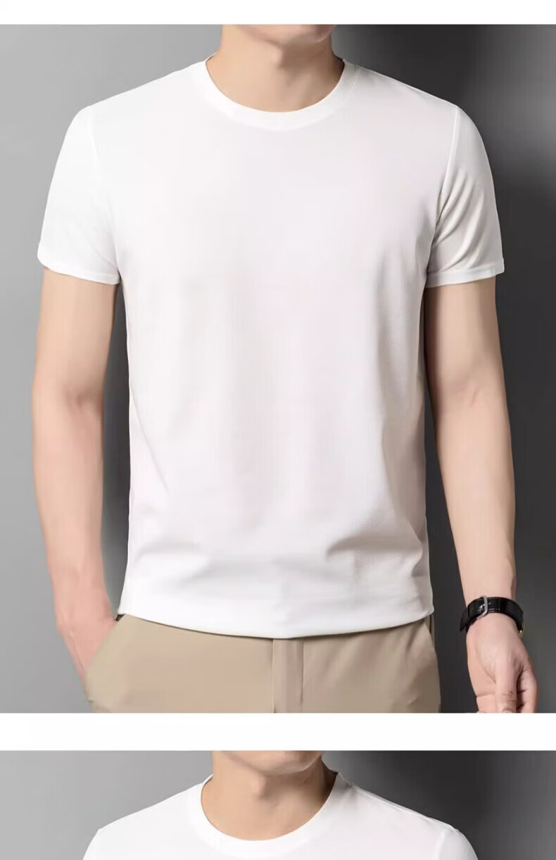 罗蒙华夫格凉感短袖t恤男士圆领新款中青年时尚休闲T恤衫 米驼 3XL 185(建议160-180斤)