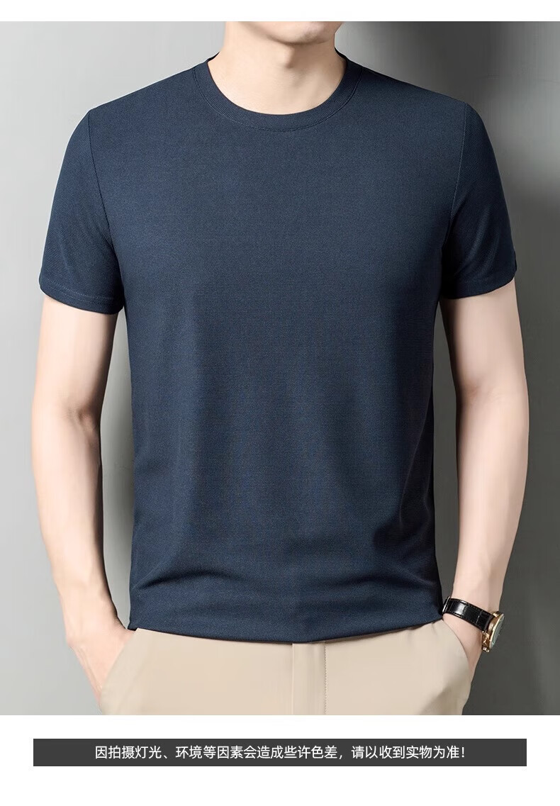 罗蒙(ROMON)冰丝凉感短袖t恤男士新款中青年商务休闲时尚翻领上衣 藏青 L (170) 适合115-130斤