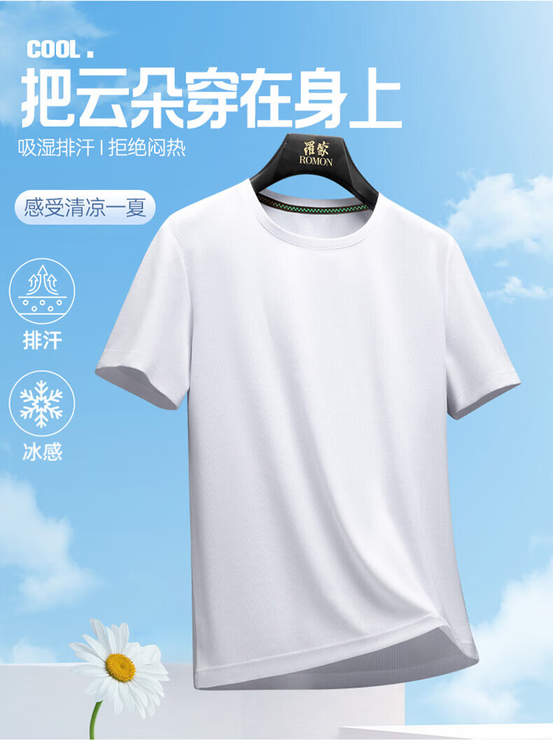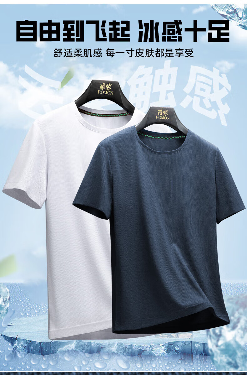 罗蒙(ROMON)冰丝凉感短袖t恤男士2026夏季新款中青年商务休闲时尚翻领上衣 藏青 3XL (185) 适合155-175斤