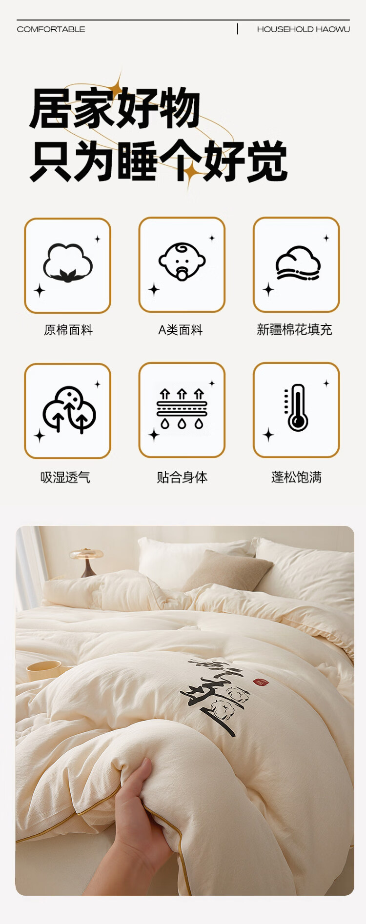 猫人正宗新疆棉花被子被芯加厚保暖棉被冬被宿舍单双人春秋被四季通用 本白【当季采摘新疆棉填充】 冬被:200*230cm约8斤【适合室温0-5℃】