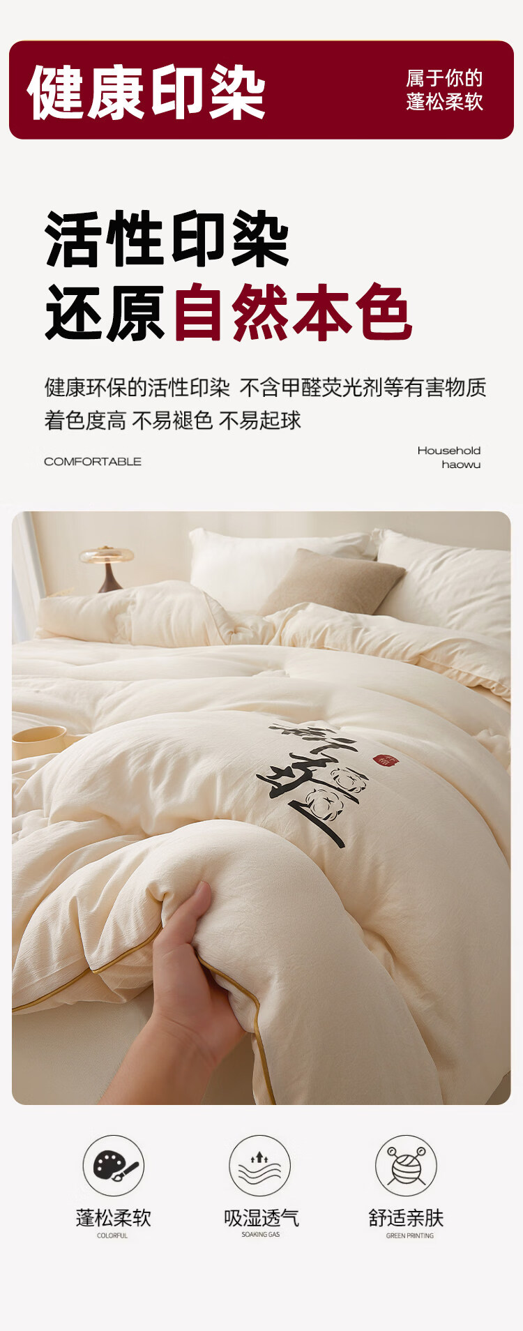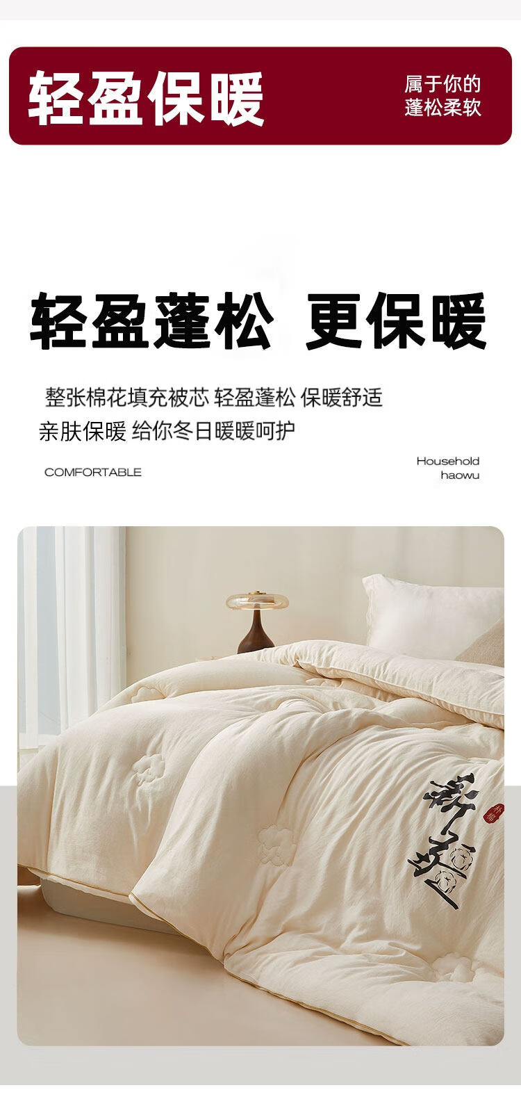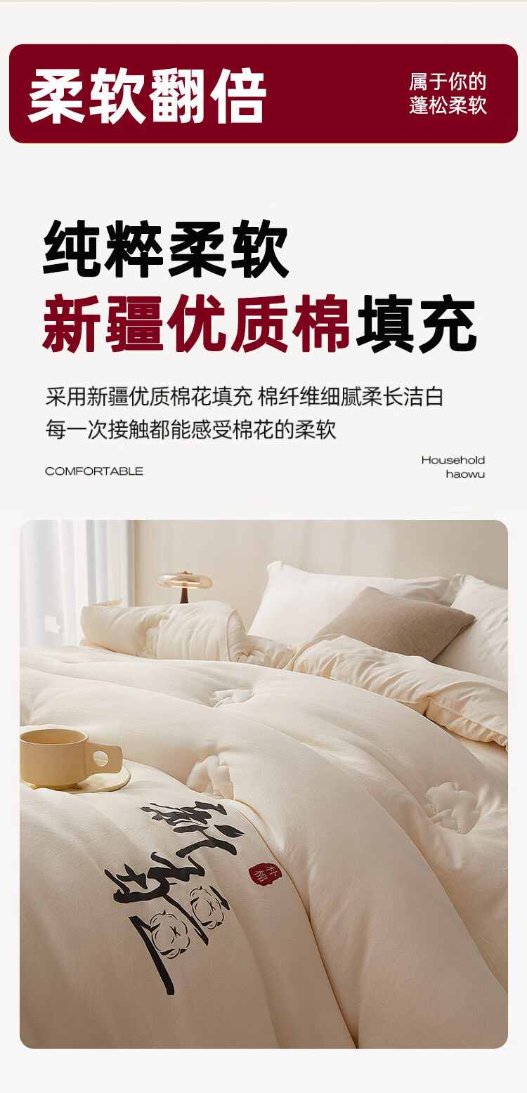ROLAND LIVE全棉提花55%大豆被单双人家用被子春秋被冬季保暖冬被亲肤透气被 LB 全棉提花大豆被-纳福 春秋被150cm*200cm【约3.2斤】