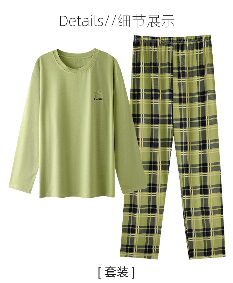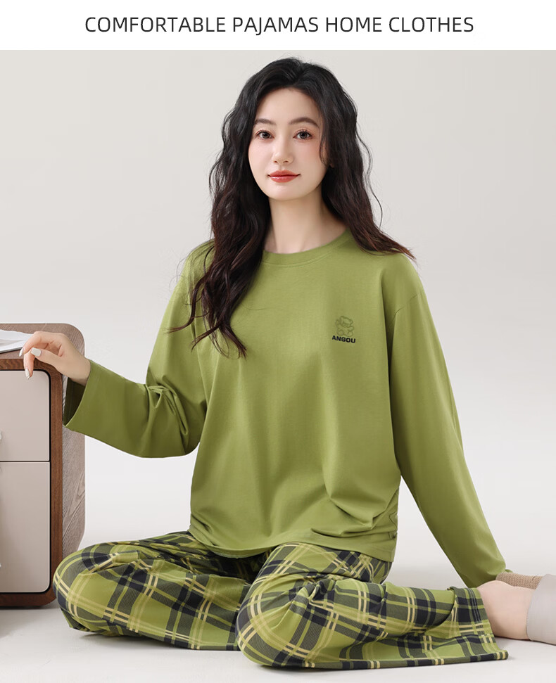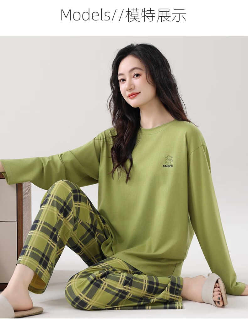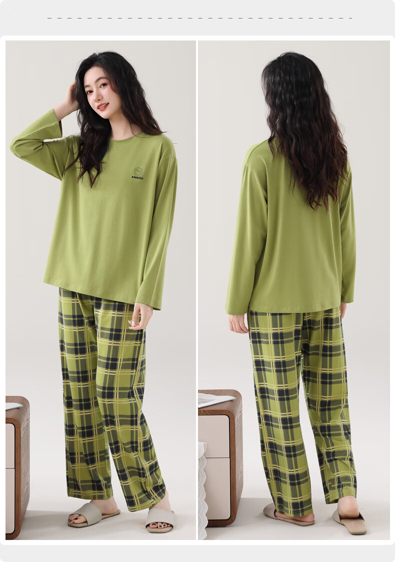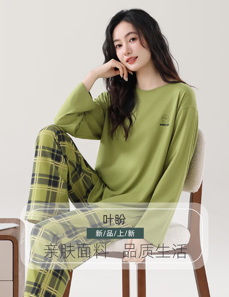 叶盼(yepan)睡衣女春秋季纯棉长袖套头薄款宽松大码休闲女款可外穿家居服套装 86028-抹茶绿 M (160) :建议90-110斤穿着