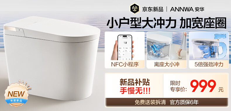 九牧(JOMOO)京东联合智能马桶静音小金刚S7防溅泡沫盾抗菌ZS770P-400免费送装