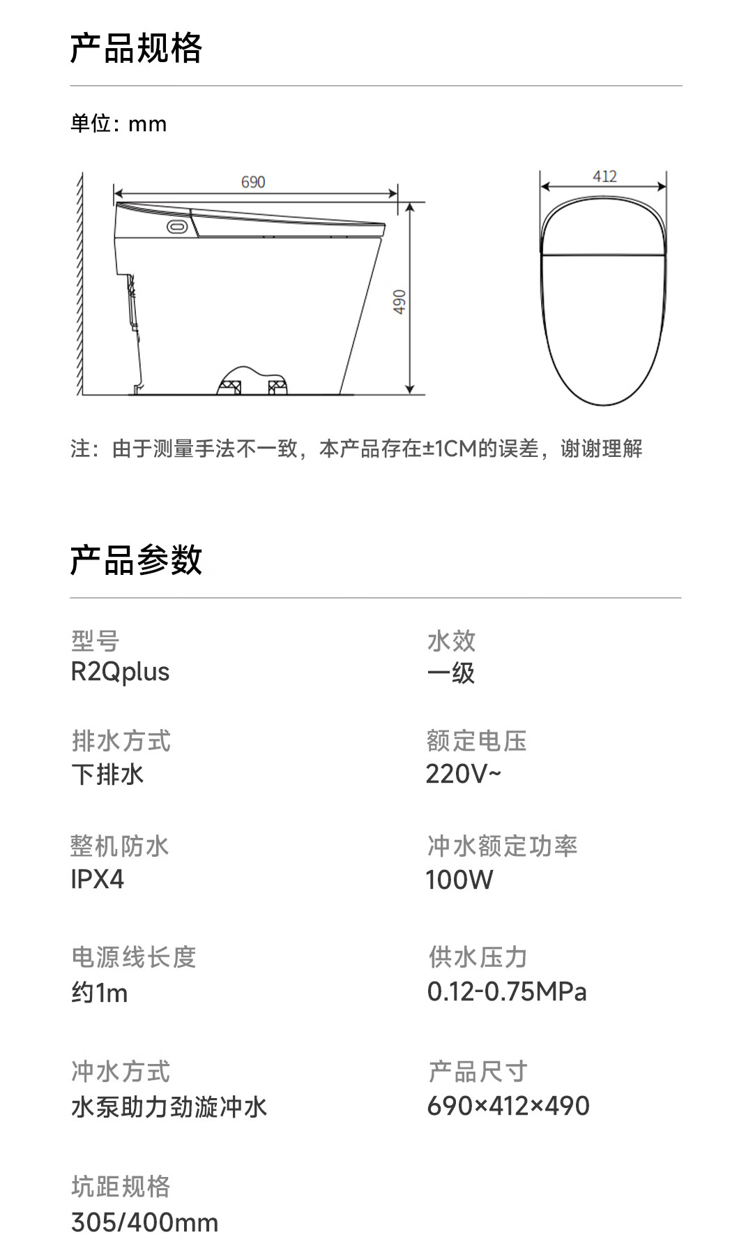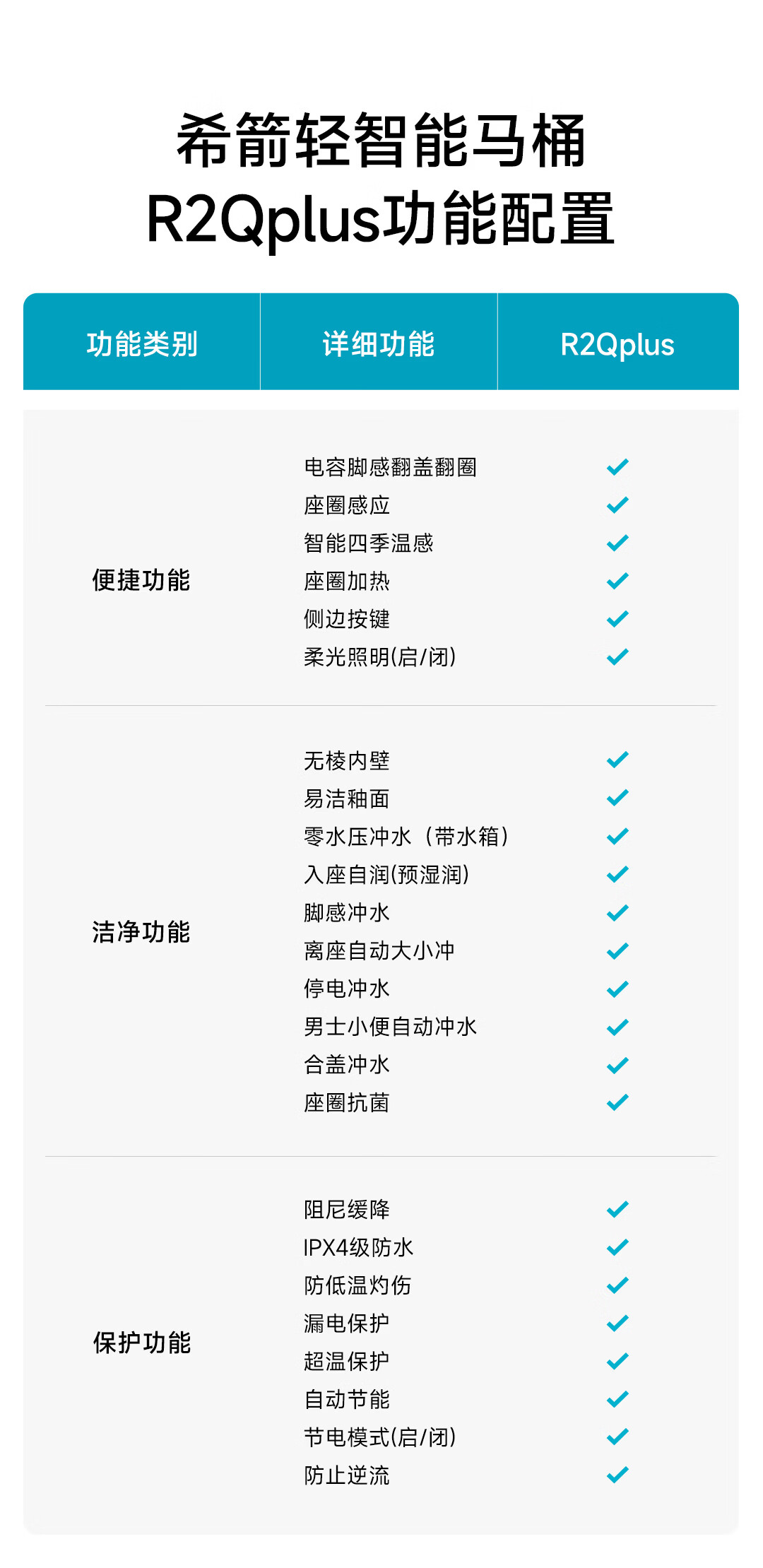 HOROW希箭R2Qplus零水压翻圈翻盖轻智能马桶 R2Qplus 305/300mm