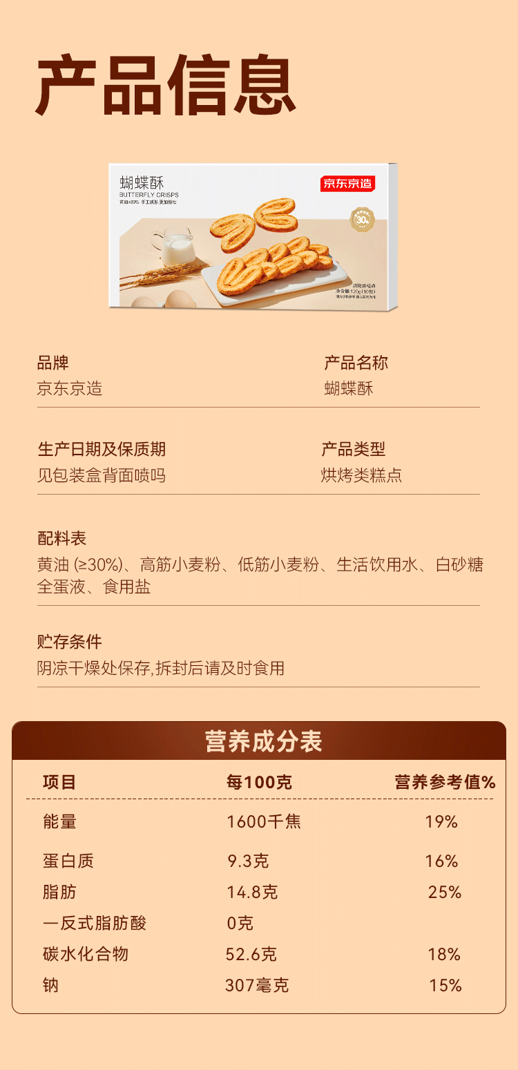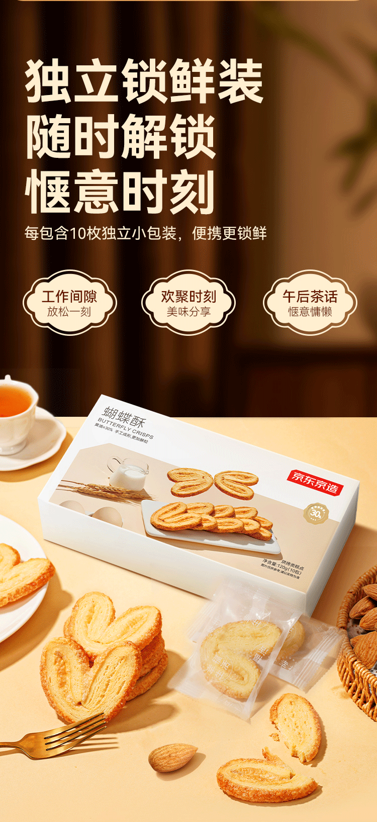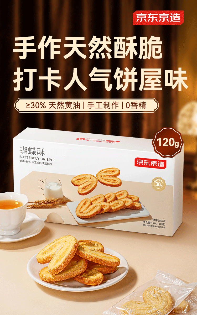 京东京造蝴蝶酥上海特产中式糕点心休闲零食饼干小吃120g糕点年货礼盒特产
