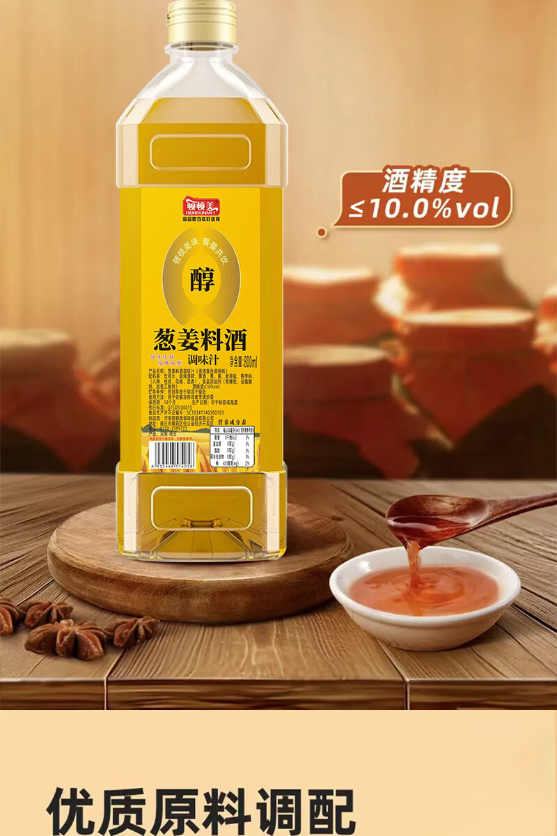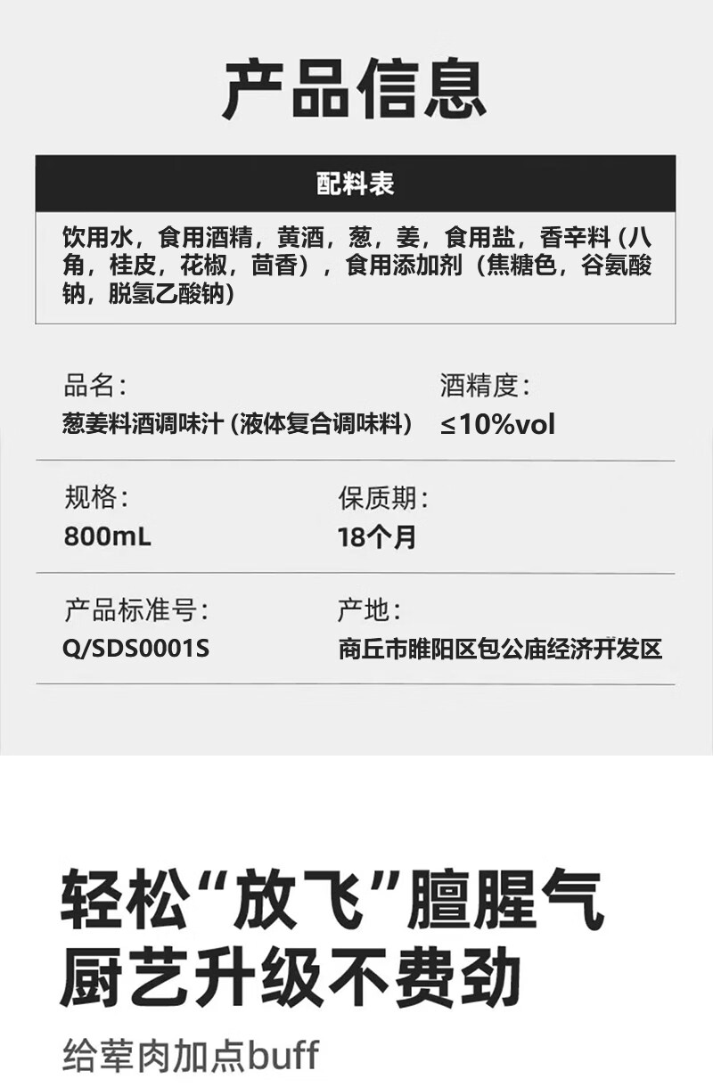 顿顿美葱姜料酒800ml大瓶装家用去腥解腻提鲜增香炒菜调味料 葱姜去腥 1瓶