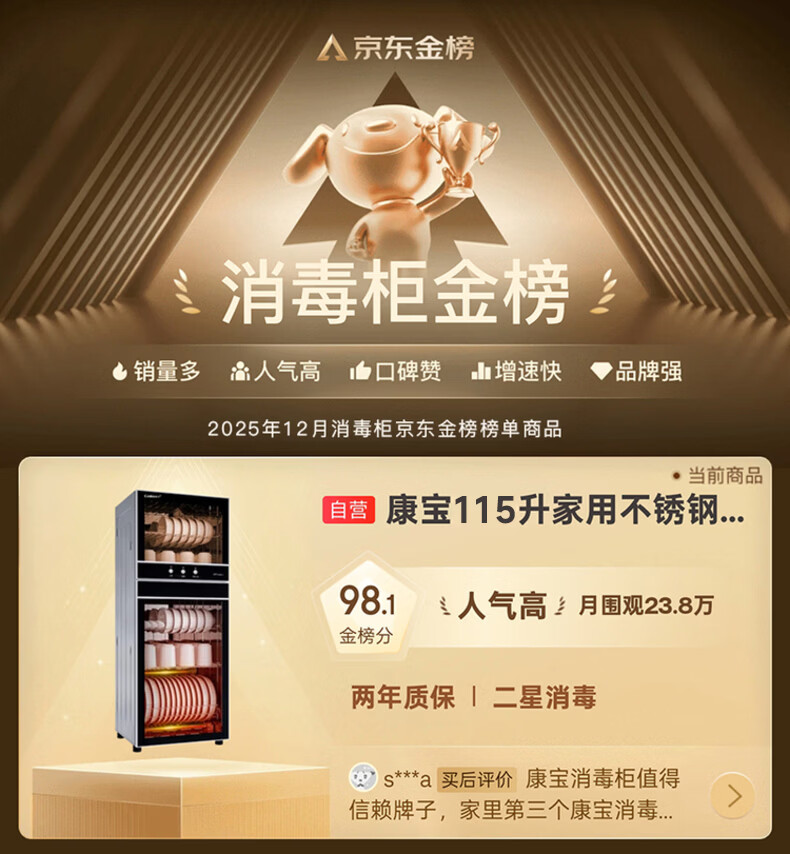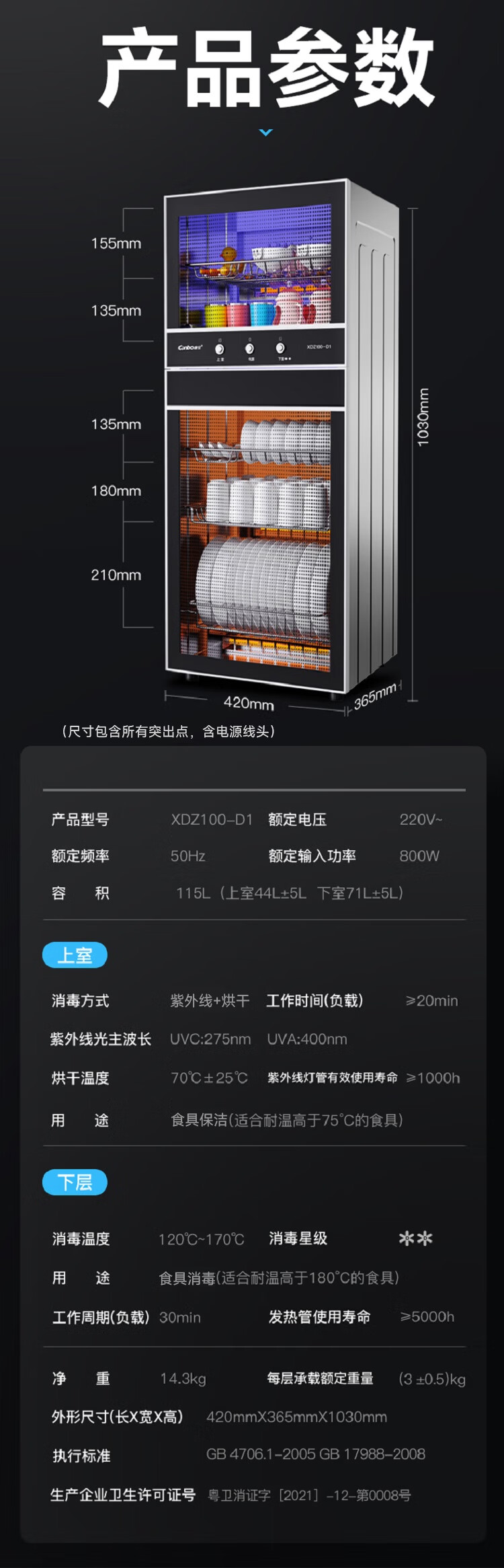 康宝(Canbo)消毒柜家用立式大容量高温烘干碗筷不锈钢餐具小型台式母婴儿奶瓶双门115L碗柜政府补贴XDZ100-D1