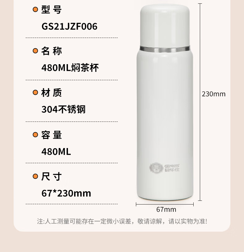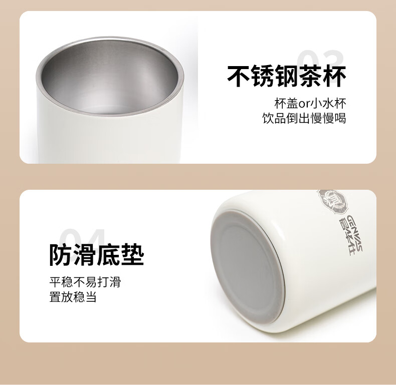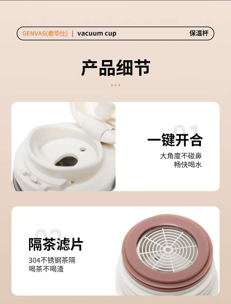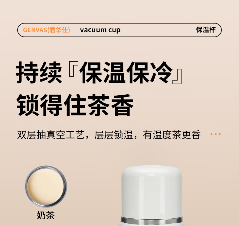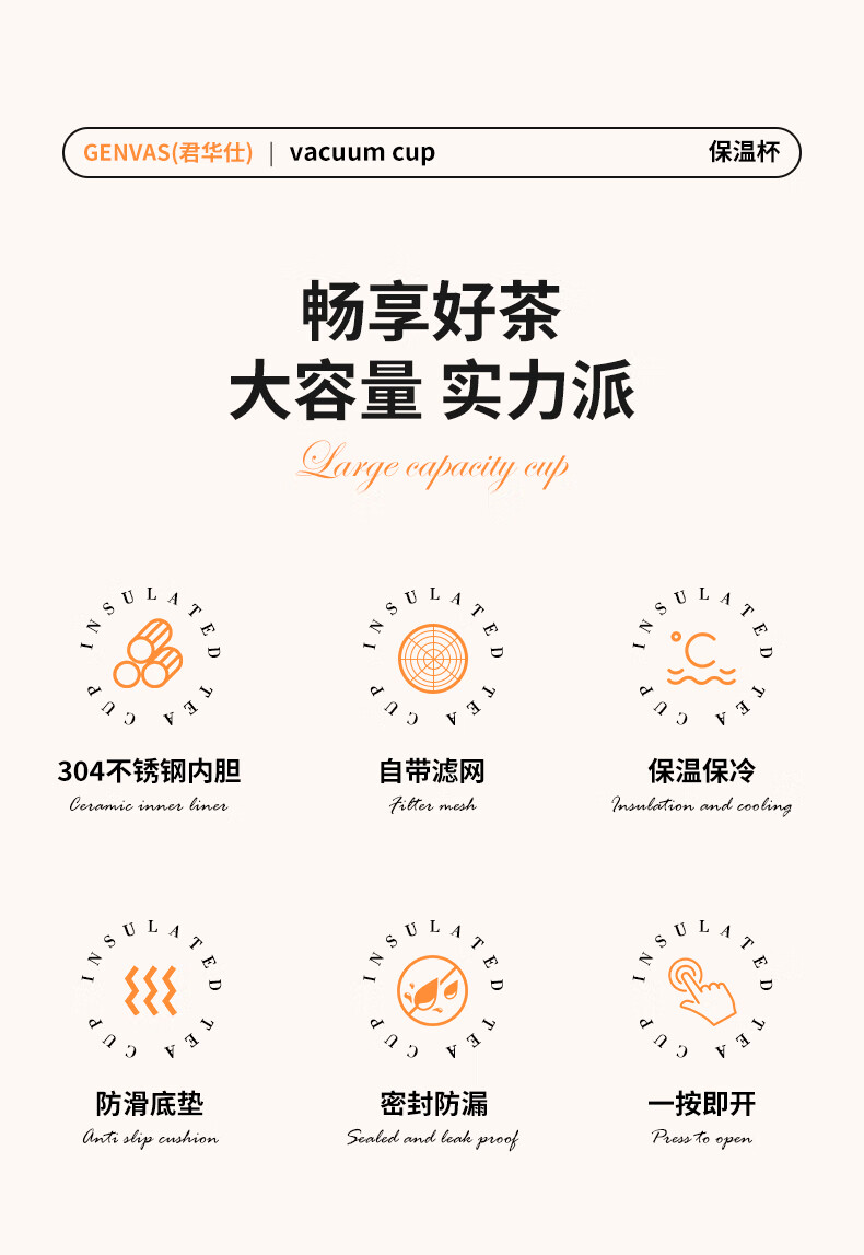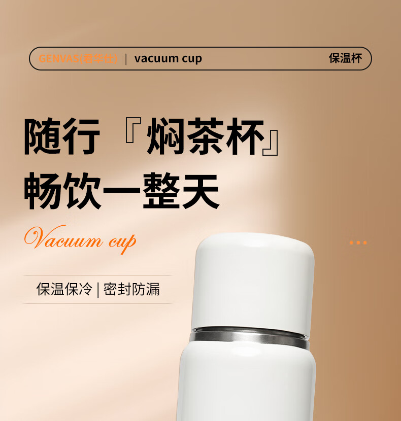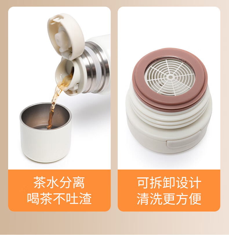 君华仕野餐户外焖茶保温杯带茶隔车载随行泡茶杯子GS21JZF006 白色