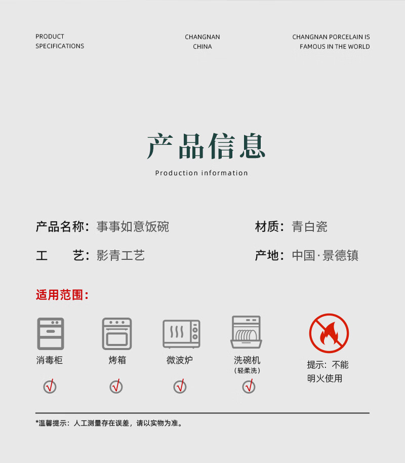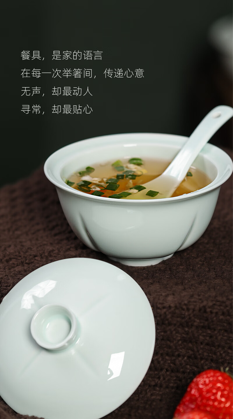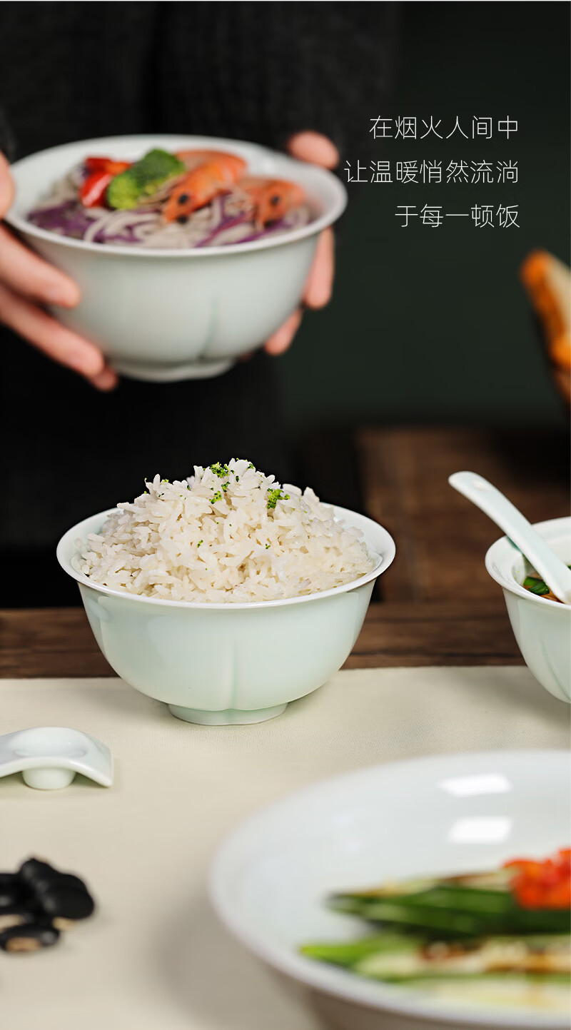 昌南景德镇陶瓷面碗家用创意中式青瓷碗乔迁礼物套装高级感6英寸饭碗 事事如意6寸面碗(买五送一)