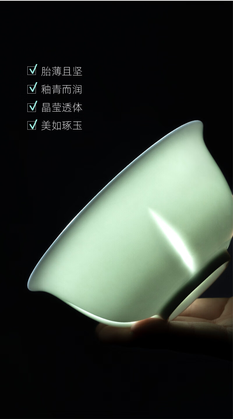 青澹墨雅青澹汝窑茶具套装礼品冰裂釉汝瓷整套茶杯茶壶礼盒装陶瓷盖碗茶具 青澹蝶舞芳菲7件套