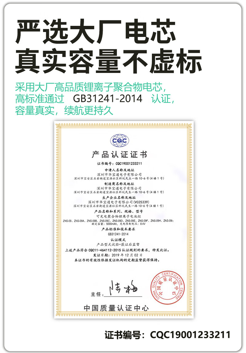 湖山和鸣华宝通指纹锁电池智能门锁锂离子电池智能锁电子锁密码锁专用电池 ZNS-09H(5000mAh)