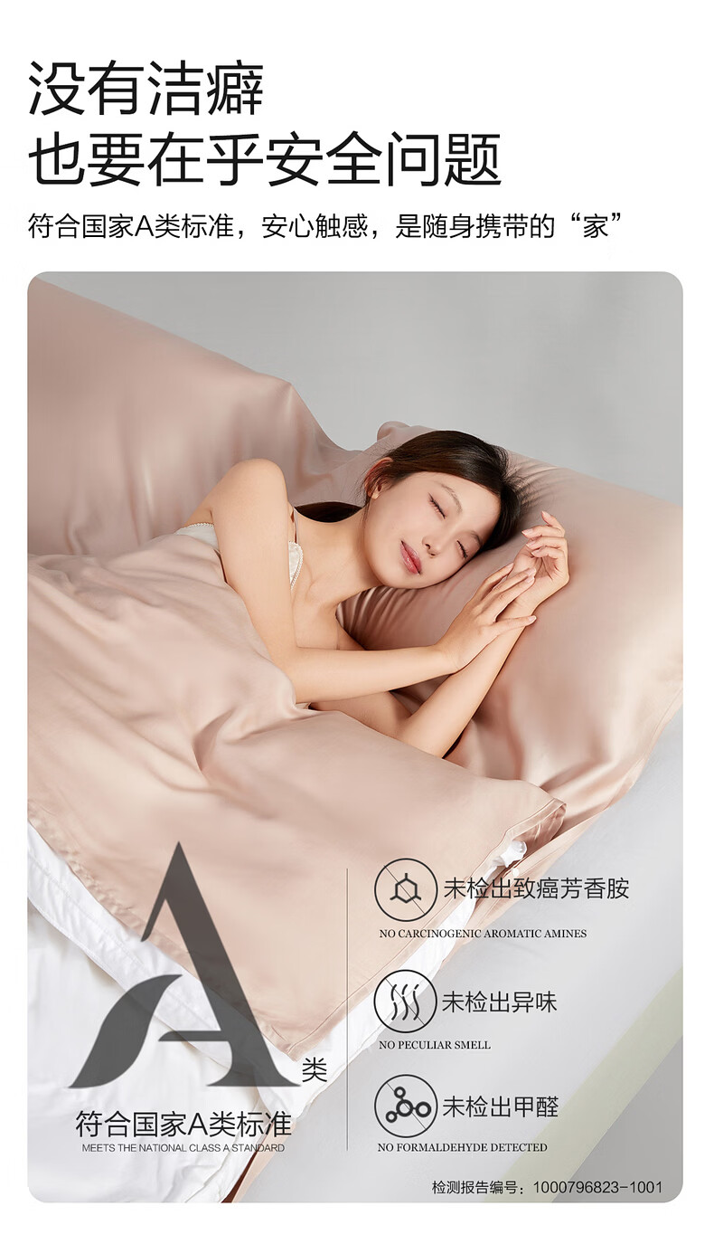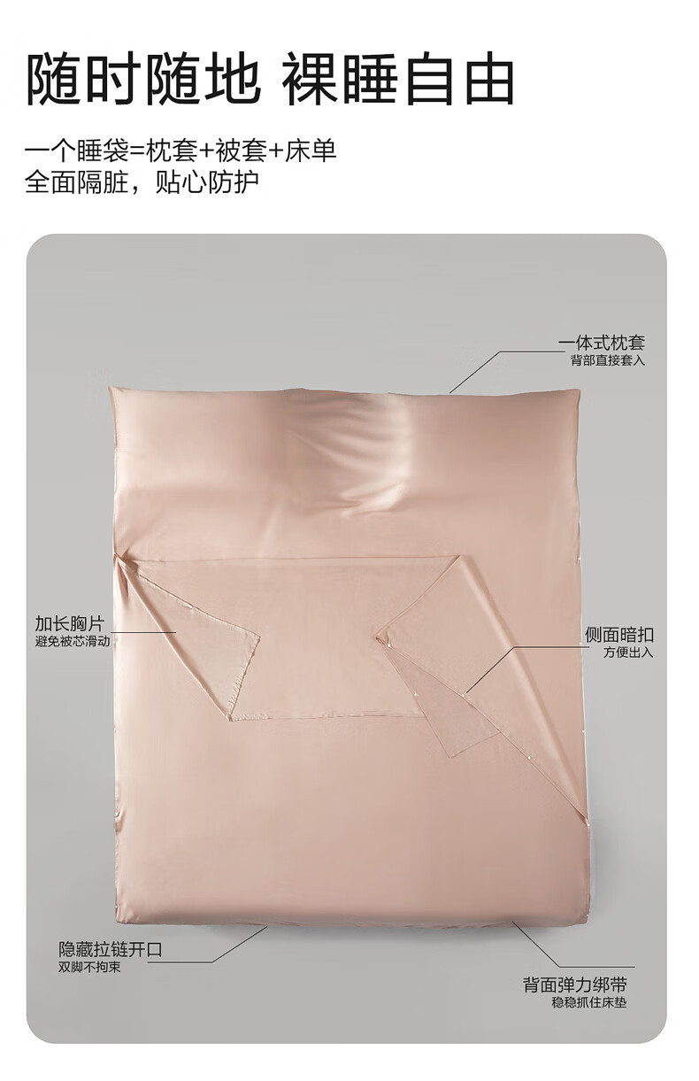 水星家纺云栖丝语天丝隔脏睡袋旅行套组 云栖丝语天丝隔脏睡袋旅行套组(香槟金) 160cm*220cm